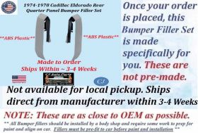 This is a brand new reproduction 2 piece rear quarter panel filler set MADE IN THE USA from high quality ABS Plastic material. ABS is heat resistant and easy to work with. The fillers come primed and ready to be painted, should be scuffed before painting.