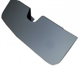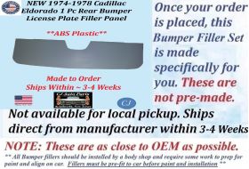 This is a brand new reproduction 1 piece rear bumper license plate filler MADE IN THE USA from high quality ABS Plastic material. ABS is heat resistant and easy to work with. The fillers come primed and ready to be painted, should be scuffed before painting.