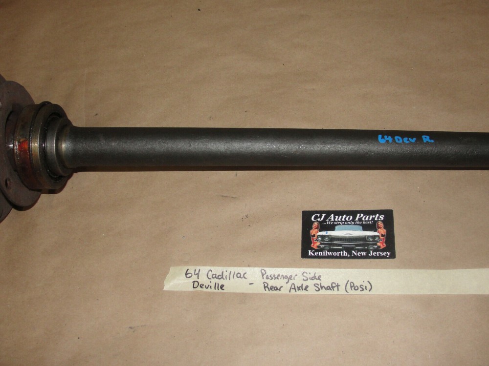 This OEM passenger side rear axle shaft is in very good condition. This was removed from a 64 Deville with a posi rear but according to the Cadillac Master Parts Book it will fit all 1957-1964 Cadillac models, except Commercial Chassis, with or without posi. The splines are in good condition, and there is no heavy groove where the bearing rides. The mounting plate is straight, not bent. Studs are all in good condition. Please look at all the pictures as they are part of the description. Fitment is verified by Cadillac Master Parts Book (5.420). This was removed from a 1964 Cadillac Deville with a posi rear, but may fit other vehicles listed in compatibility chart; please do your own research as we do not offer refunds if it does not fit your vehicle.