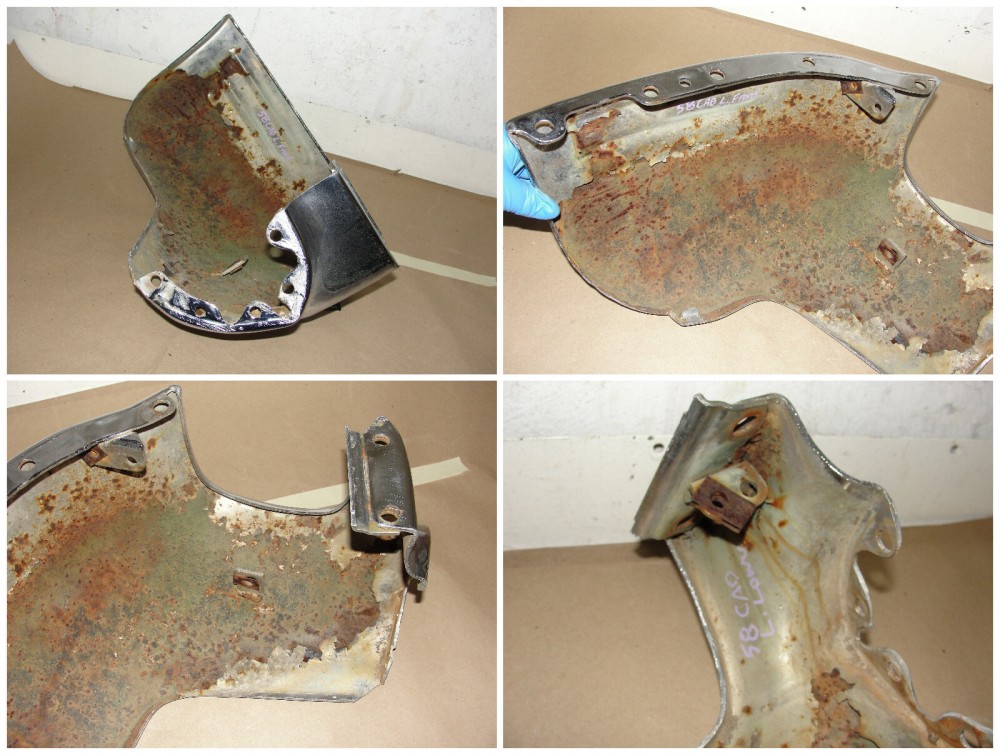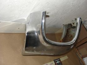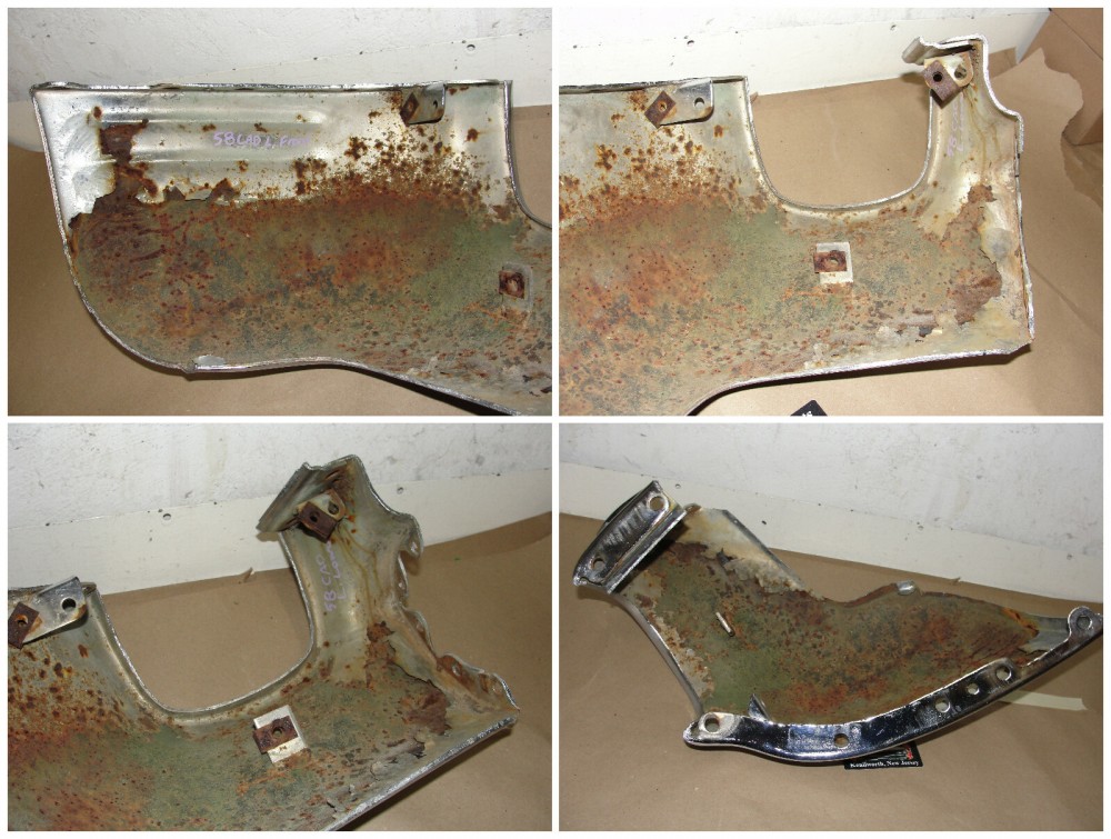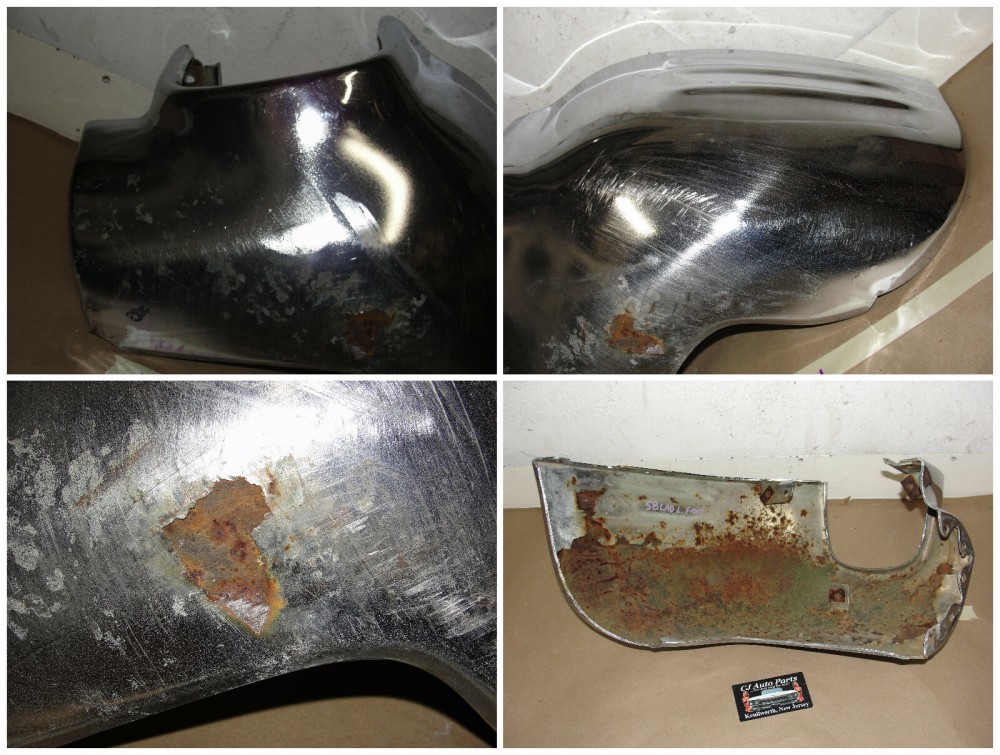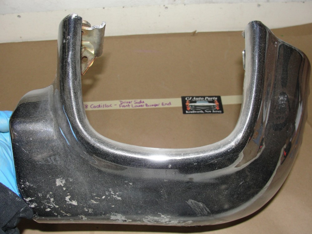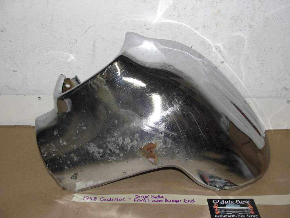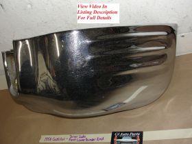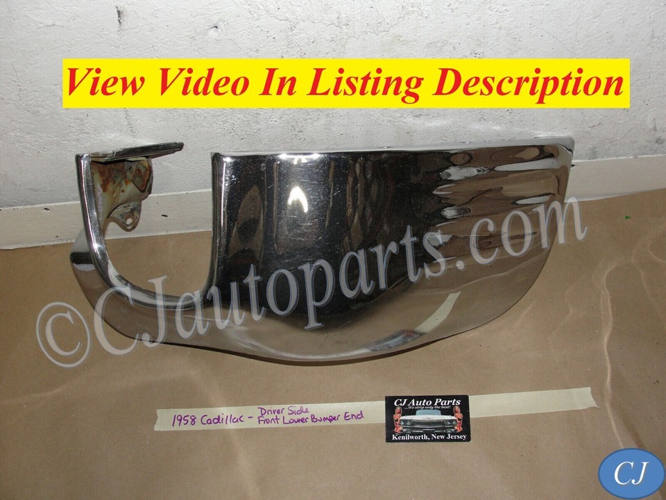 This OEM driver side front bumper lower bumper end is in good driver quality condition. The chrome on the upper portion of the bumper end has a nice shine with average light scratches/wear. The underneath/bottom of the bumper end has scrapes and chrome that has peeled with some heavier pitting where the chrome is missing, this is common for these as they get scraped from years of use. No major dings/dents. Would be a good candidate for rechrome or would do well on a daily driver. Please view the video (https://youtu.be/H0E75frcQNI ) and see all the pictures as they are a part of the description. This was removed from a 1958 Cadillac Deville, but may fit other vehicles listed in compatibility chart; fitment is verified by Cadillac Master Parts List 11.0781, please do your own research as we do not offer refunds if it does not fit your vehicle.