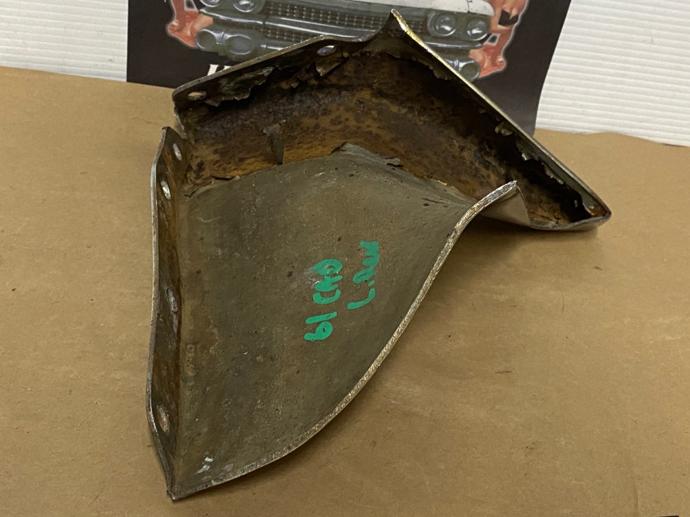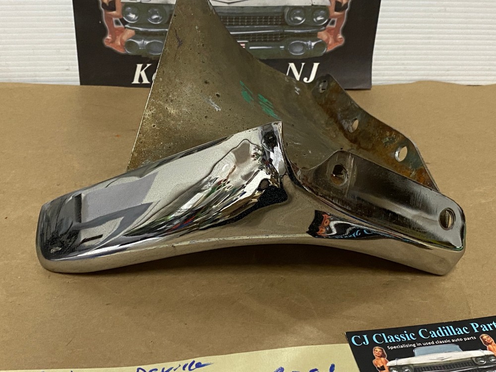 This OEM driver side rear lower bumper end is in good driver quality condition. Chrome has a nice reflective shine with some scratches and other blemishes typical for being over 60 years old. Has one small dent. Please look at all pictures and view the video (https://youtu.be/WDWat_JpJBk) & compare to yours, as the pictures are part of the description. This was removed from a 1961 Cadillac Deville, but may fit other vehicles listed in compatibility chart; fitment verified by Cadillac Master Parts List 11.0782; please do your own research as we do not offer refunds if it does not fit your vehicle.