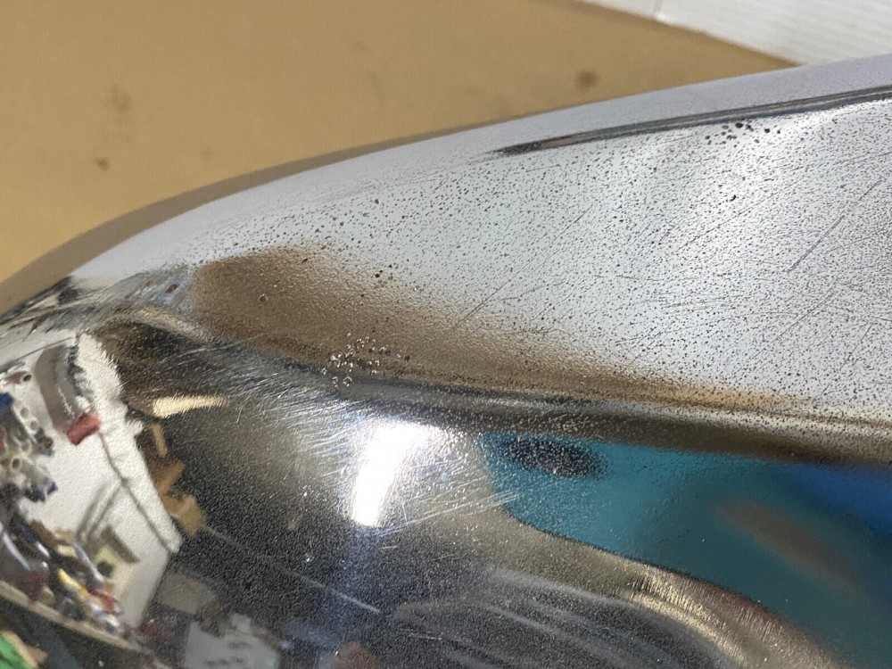 This OEM driver side front lower bumper end is in good condition. Chrome has a nice reflective shine. Has average light crazing in chrome, typical of a used part its age. Does not have any heavy pitting, but does have some light pitting on the inner corner and very bottom. Bumper end is solid, no rot. No major dings/dents. Has average surface rust on the inside. Has average scratches. Please view the video (https://youtu.be/Mpbo1vMM7i4 ) and look at all pictures for details as they are part of the description. This was removed from a 1965 Cadillac Deville, but may fit other vehicles listed in compatibility chart; fitment is verified by Cadillac Master Parts List 7.831; please do your own research as we do not offer refunds if it does not fit your vehicle.