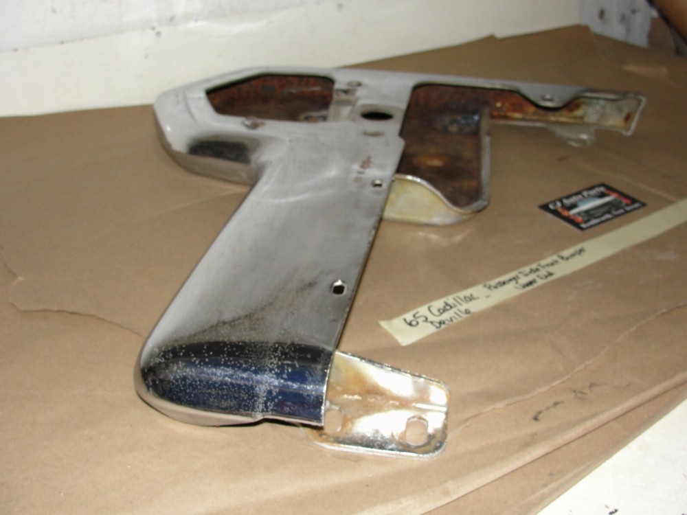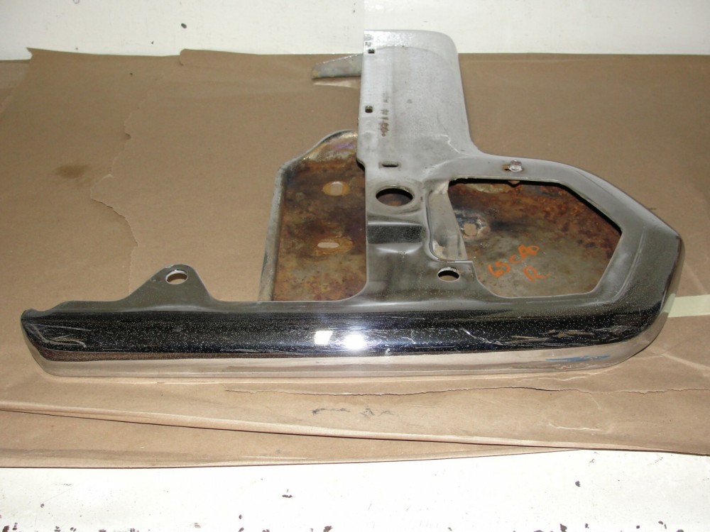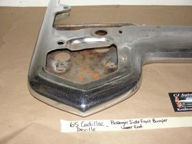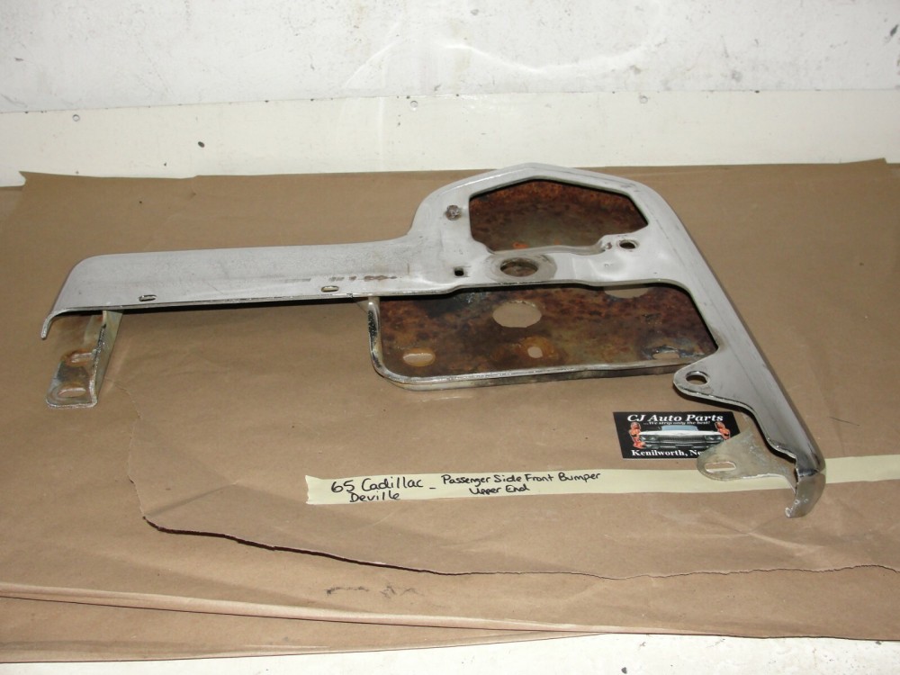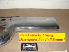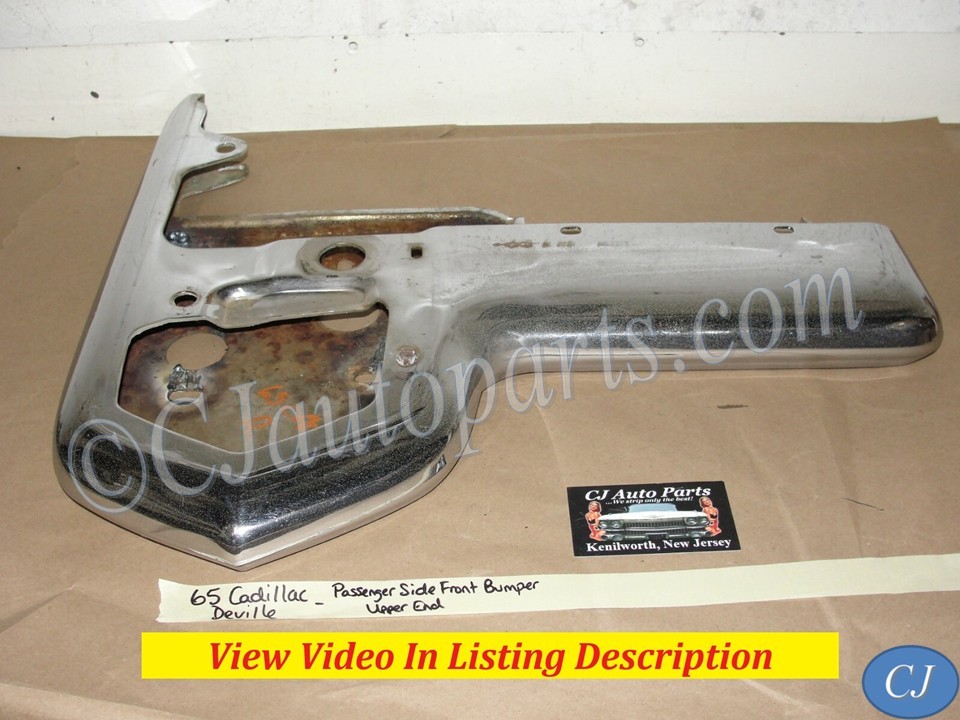 This OEM passenger side front bumper upper bumper end is in good condition. Chrome has a decent shine, has average scratches/spidering/pitting in chrome. The worst of the pitting is in the corner, which is common for these. No major dings/dents. There is a small section on the bottom half that the chrome is cracked/peeled and a small amount of paint where it rubbed something. Please view the video (https://youtu.be/zI3gwhZO_qE) and look at all the pictures as they are a part of the description. This was removed from a 1965 Cadillac Deville, but may fit other vehicles listed in compatibility chart; fitment is verified by Cadillac Master Parts List 7.831, please do your own research as we do not offer refunds if it does not fit your vehicle.