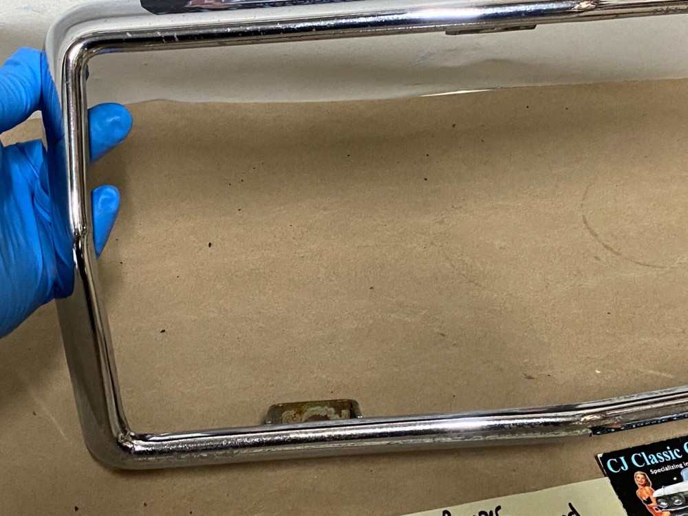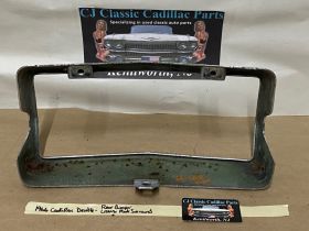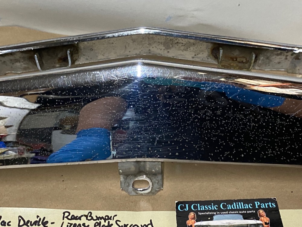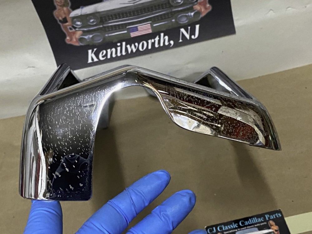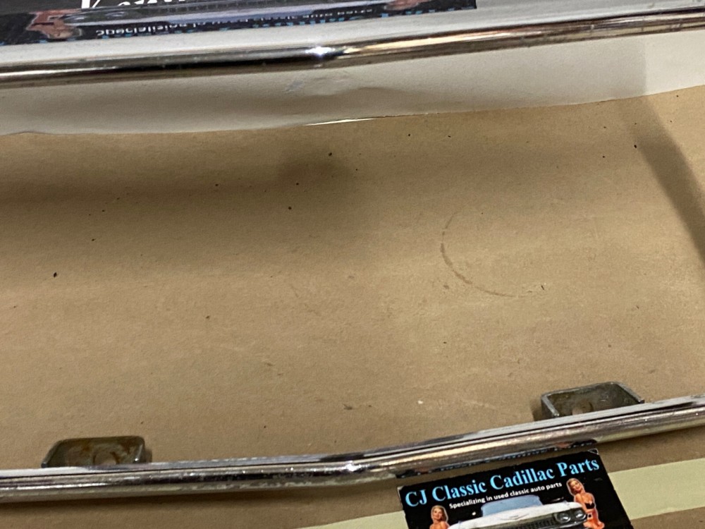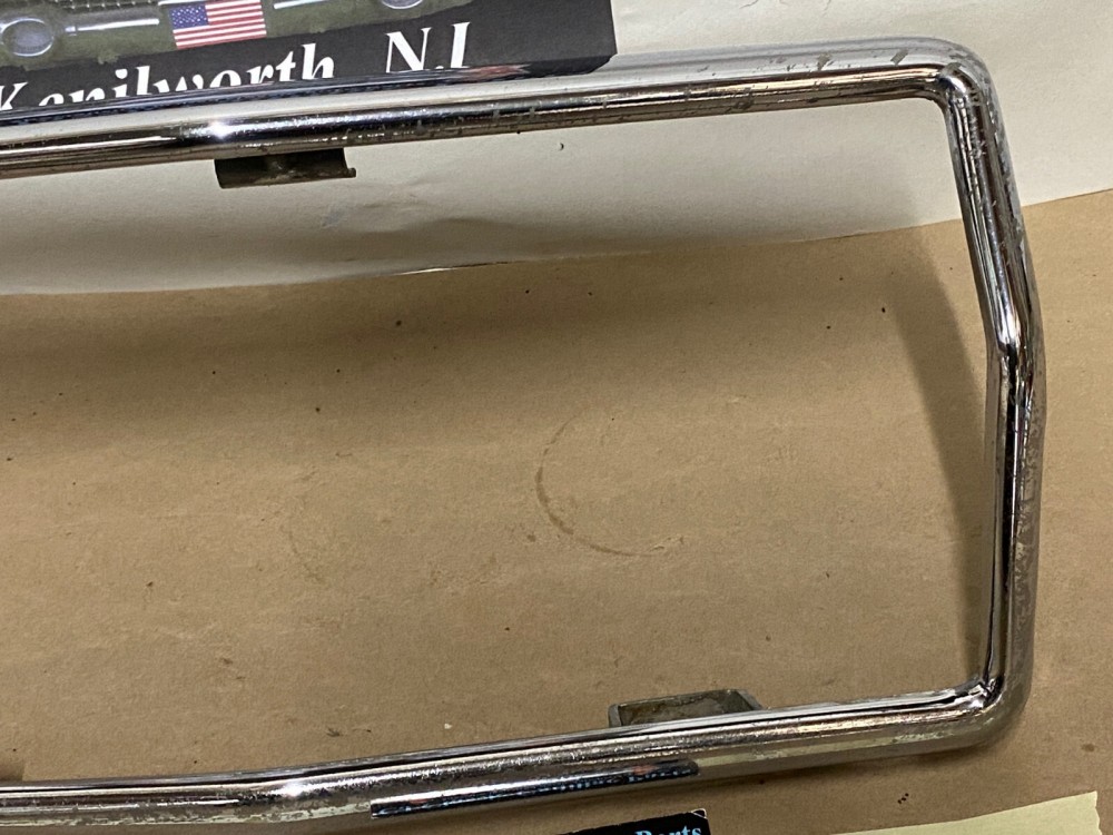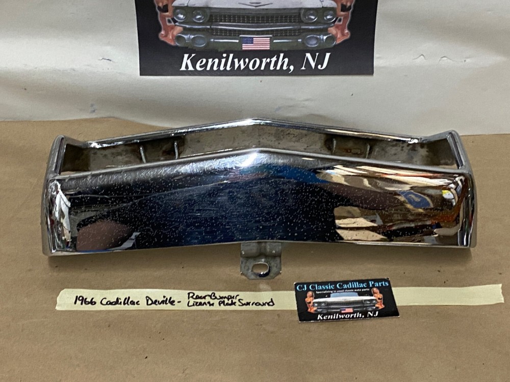 This OEM rear bumper license plate guard is in driver quality condition. No major dings/dents. Chrome has some crazing and some spots where the chrome is worn off. No heavy pitting except one spot on the side, not readily seen. No cracks. Excellent candidate for rechroming. Please view the video of it for close up details (https://youtu.be/DVFsSwKNdD4) and look at all pictures as they are a part of the description. This was removed from a 1966 Cadillac Deville, but may fit other vehicles listed in compatibility chart; fitment is verified by Cadillac Master Parts 7.828, please do your own research as we do not offer refunds if it does not fit your vehicle.
