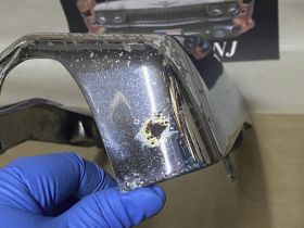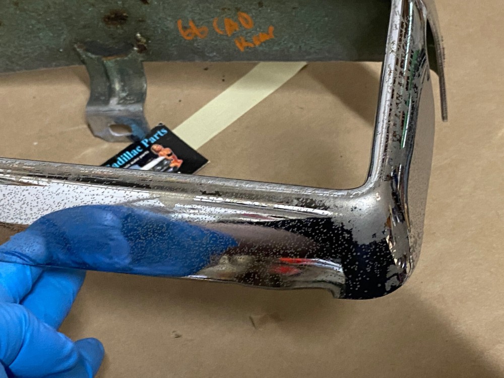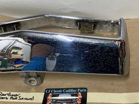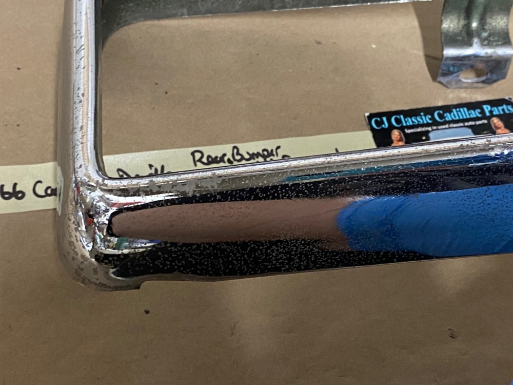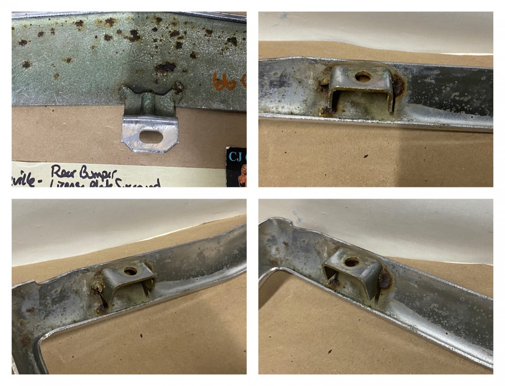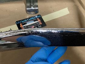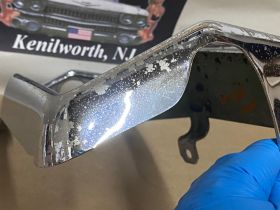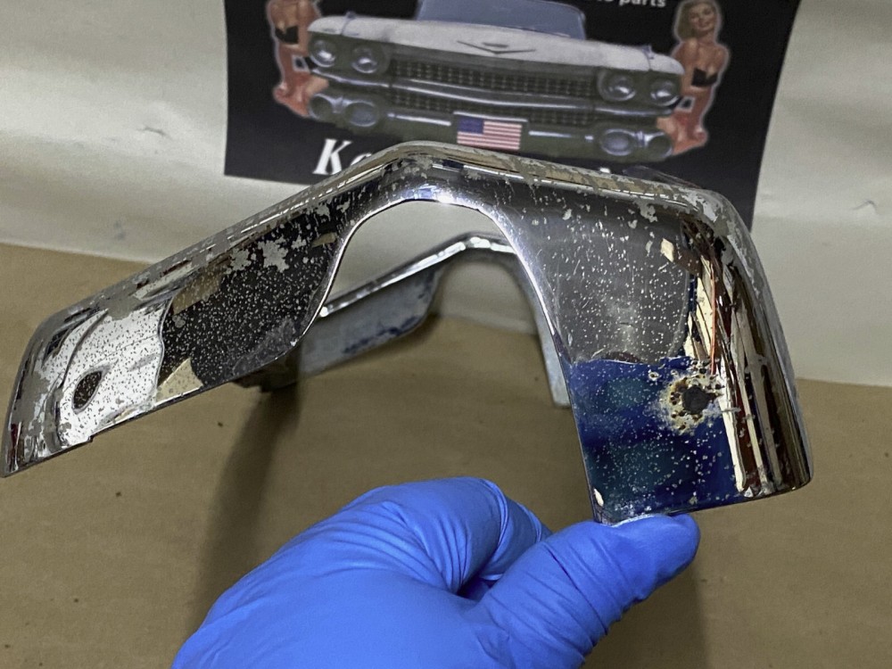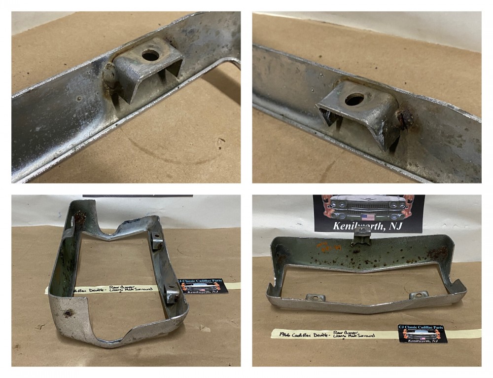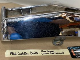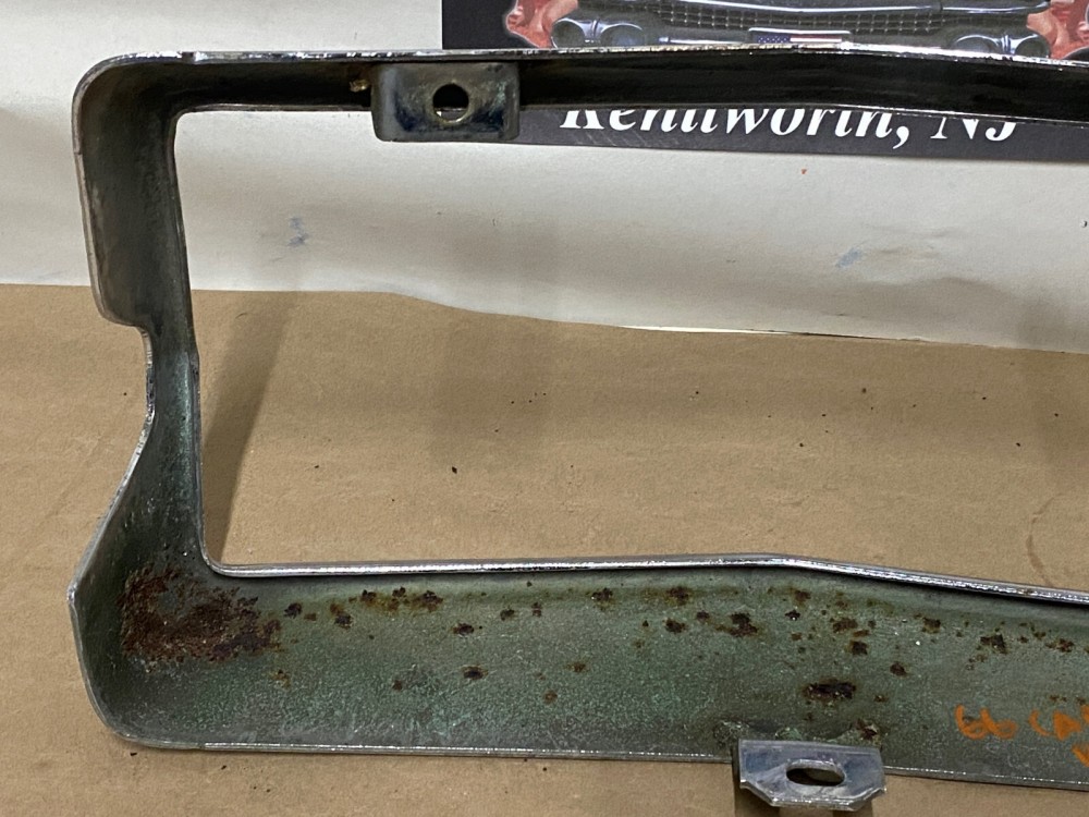 This OEM rear bumper license plate guard is in driver quality condition. No major dings/dents. Chrome has some crazing and some spots where the chrome is worn off. No heavy pitting except one spot on the side, not readily seen. No cracks. Excellent candidate for rechroming. Please view the video of it for close up details (https://youtu.be/DVFsSwKNdD4) and look at all pictures as they are a part of the description. This was removed from a 1966 Cadillac Deville, but may fit other vehicles listed in compatibility chart; fitment is verified by Cadillac Master Parts 7.828, please do your own research as we do not offer refunds if it does not fit your vehicle.
