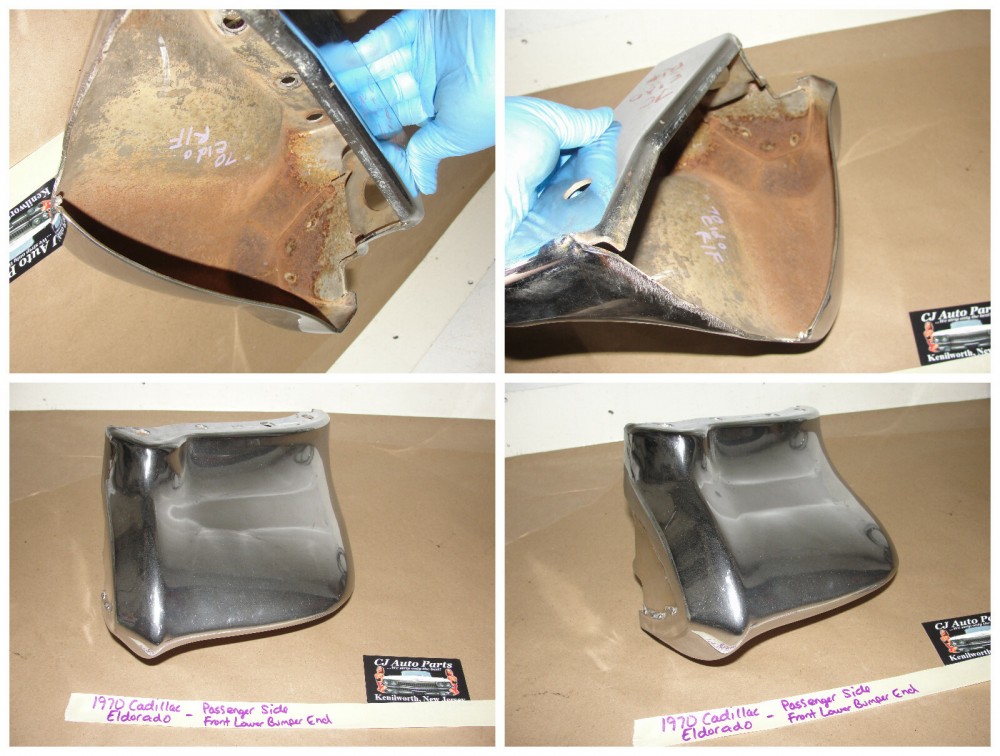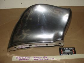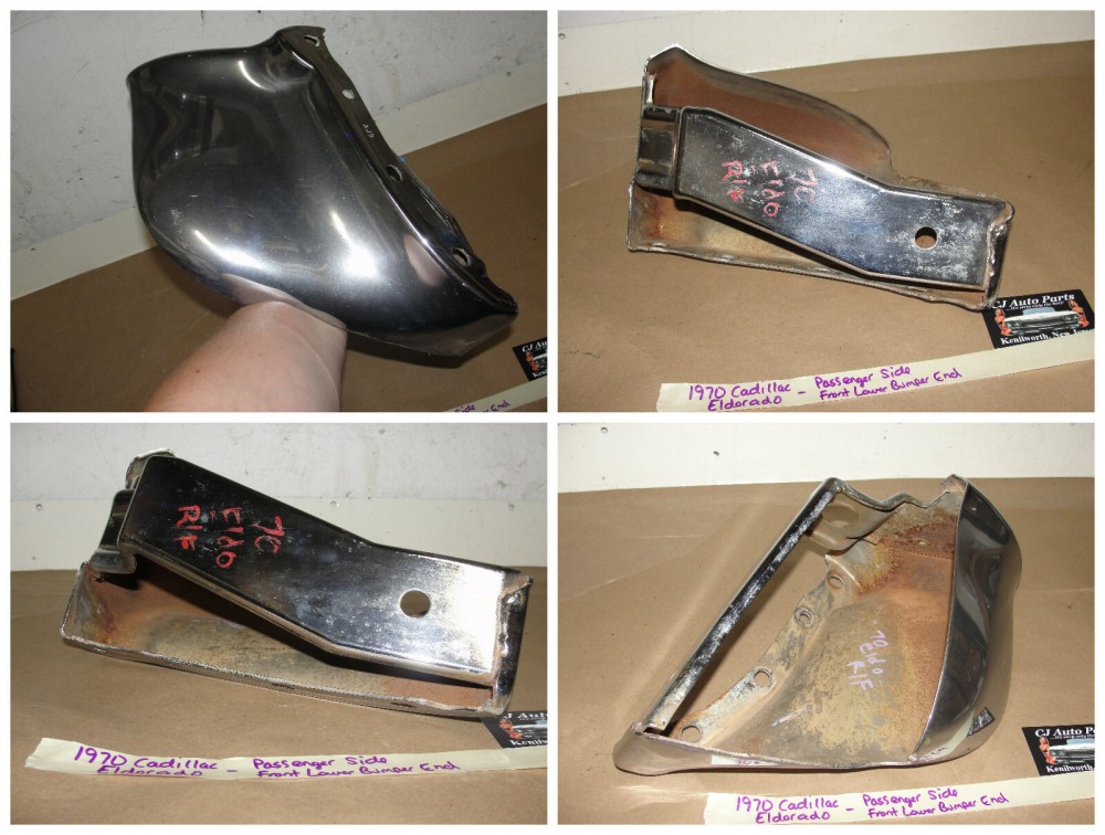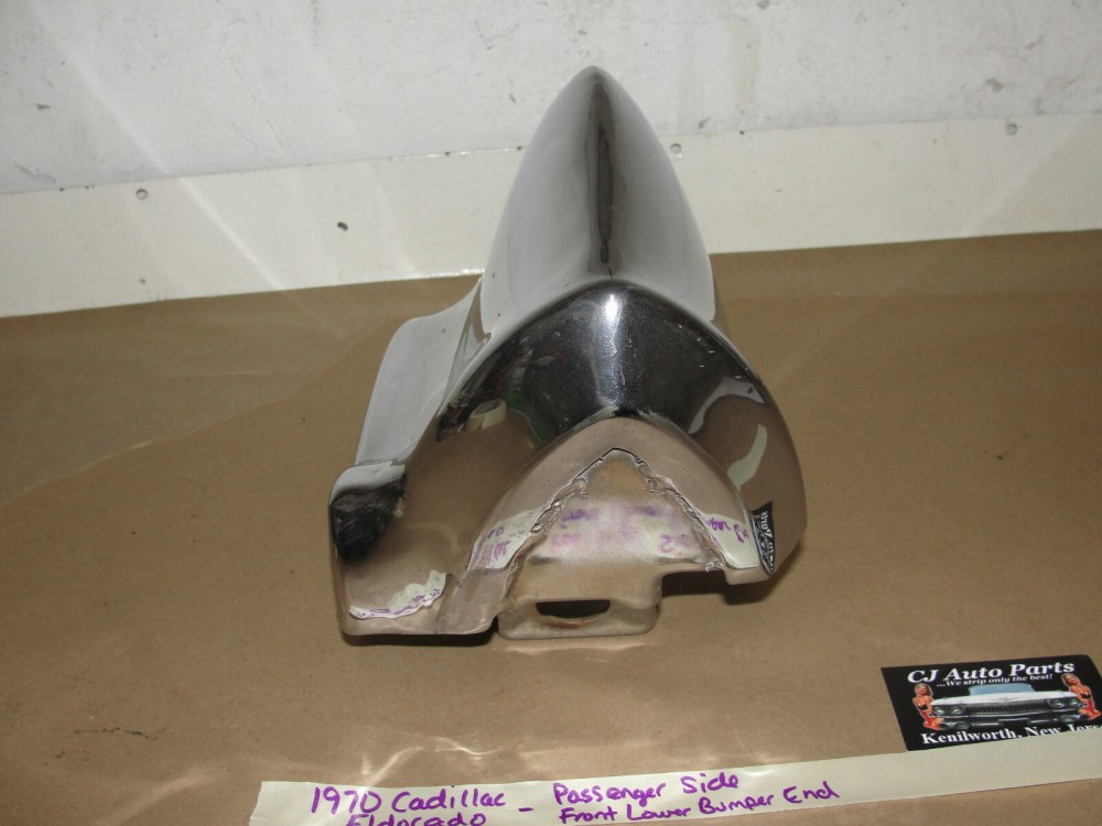 This OEM passenger side front lower bumper end is in very good condition. Chrome has a nice shine. No major dings/dents. Has a couple deeper scratches and average light scratches and wear typical of a used part its age. Nice solid bumper end. Please view the video (https://youtu.be/OyPW6NJkHzs) and look at all pictures for details as they are part of the description. This was removed from a 1970 Cadillac Eldorado, but may fit other vehicles listed in compatibility chart; fitment is verified by Cadillac Master Parts List 7.831 and Hollander 672, please do your own research as we do not offer refunds if it does not fit your vehicle.
