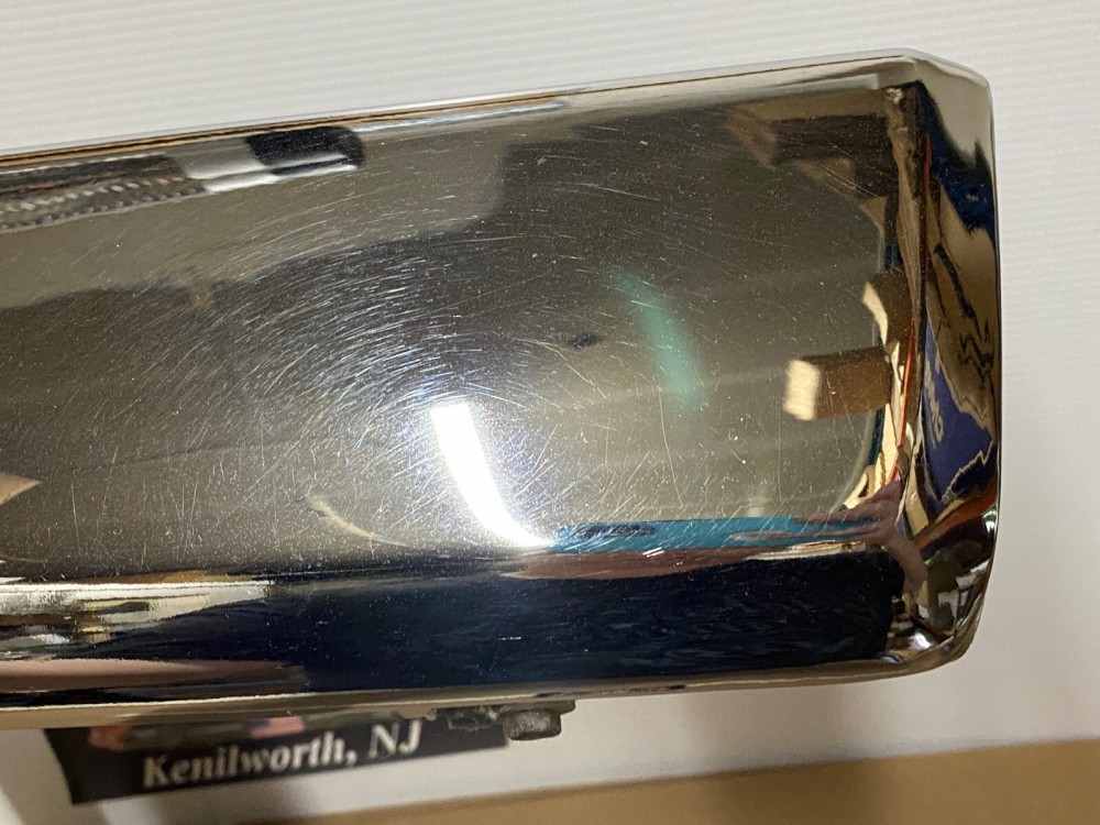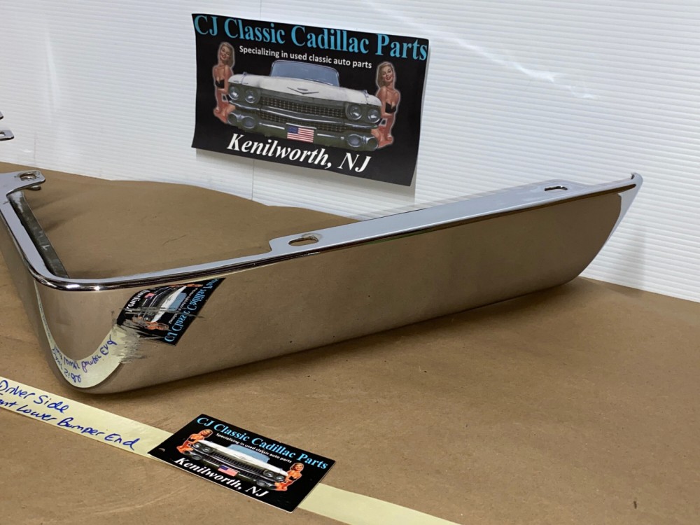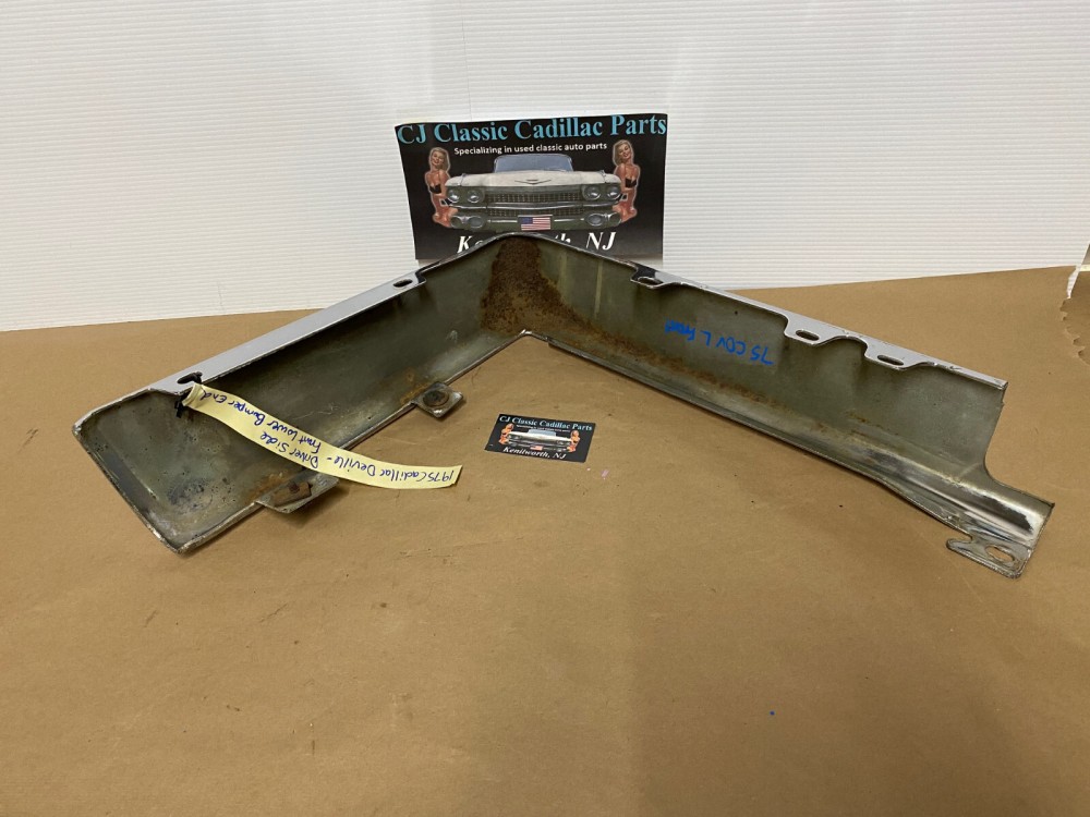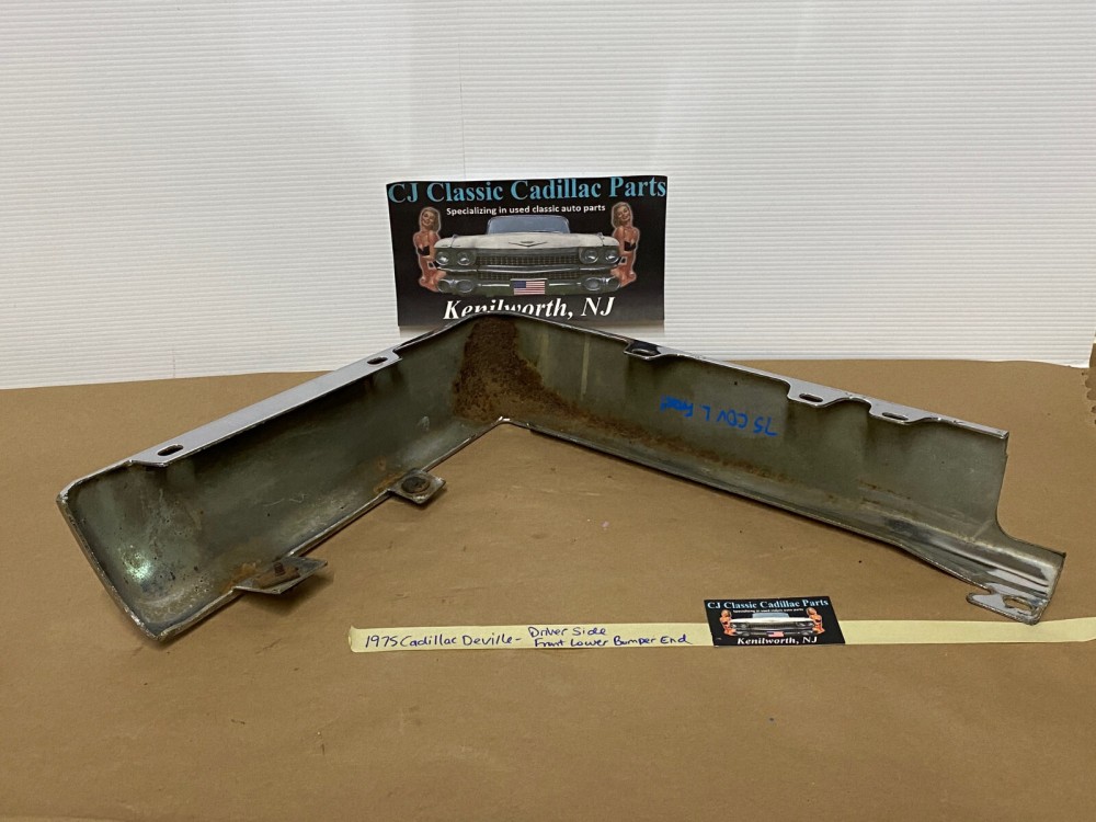 This OEM driver side front lower bumper end is in very good condition. Chrome has a decent shine, no major pitting, has a small ding in the corner and some scuffs that went through the chrome, but overall still very nice. This is not all rotted out on the back side like most. Please view the video ( https://youtu.be/tPIzcttBAx8 ) and look at all pictures as they are part of the description. This was removed from a 75 Cadillac Deville, but may fit other vehicles listed in compatibility chart; fitment verified by Cadillac Master Parts List 7.831 but please do your own research as we do not offer refunds if it does not fit your vehicle.