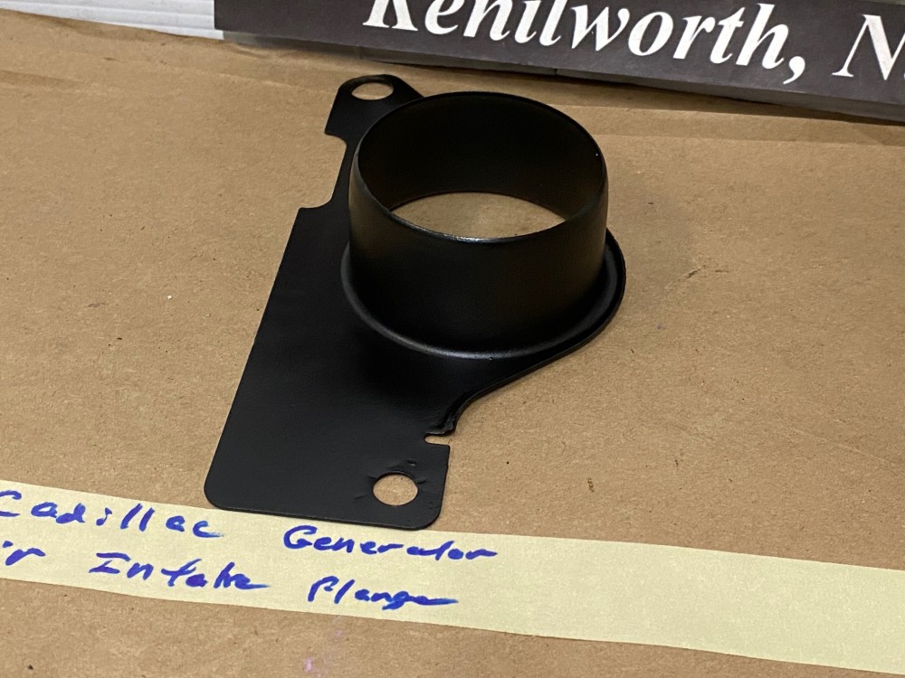 This factory original A/C generator air intake hose flange is in excellent condition with minimal pits. Typical for being over 60 years old. It has been sandblasted and painted with high heat engine paint. Please look at all pictures as they are part of the description. This is for 59-60 Cadillacs (except 75 & Commercial Chassis) WITH A/C and all 58-61 Cadillac 75 and Commercial Chassis. Fitment is verified by Cadillac Master Parts List 7.0032, please do your own research as we do not offer refunds if it does not fit your vehicle.