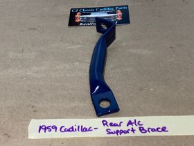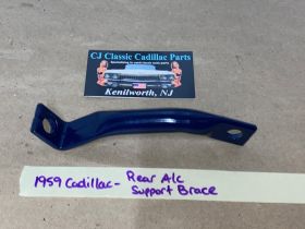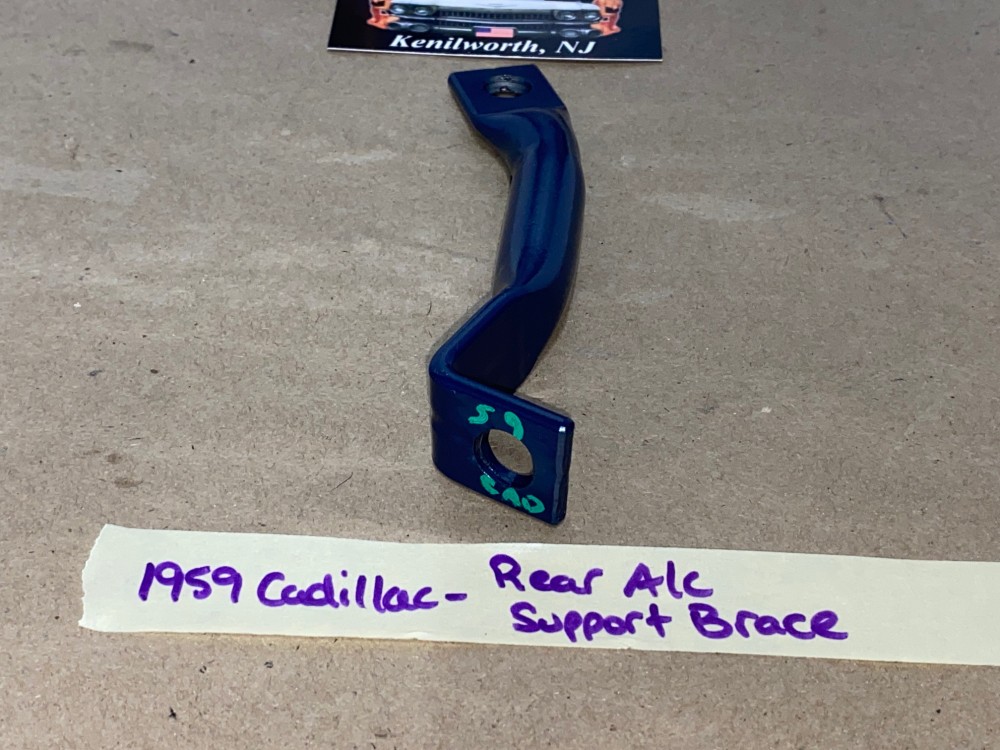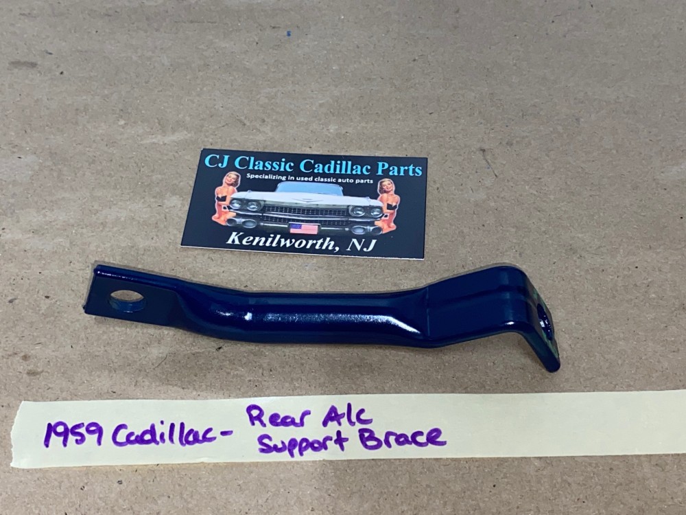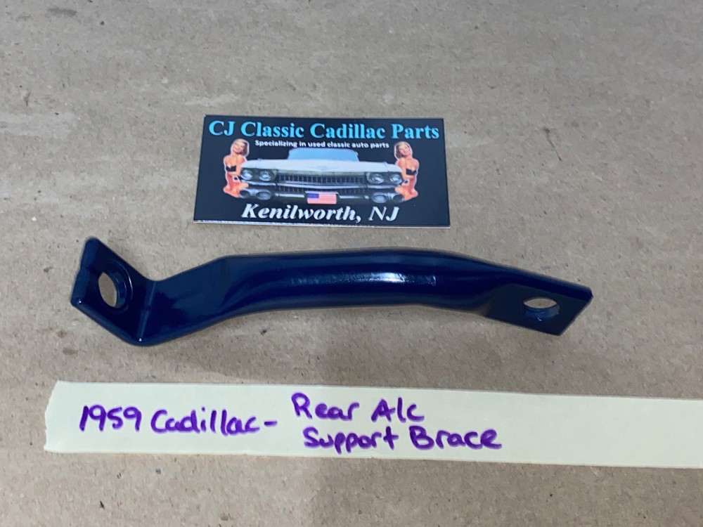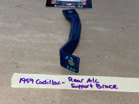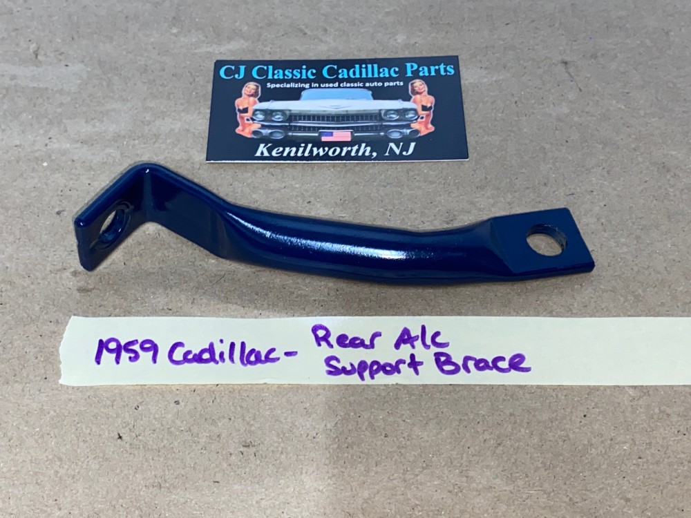 This OEM rear A/C Compressor Support Mounting Brace is in excellent condition. Please see the 2nd picture for mounting location. This mounts between the two ears of the rear A/C mounting bracket to brace the bracket and give it extra support.The rear A/C support bracket in picture #2 is for reference only to demonstrate how the brace mounts to the support bracket, support bracket IS NOT INCLUDED in this purchase, it is available for sale separately in another listing. It has been sandblasted and painted with period correct Cadillac Dark Blue engine paint (Bill Hirsch). Fully intact, no cracks. Please view all pictures as they are a part of the description. This was removed from a 1959 Cadillac; but may fit other vehicles listed in compatibility chart; fitment is verified by Cadillac Master Parts List 54.1097; please do your own research to make sure it will fit, as we do not offer refunds if it does not fit your vehicle.