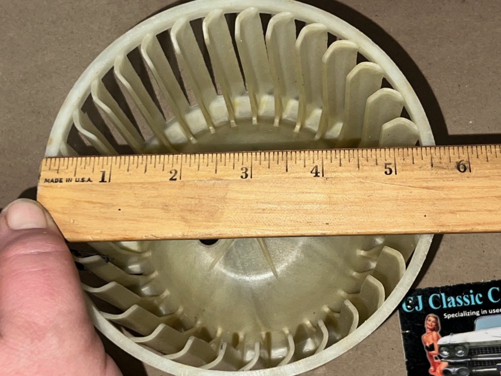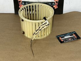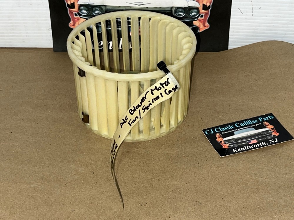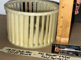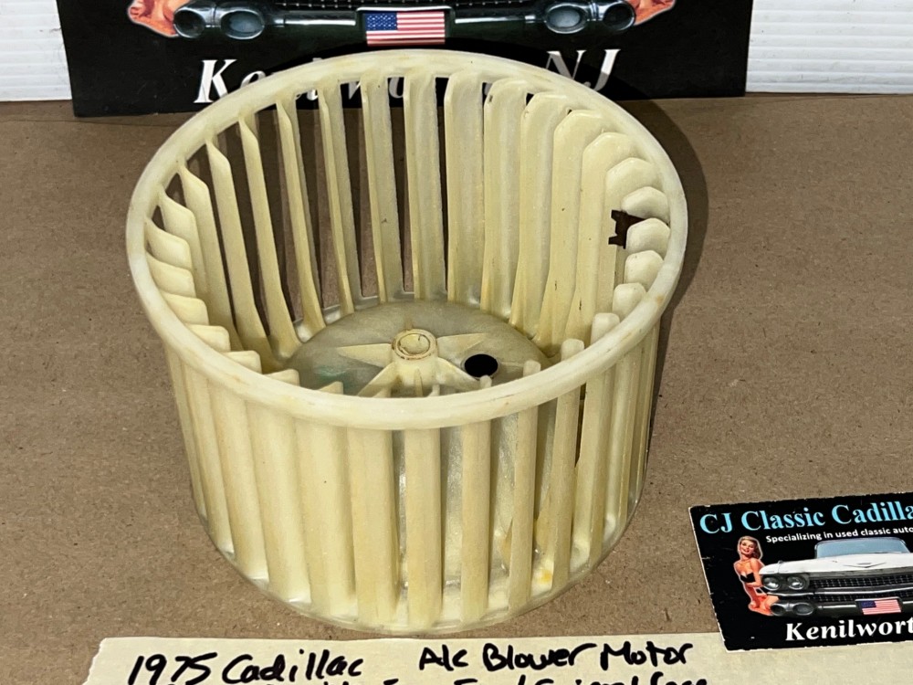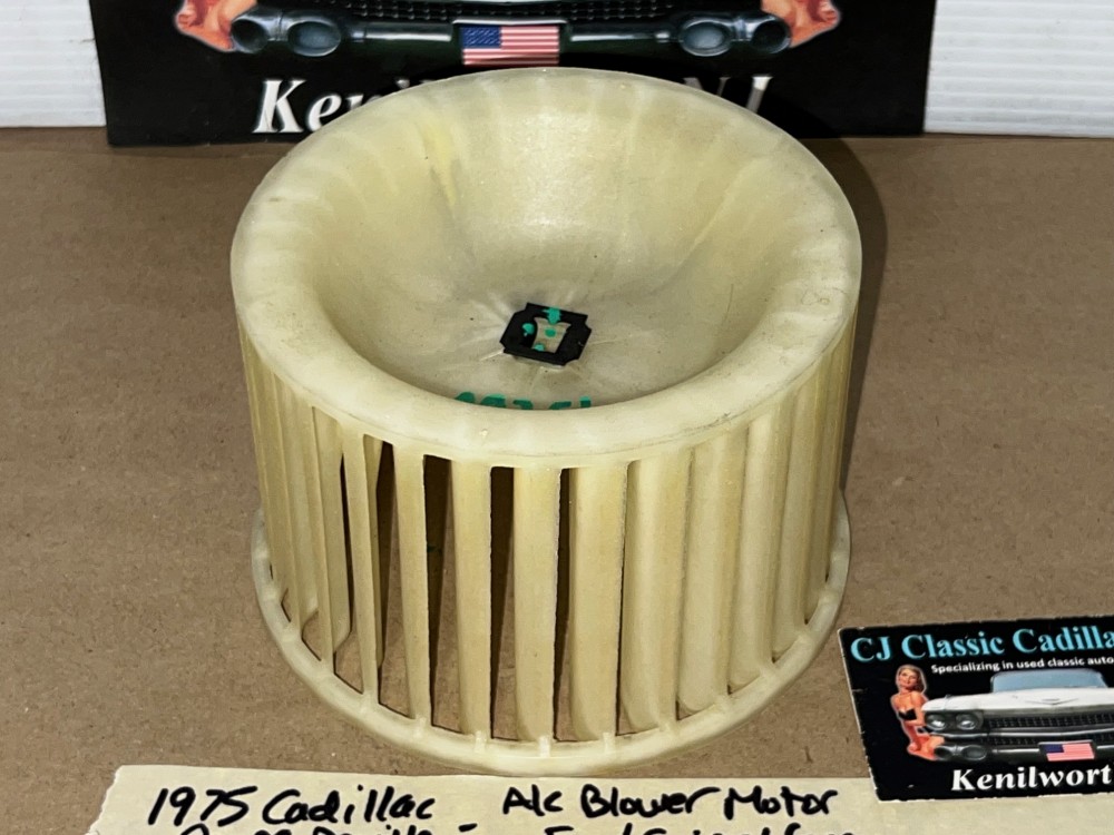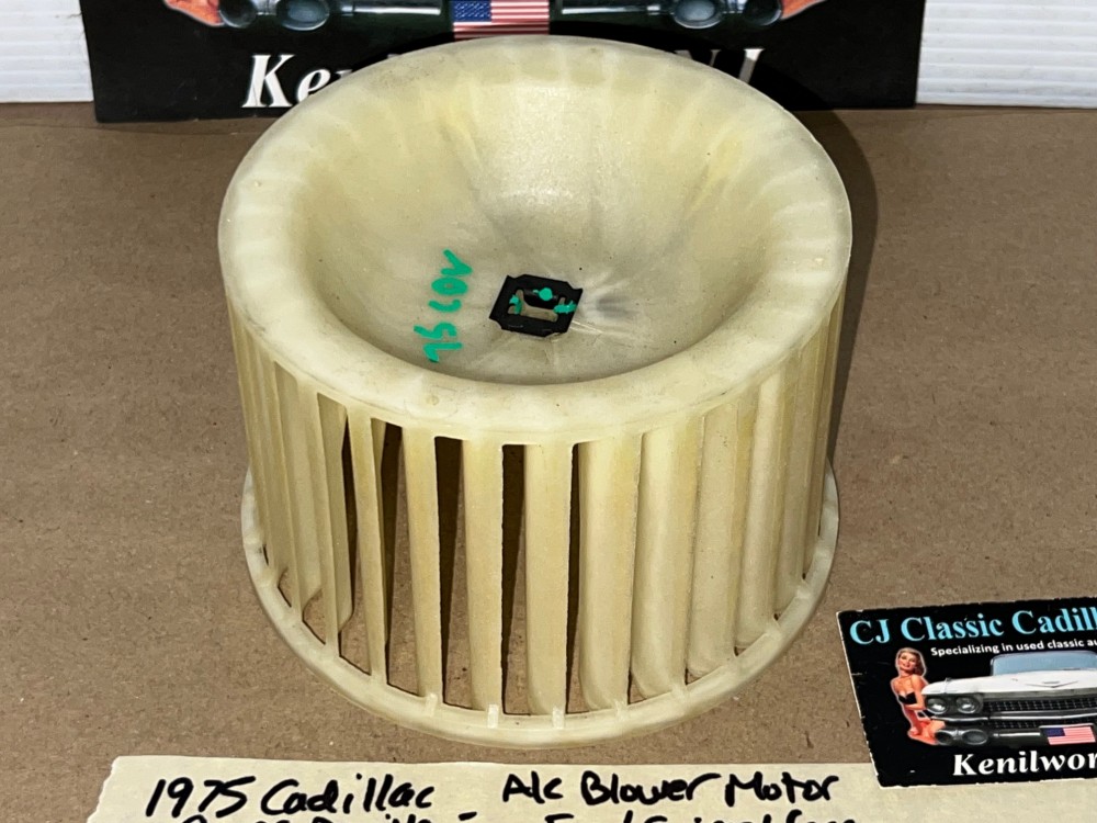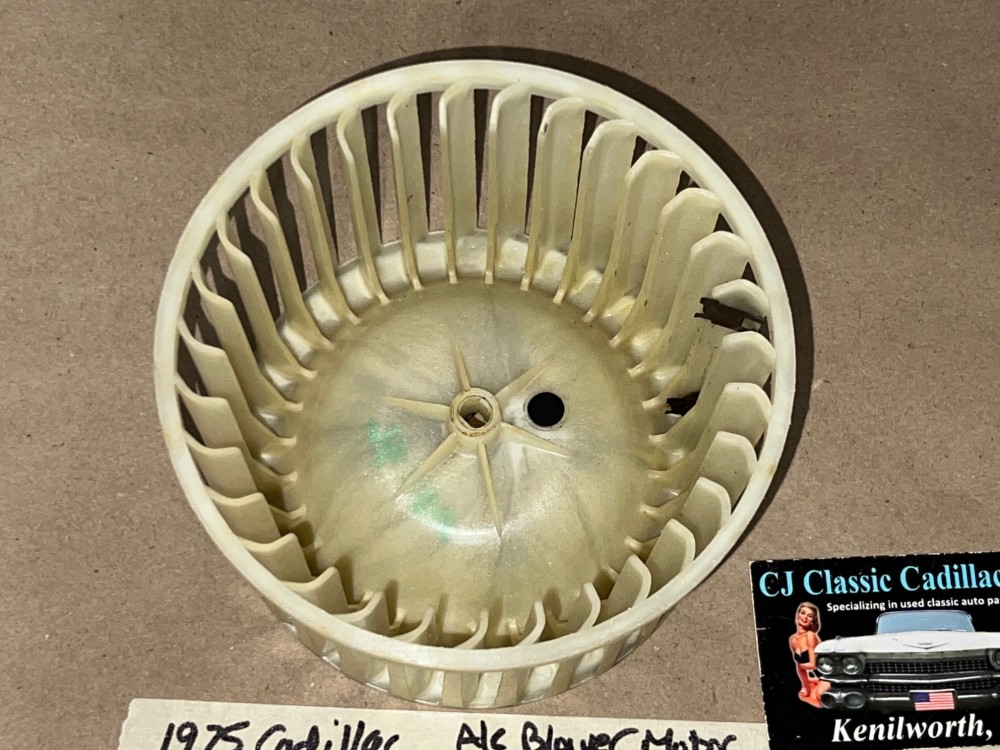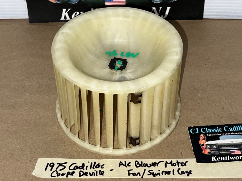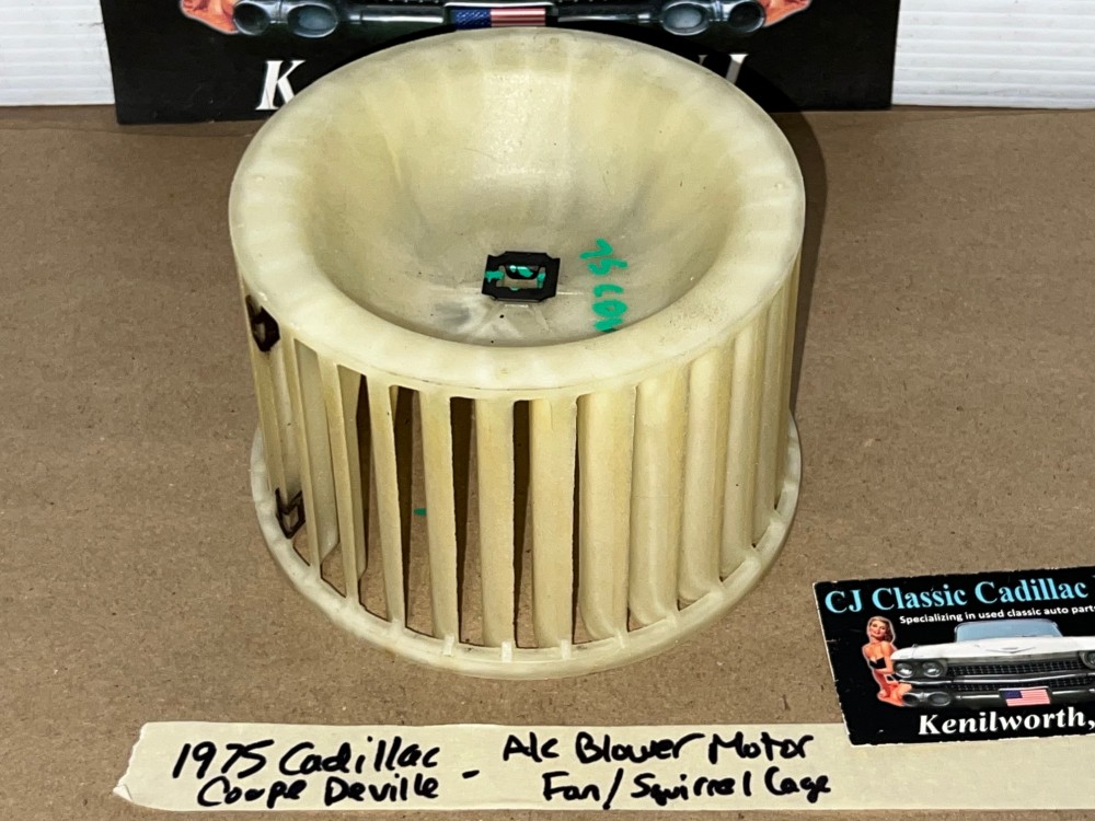 This OEM blower motor squirrel cage is in excellent condition. All plastic fins are intact, no cracks. Comes with the metal adapter as pictured, which is necessary to use when transferring to new blower motor. Please view all pictures as they are a part of the description. This was removed from a 1975 Cadillac Deville, but may fit other vehicles listed in compatibility chart; fitment verified by Cadillac Master Parts List 9.216; please do your own research to make sure it will fit, as we do not offer refunds if it does not fit your vehicle.