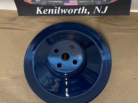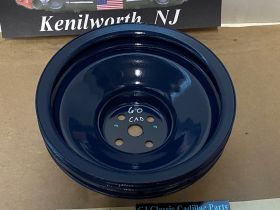 This Restored double groove water pump pulley is in excellent condition. It has been sandblasted and painted with Bill Hirsch Cadillac dark blue engine paint. Please look at all pictures as they are part of the description.  This was removed from a 1960 Cadillac Non A/C Car, but may fit other vehicles listed in compatibility chart; fitment based on Cadillac Master Parts List 1.062; please do your own research as we do not offer refunds if it does not fit your vehicle.