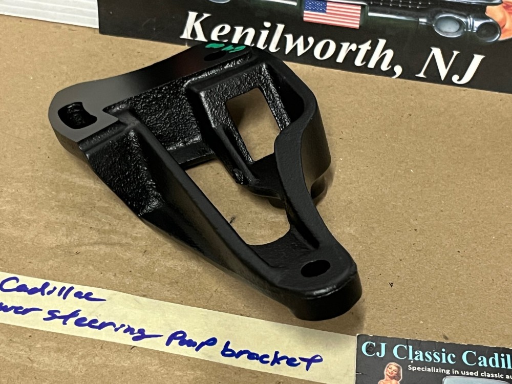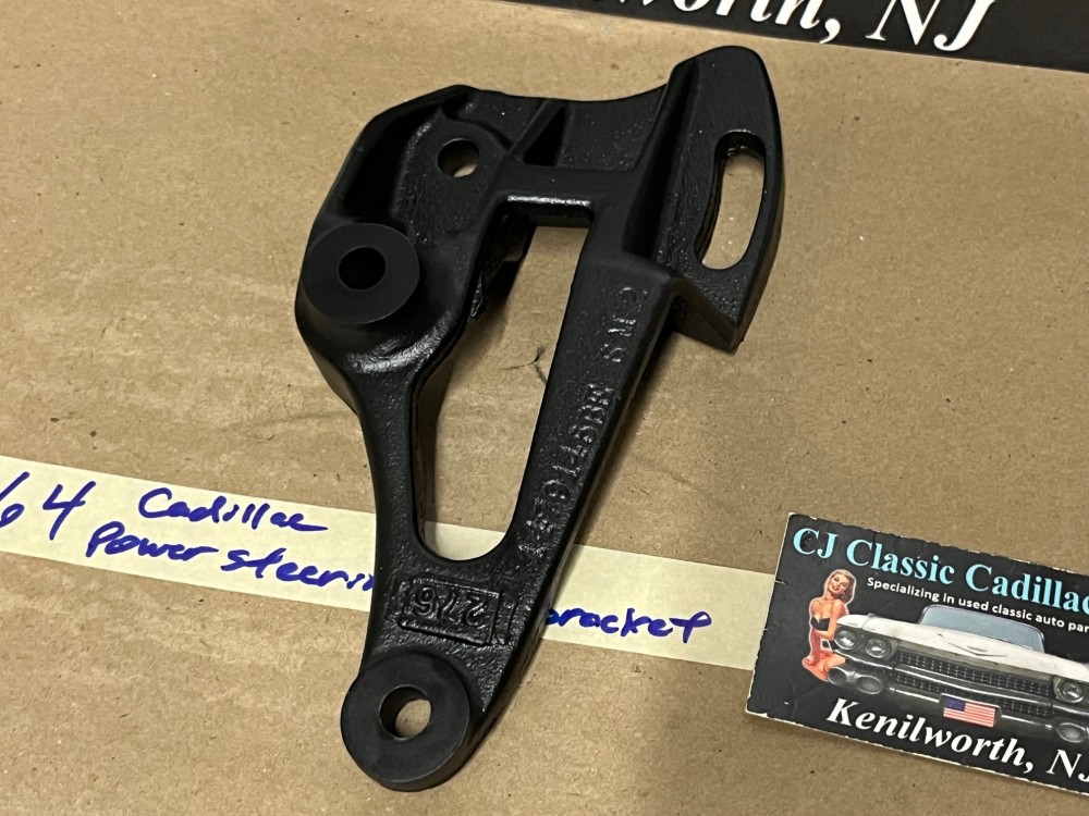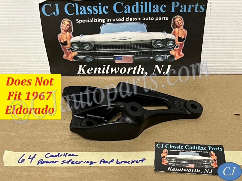 This OEM Power steering pump bracket which is in excellent condition. This was sandblasted and painted with a high heat engine paint. No cracks. Please look at all pictures as they are part of the description. This was removed from a 1964 Cadillac, but may fit other vehicles listed in compatibility chart; fitment is verified by Cadillac Master Parts List 6.606, please do your own research as we do not offer refunds if it does not fit your vehicle.