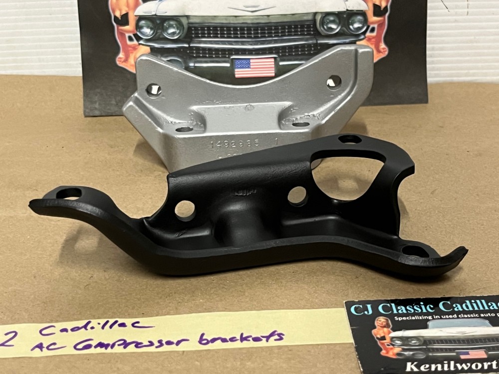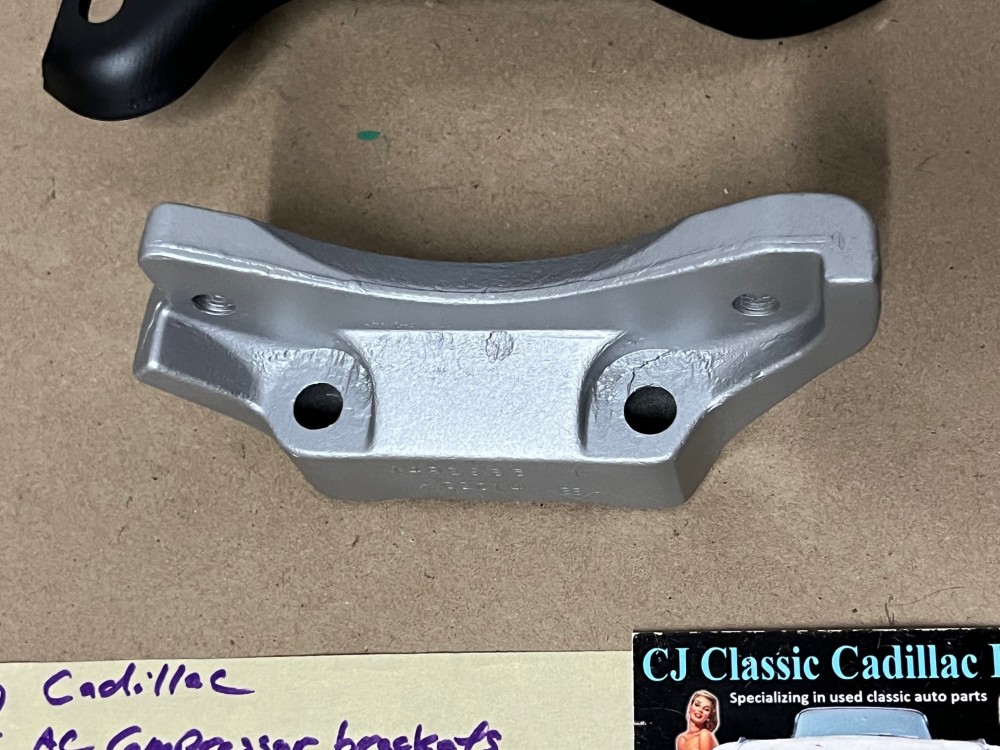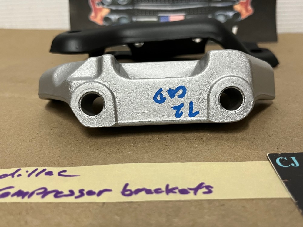 These OEM A/C mounting brackets are in good condition. These have been sandblasted and painted with a high heat engine paint. Brackets are intact, no cracks. This does not include any bolts. Has average pitting/wear typical of a used part its age, but solid. Please view all pictures as they are a part of the description. This was removed from a 1972 Cadillac, but may fit other vehicles listed in compatibility chart; fitment is verified by Cadillac Master Parts List 9.171 but please do your own research as we do not offer refunds if it does not fit your vehicle.