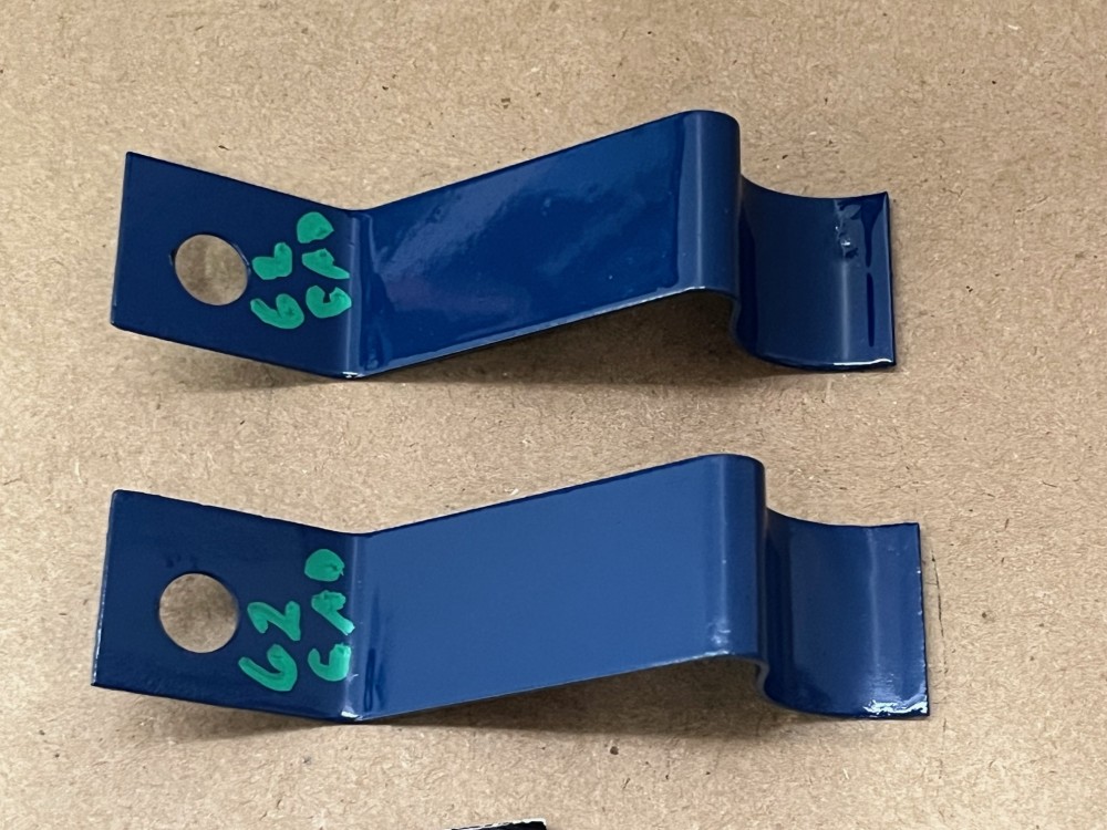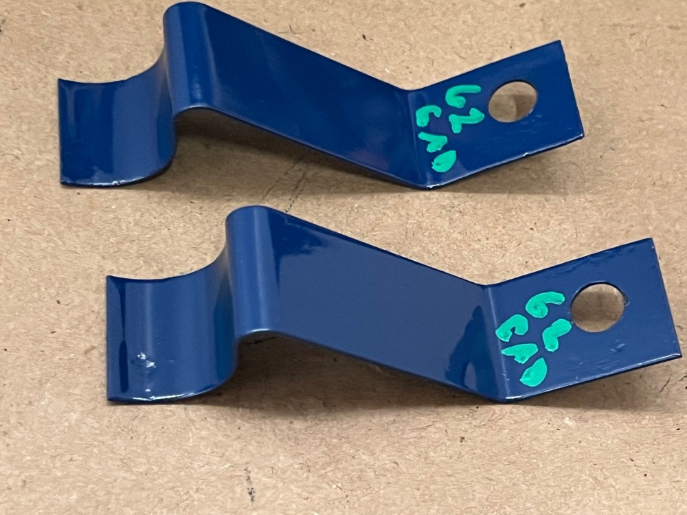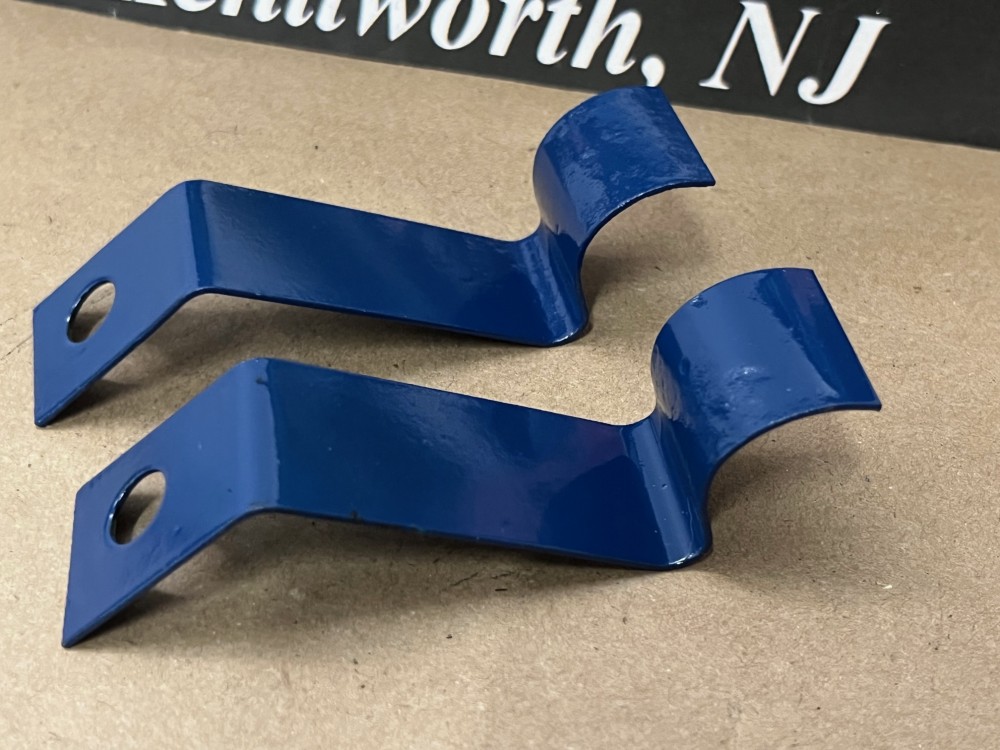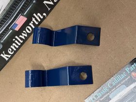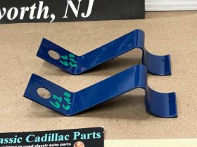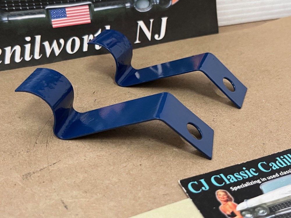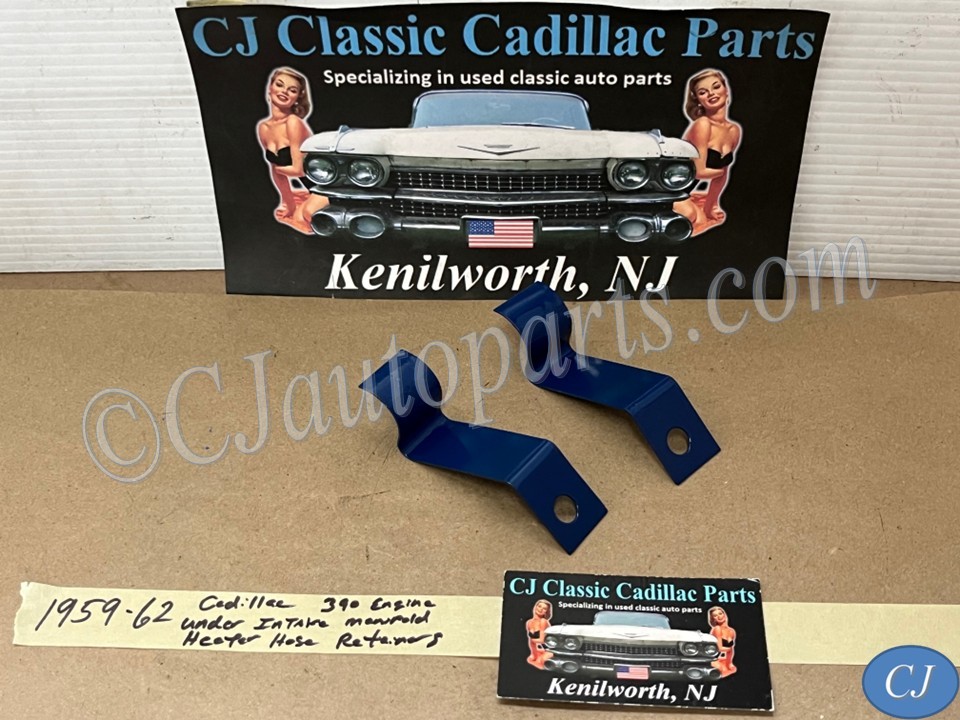 This Restored pair of heater hose retaining brackets mounted under the intake manifold on the 390 engines. These brackets have been sandblasted and painted dark blue, and are in very good condition for their age. Please view all pictures as they are a part of the description. Fitment is verified by Cadillac Master Parts List 54.0165, but please do your own research as we do not offer refunds if it does not fit.