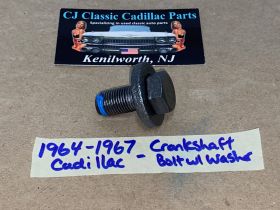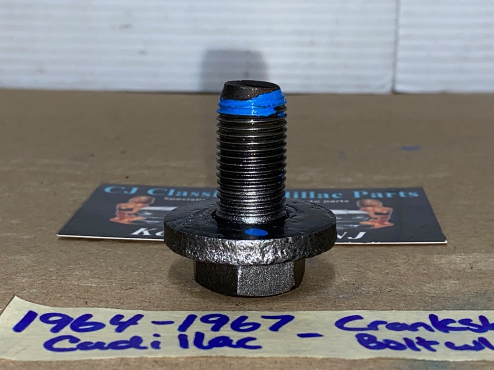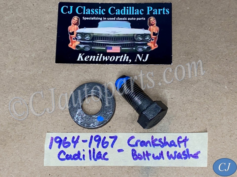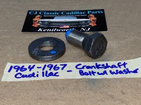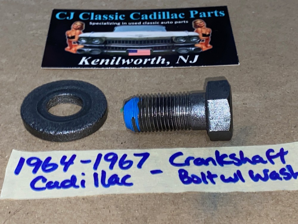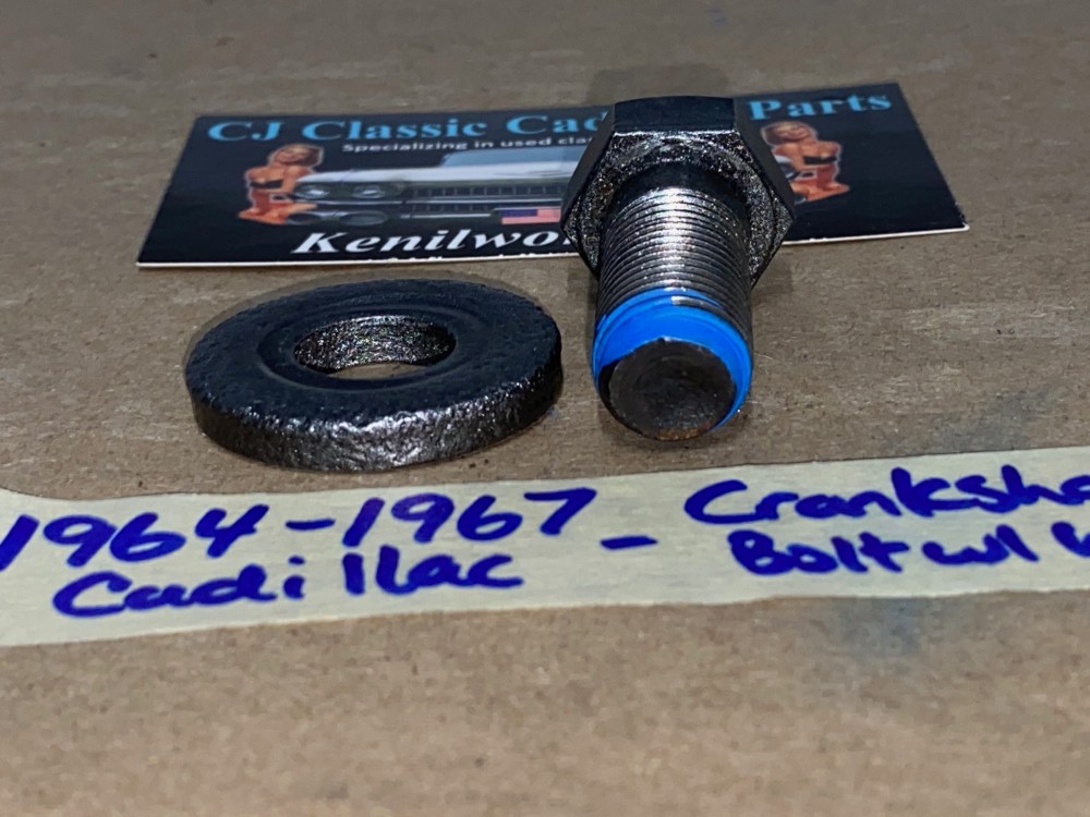 This a new bolt with a good used washer as pictured. Fit tested by an active Vintage Cadillac repair shop. If the bolt does not go in deep enough or not going in smooth, you need to clean out the threads on the crankshaft. There is normally supposed to be cork in the hole to keep the debris out of the threads. These cars did not come with bolt from the factory.