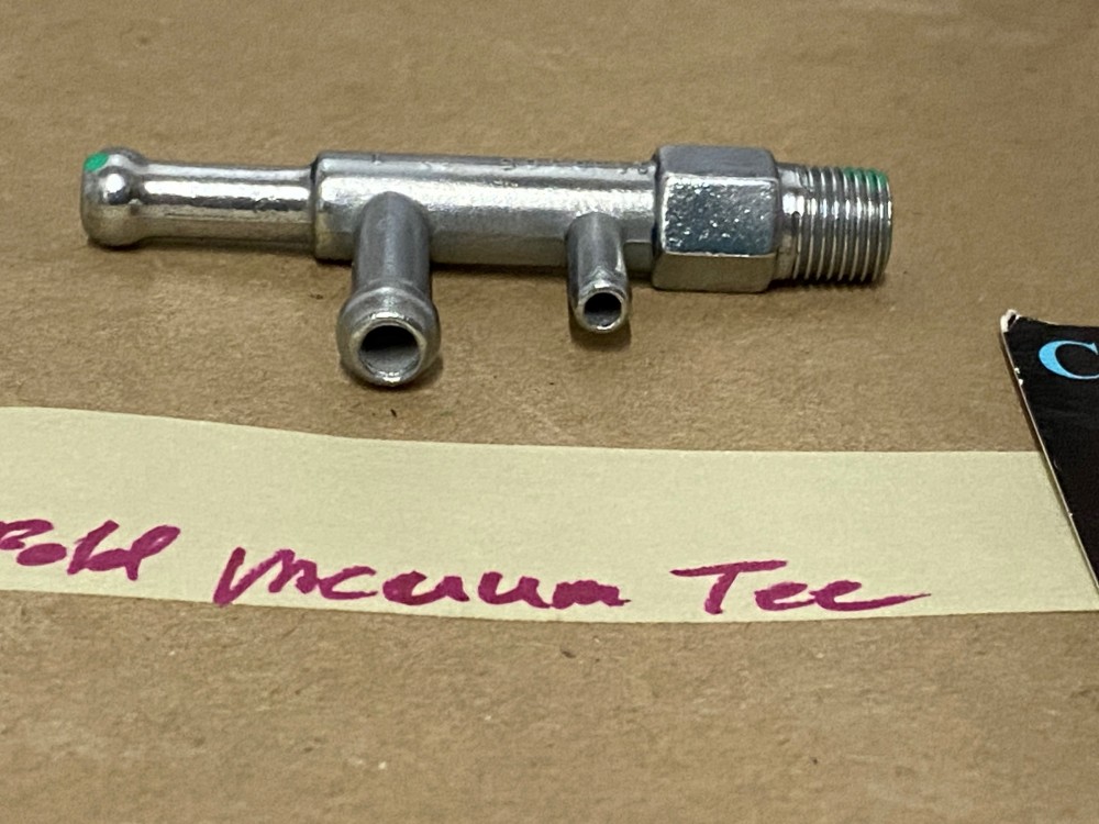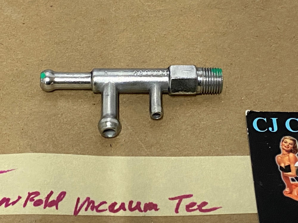 This OEM intake manifold vacuum tree tee is in excellent condition. Threads are all in excellent condition, not stripped. This was removed from a 1964 Cadillac with a 429 engine, but may fit other vehicles listed in compatibility chart; please do your own research as we do not offer refunds if it does not fit your vehicle.