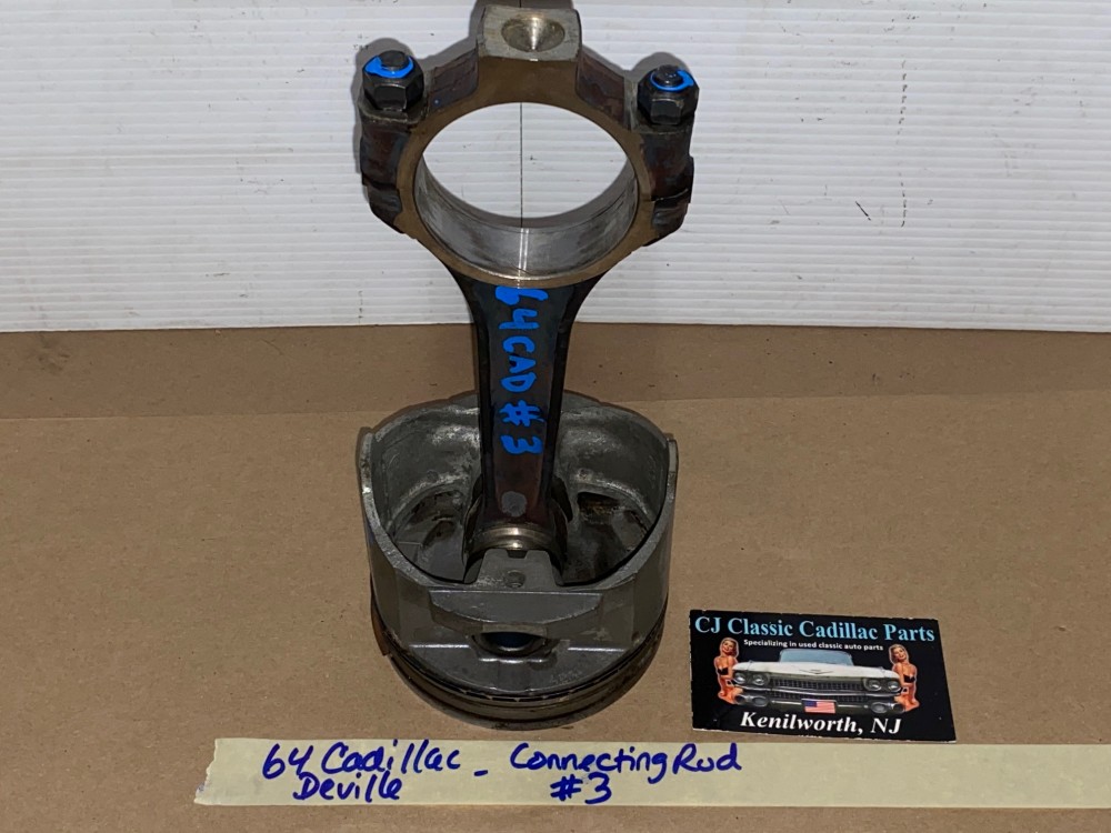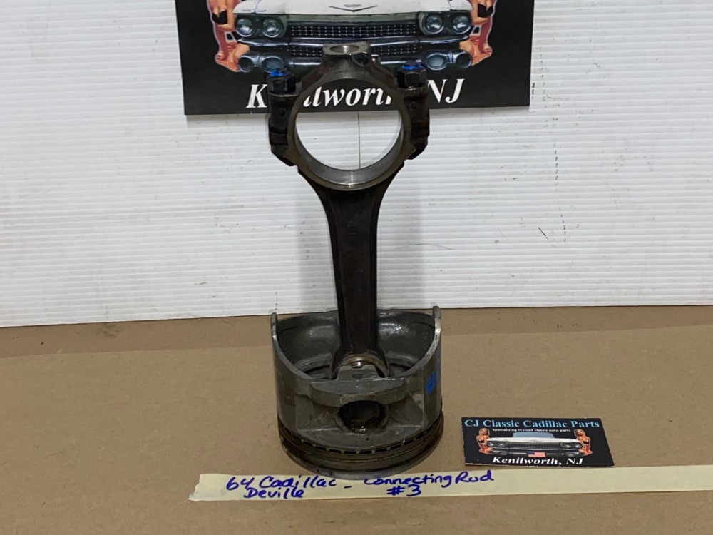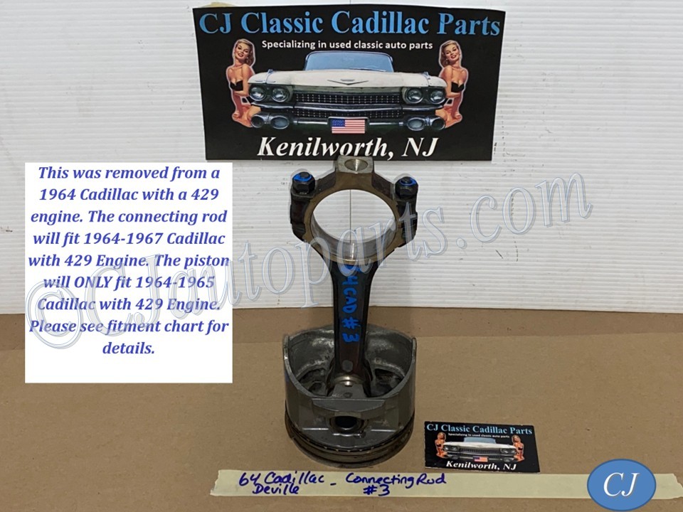 This is for ONE OEM connecting rod and piston, stamped #3. This was cleaned in the dip tank. The connecting rod will fit all 64-67 Cadillacs with a 429 engine. The piston will ONLY fit 64-65 Cadillacs with a 429 engine. Parts #1481006. Please look at all pictures as they are part of the description. This was removed from a 1964 Cadillac Deville with a 429 engine, but may fit other vehicles in compatibility chart; please do your own research as we do not offer refunds if it does not fit your vehicle.