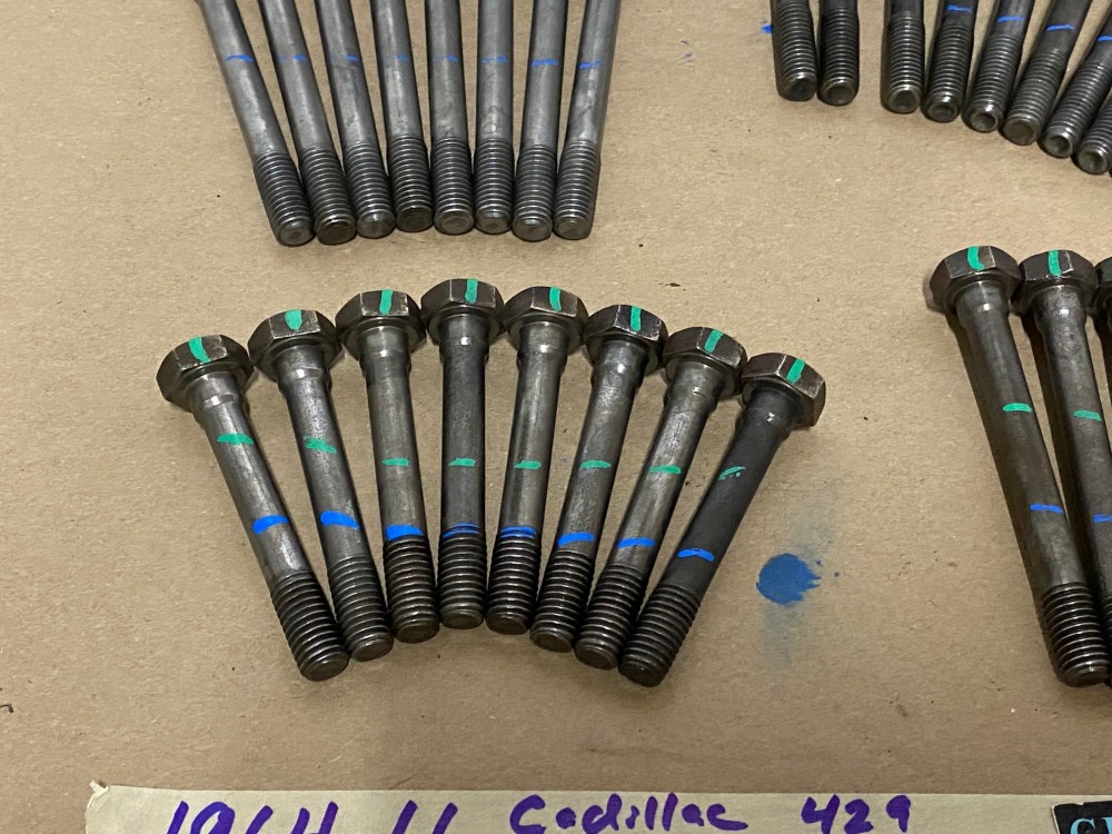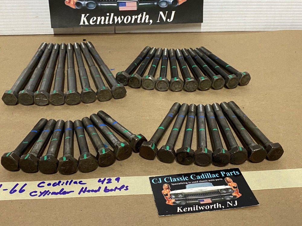 This complete set of cylinder head bolts is in good used condition and includes all bolts to mount both cylinder heads and rocker arms. Threads are in good condition, has average wear, some have pitting as they are 60 years old! Please look at all pictures as they are part of the description. This was removed from a Cadillac with a 429 Engine, but may fit other vehicles listed in compatibility chart; please do your own research as we do not offer refunds if it does not fit your vehicle.