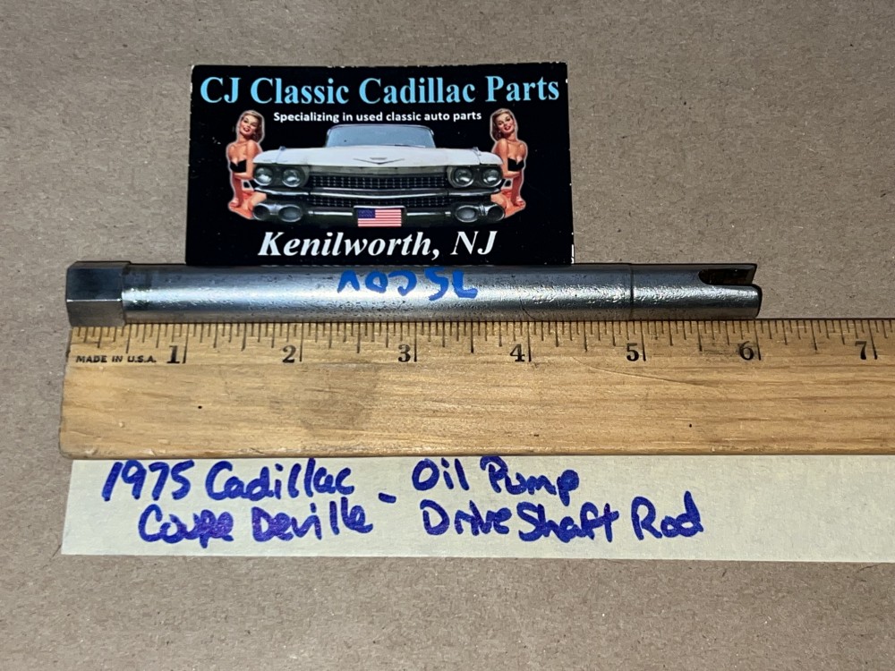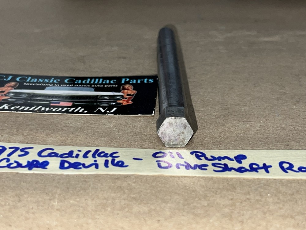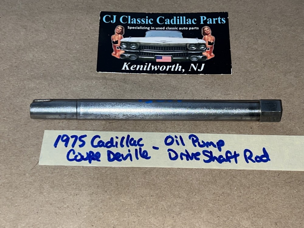 This OEM oil pump drive shaft rod is in excellent condition. Rod is straight, not bent and no cracks. Overall clean, no heavy pitting. Has average wear for its age. This was removed from a 1975 Cadillac Deville, but may fit vehicles listed in compatibility chart; fitment is verified by Cadillac Master Parts List 1.639, #3633330, please do your own research as we do not offer refunds if it does not fit your vehicle.