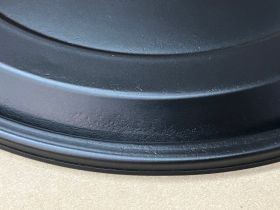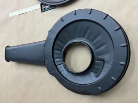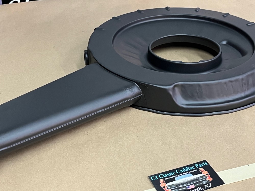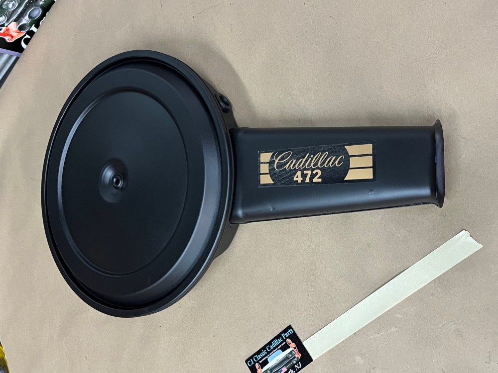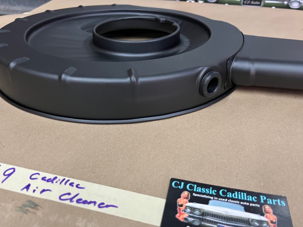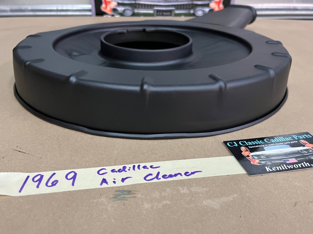This OEM air cleaner assembly is in very good condition with new breather grommet. This is perfect for local car shows average cruise night quality the air cleaner was sandblasted and painted with high heat engine paint. The paint work is not perfect , there are some blemishes. The air cleaner has some dings and dents and some pitting. There is a dent on the lid of the air cleaner & in the bottom of the snorkel, on the top of the snorkel there is a blemish right below the decal. This was removed from a 1969 Cadillac Deville, but may fit other vehicles listed in compatibility chart; fitment verified by Cadillac Master Parts List 3.402; please do your own research as we do not offer refunds if it does not fit your vehicle.