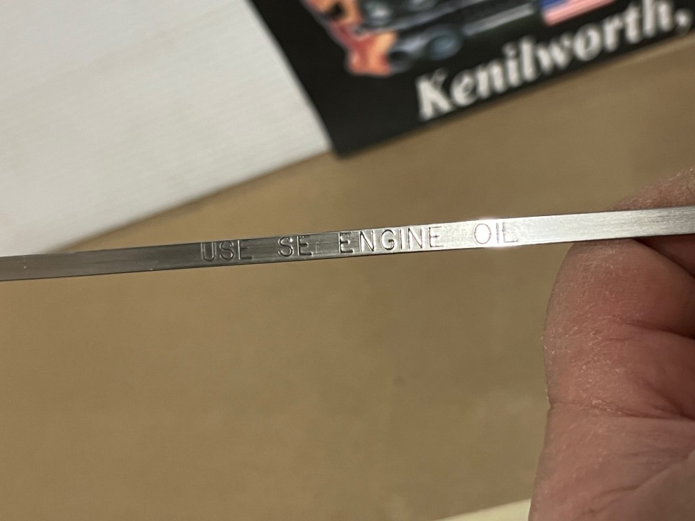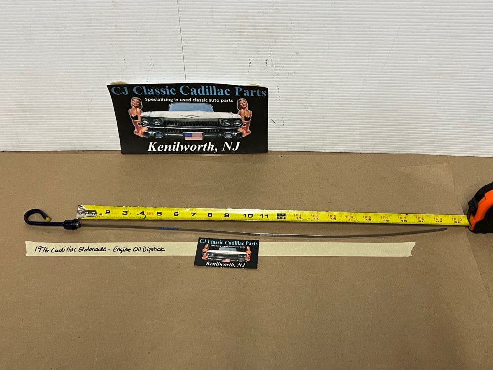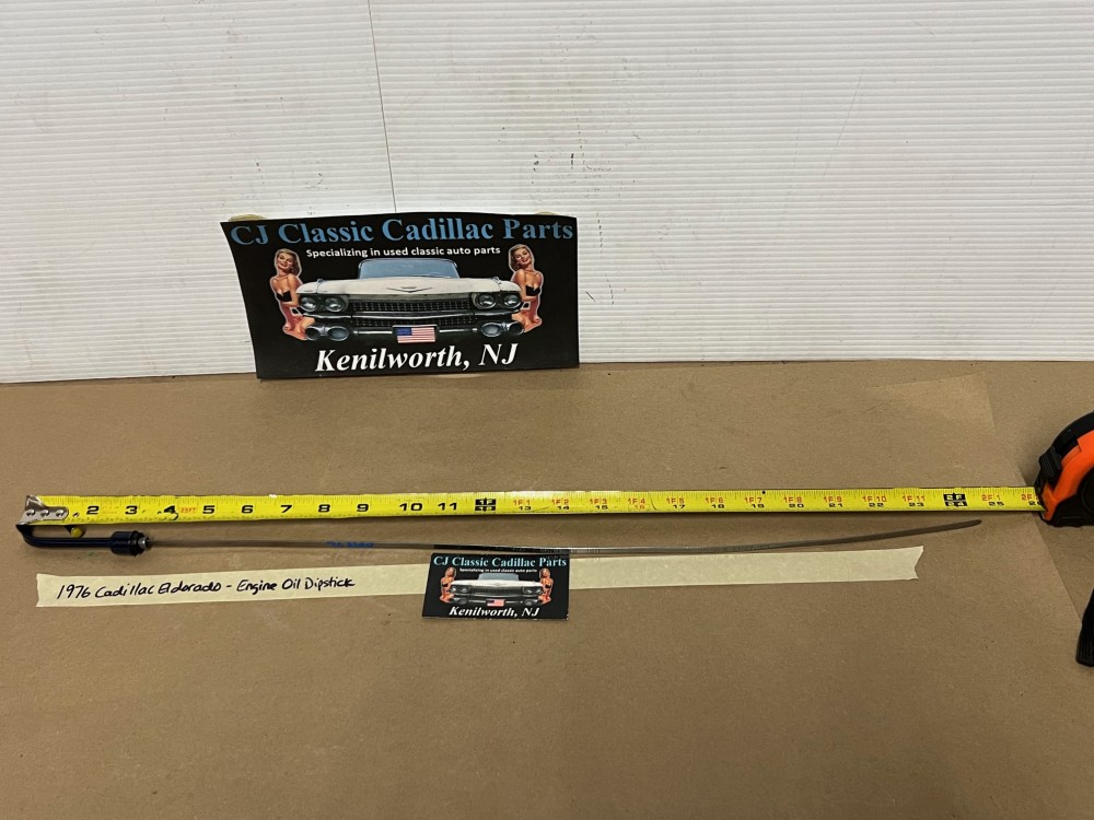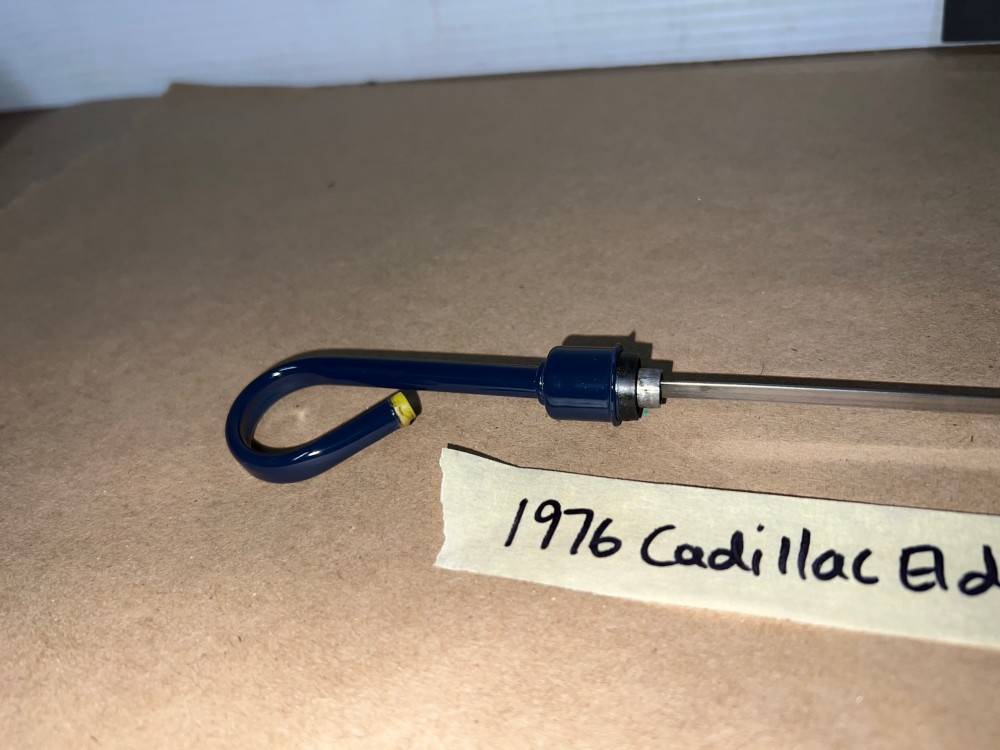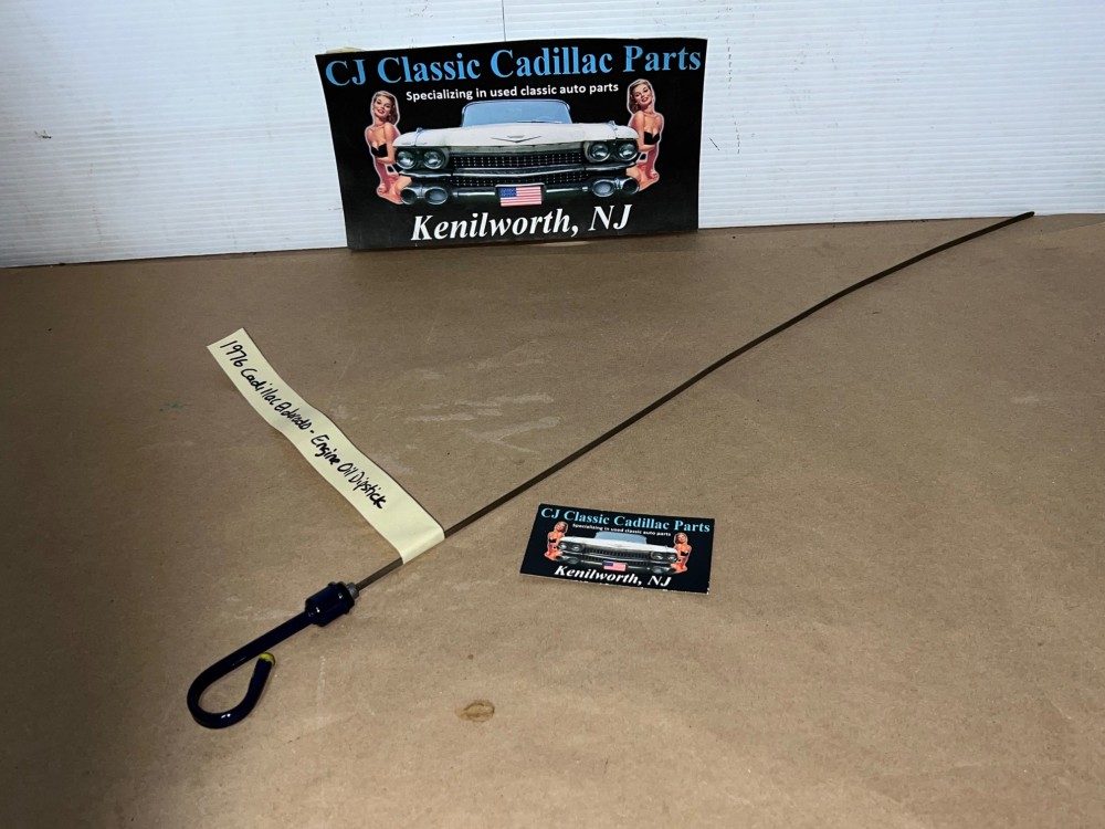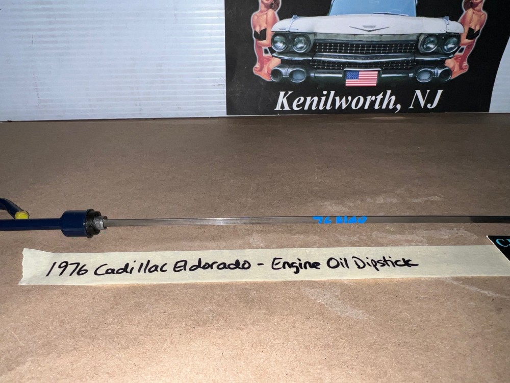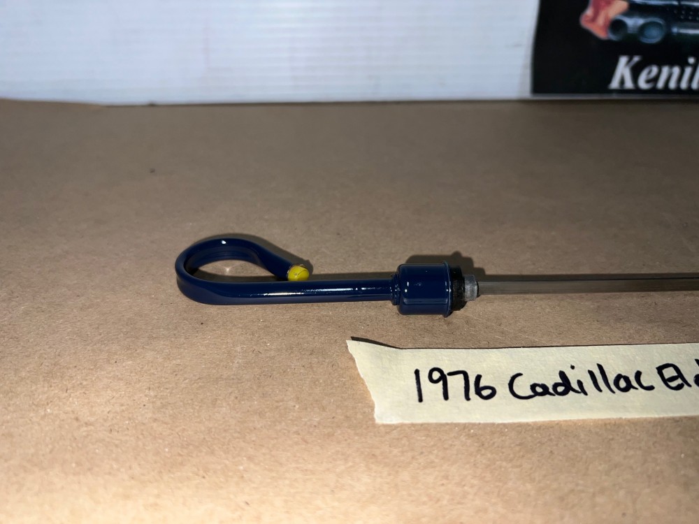 The OEM engine oil dipstick is in excellent condition. The handle has been cleaned and painted with period correct Cadillac Dark Blue engine paint (Bill Hirsch). Handle is in excellent condition, no heavy pitting. The oil level indicator marks are nice and visible/readable and the stick is in excellent condition. Please look at all pictures as they are part of the description. This was removed from a 1976 Cadillac Eldorado (look at all pics & compare to yours before purchasing as we do not take returns), but may fit vehicles listed in compatibility chart; fitment is based on Cadillac Master Parts List 1.516, #1495864, so please do your own research as we do not offer refunds if it does not fit your vehicle.