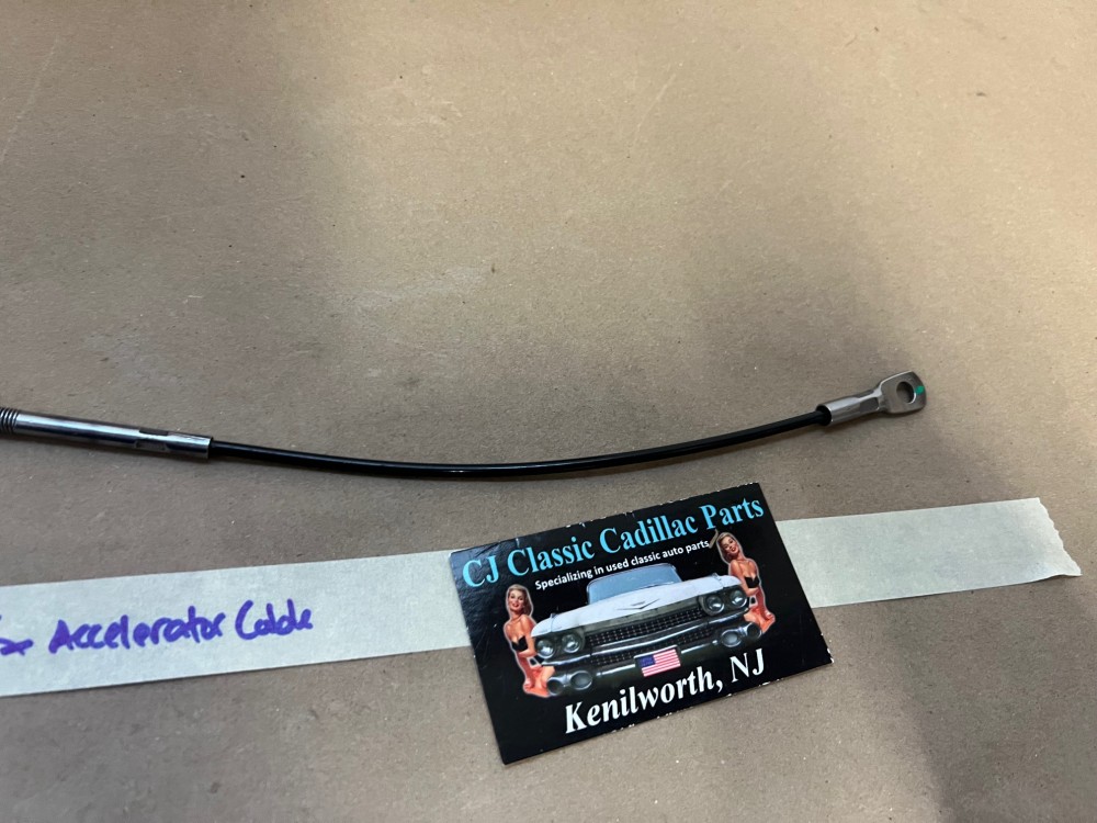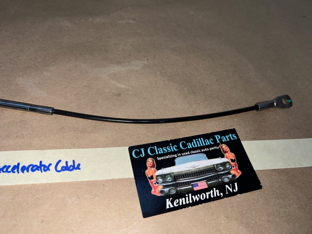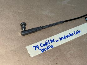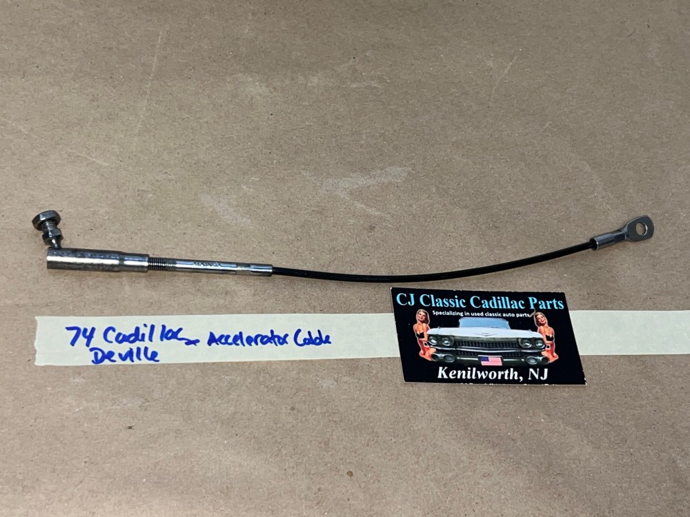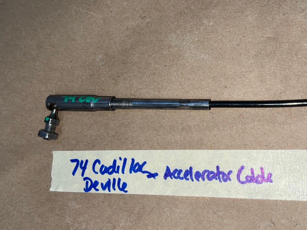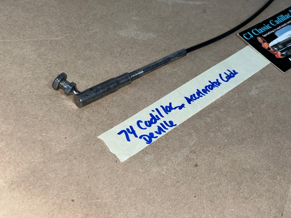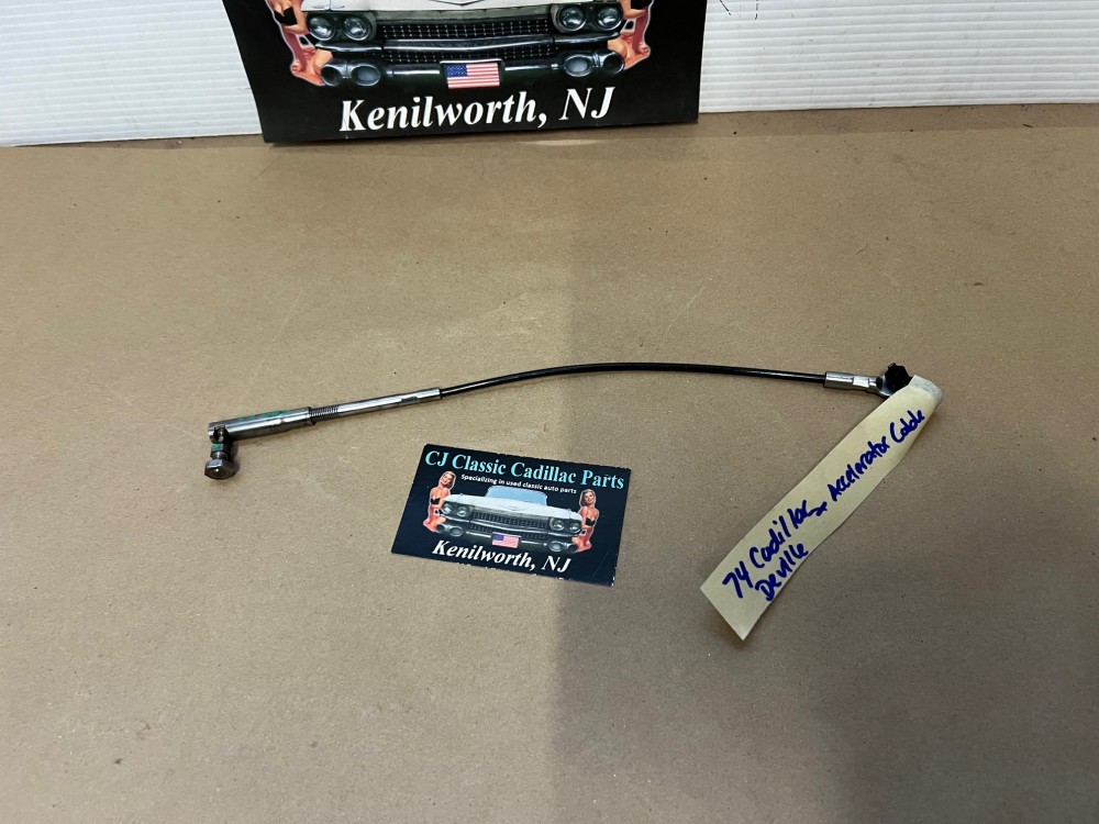 This throttle accelerator cable has been restored and is in excellent condition. The metal has been restored back to it's natural finish, any surface rust has been removed, pivot head has been unthreaded from cable (most are seized) and threads have been cleaned & lubricated so installer can make proper adjustment to length if needed. Overall extremely clean. Pivot moves smoothly as it should. Threads for adjustment are clean, not stripped. Plastic cable cover is intact, no cracks, cable is good and functions as it should. Please look at all pictures as they are part of the description. This was removed from a 1974 Cadillac Deville, but may fit other vehicles listed in compatibility chart; fitment based on Cadillac Master Parts list 3.430; please do your own research as we do not offer refunds if it does not fit your vehicle.