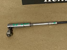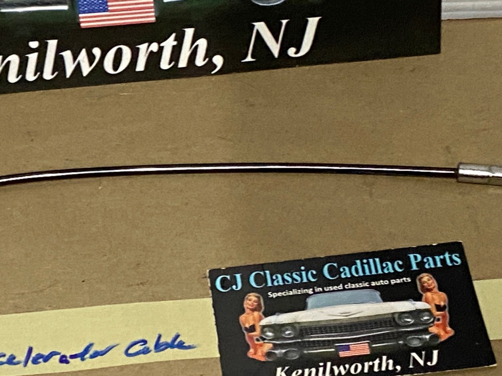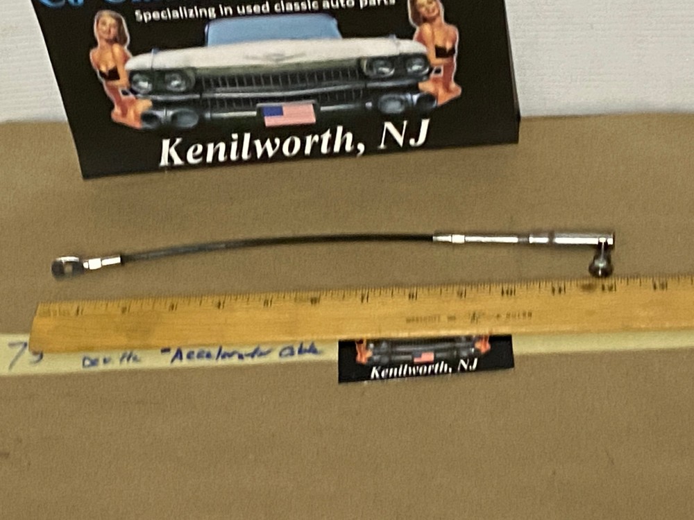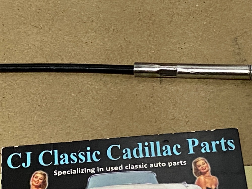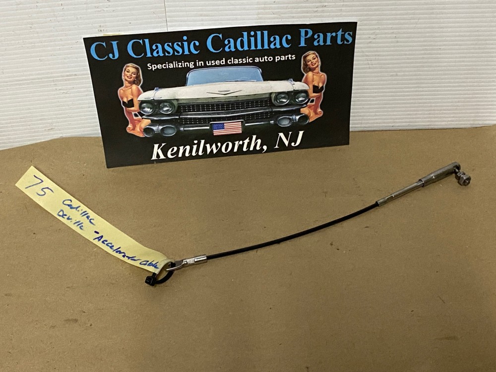 This throttle accelerator cable has been restored and is in excellent condition. The metal has been restored back to it's natural finish, any surface rust has been removed, pivot head has been unthreaded from cable (most are seized) and threads have been cleaned & lubricated so installer can make proper adjustment to length if needed. Overall extremely clean. Pivot moves smoothly as it should. Threads for adjustment are clean, not stripped. Plastic cable cover is intact, no cracks, cable is good and functions as it should. Please look at all pictures as they are part of the description. This was removed from a 1975 Cadillac Deville, but may fit other vehicles listed in compatibility chart; fitment based on Cadillac Master Parts list 3.430; please do your own research as we do not offer refunds if it does not fit your vehicle.