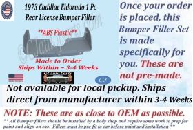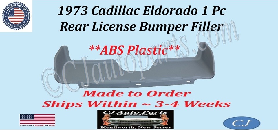 This is a brand new reproduction 1 piece rear license plate filler MADE IN THE USA from high quality ABS Plastic material. ABS is heat resistant and easy to work with. The fillers come primed and ready to be painted, should be scuffed before painting.