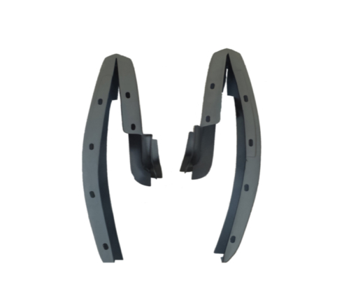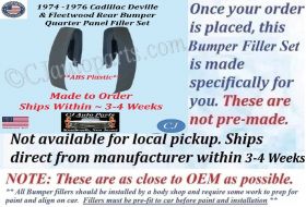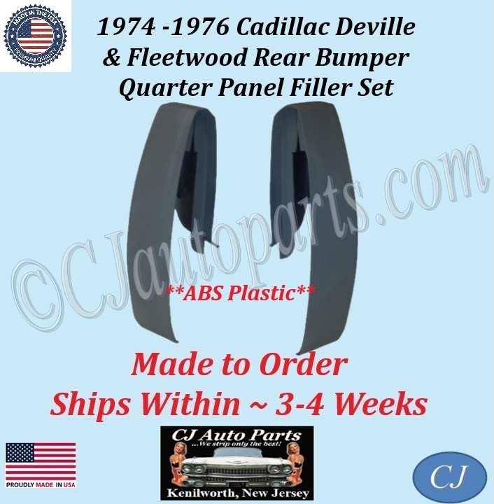 This is a brand new reproduction 2 piece rear quarter panel bumper panel filler set MADE IN THE USA from high quality ABS Plastic material. ABS is heat resistant and easy to work with. The fillers come primed and ready to be painted, should be scuffed before painting.