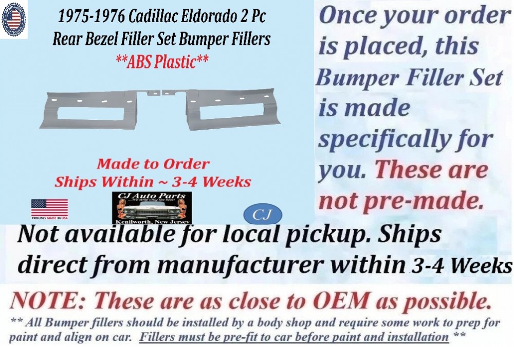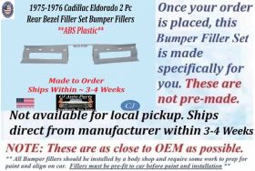 This is a brand new reproduction 2 piece rear bezel filler set MADE IN THE USA from high quality ABS Plastic material. ABS is heat resistant and easy to work with. The fillers come primed and ready to be painted, should be scuffed before painting.