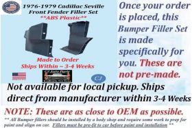 This is a brand new reproduction 2 piece front fender filler set MADE IN THE USA from high quality ABS Plastic material. ABS is heat resistant and easy to work with. The fillers come primed and ready to be painted, should be scuffed before painting.
