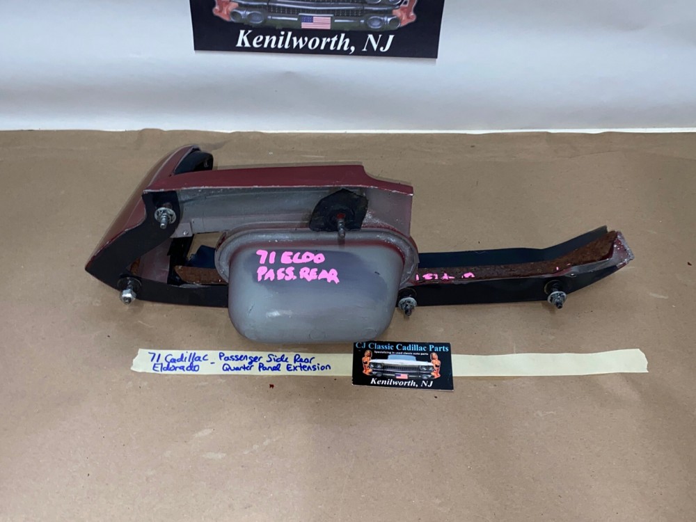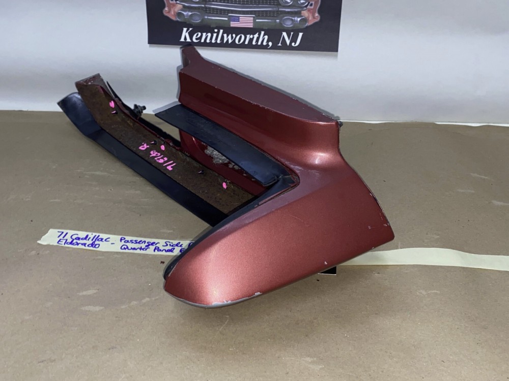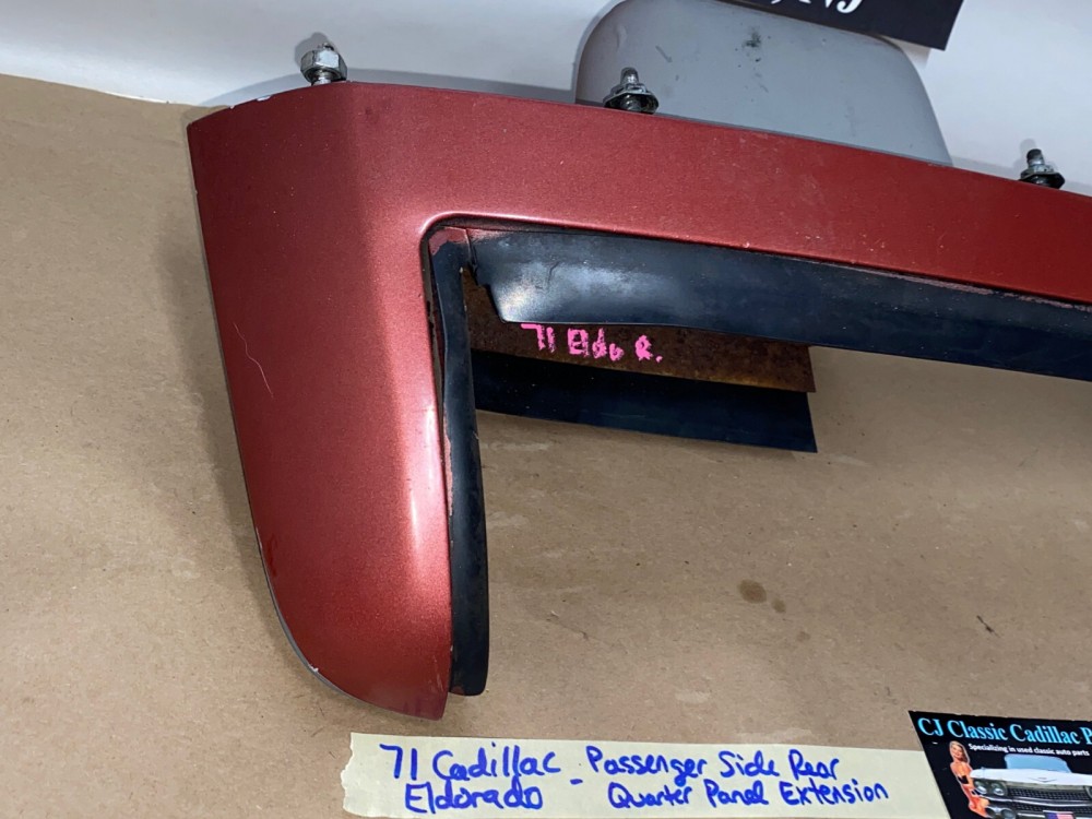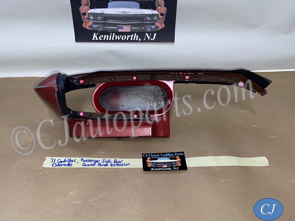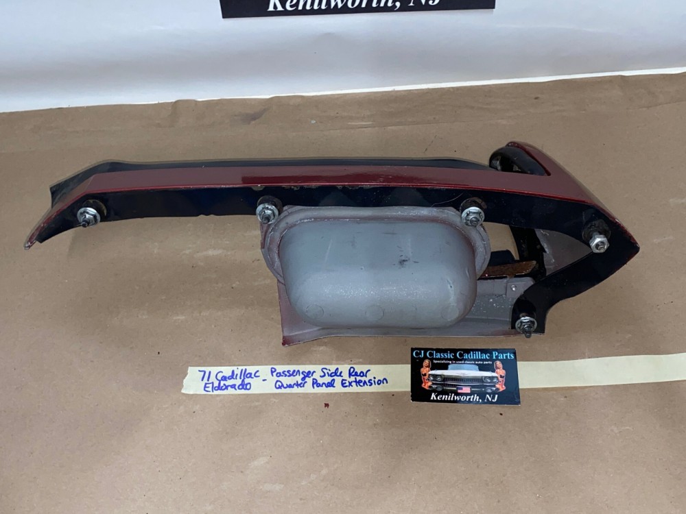 This OEM passenger side rear quarter panel extension tail light with filler is in very good condition. No major dings/dents. All mounting studs are intact. The rubber filler is in very good condition still nice and pliable, not dry rotted. Paint has average wear/rub marks, but can be repainted to match your car. Overall clean condition with minor wear for its age. Please look at all pictures as they are part of the description. This was removed from a 1971 Cadillac Eldorado, but may fit other vehicles listed in compatibility chart; fitment verified by Cadillac Master Parts List 12.940H; please do your own research as we do not offer refunds if it does not fit your vehicle.