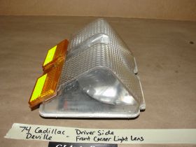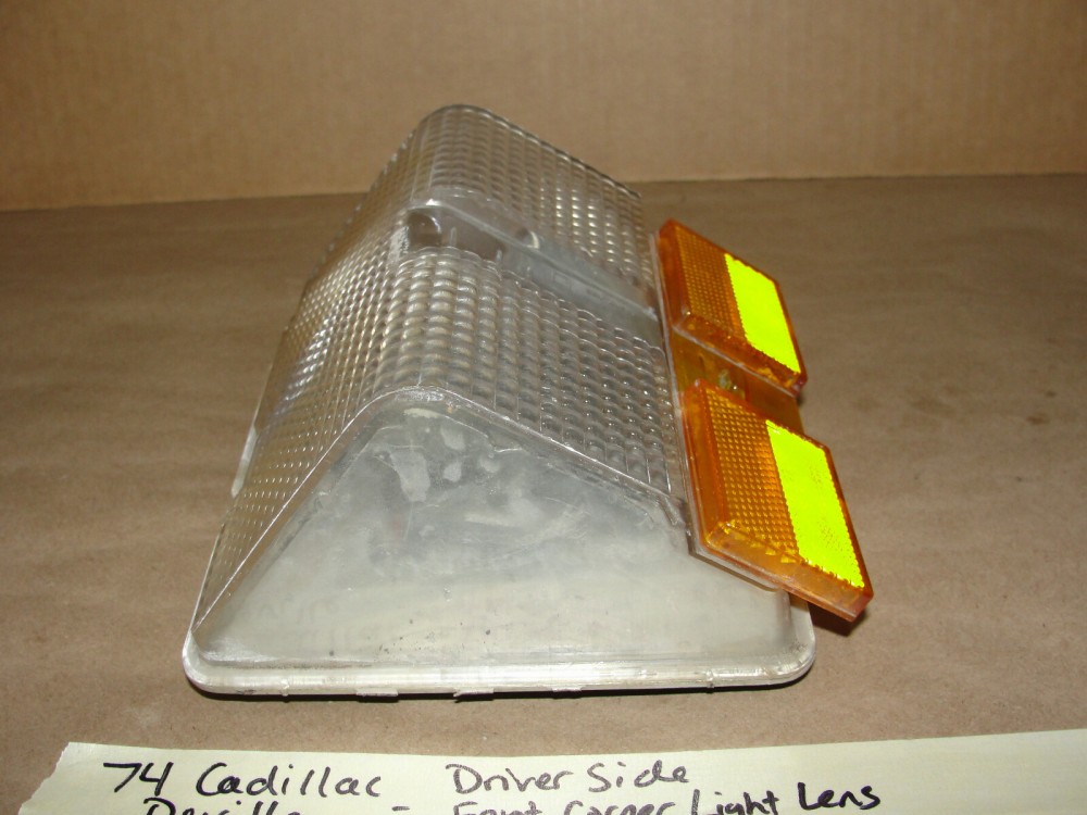 This driver side front corner light is in excellent condition. The lens is fully intact, no cracks and no crazing, has a couple of minor light scratches and wear typical of a used part its age, but overall excellent condition. Mounting tabs and holes are all intact, no cracks. Please look at all pics & compare to yours before purchasing as we do not take returns. This was removed from a 1974 Cadillac Deville but may fit vehicles listed in compatibility chart; fitment is verified by Cadillac Master Parts List 2.585, but please do your own research as we do not accept returns if it does not fit your vehicle.