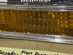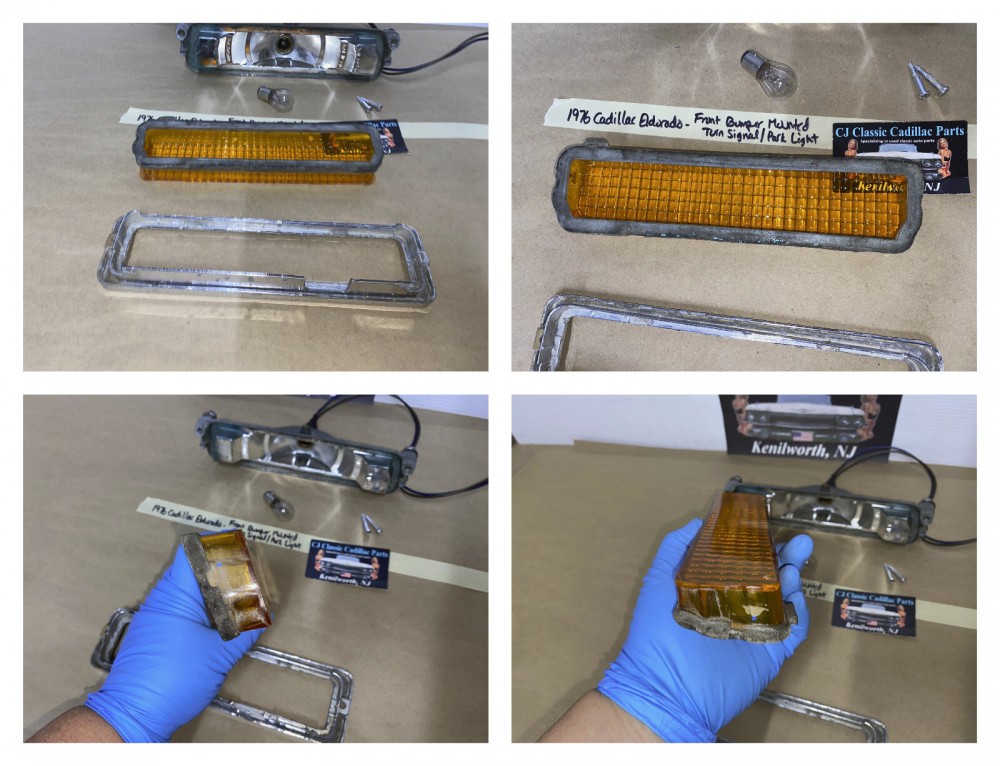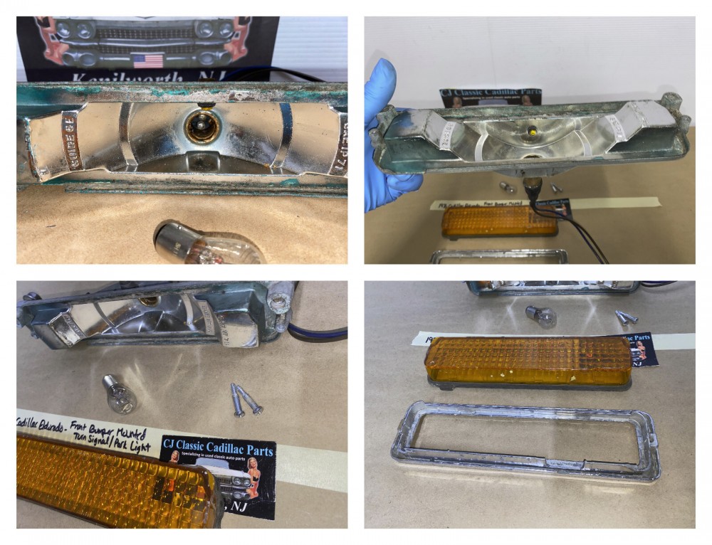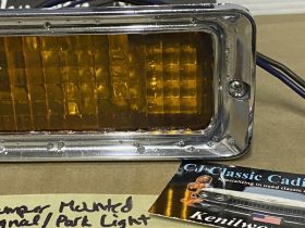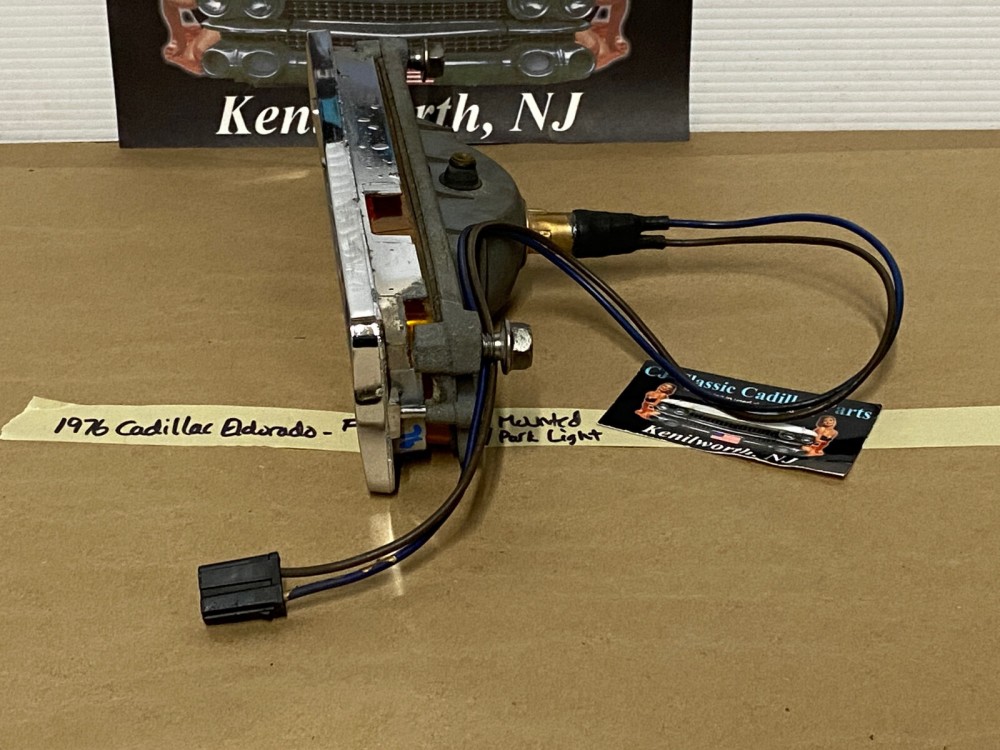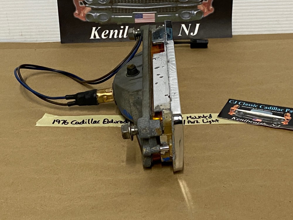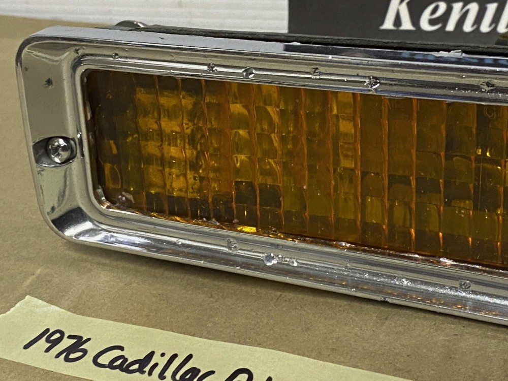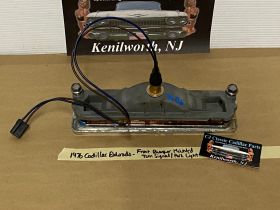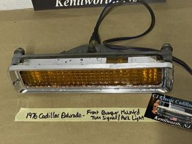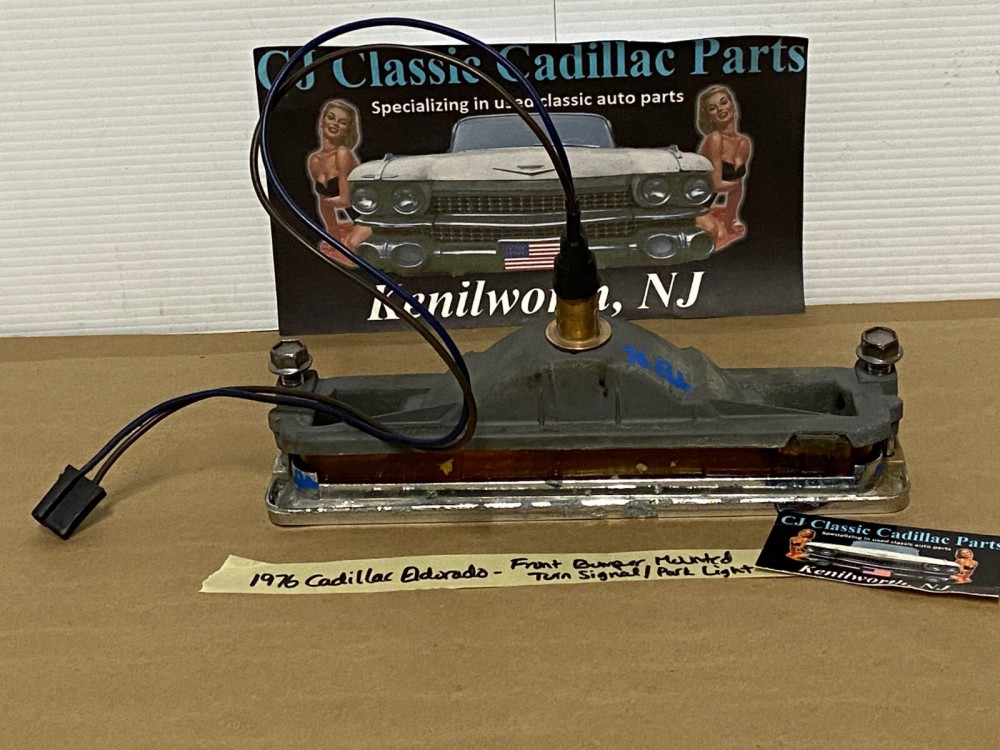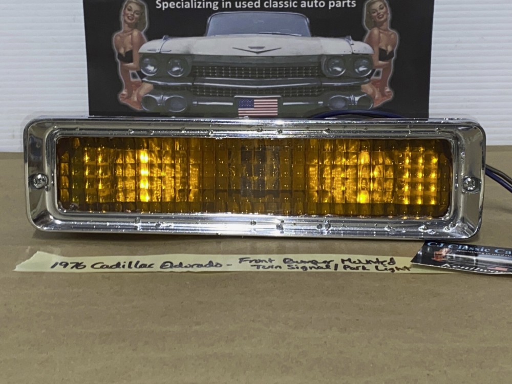 This OEM front bumper turn light is in good working condition (see video) and comes with a new bulb already installed. Ready to plug and play. All contacts have been cleaned and dielectric grease added to bulb socket. Lens is intact, no cracks and is still nice and vibrant orange. The chrome bezel has a nice reflective shine, but does have pitting typical for its age. Please look at all pictures, as they are part of the description. This was removed from a 1976 Cadillac Eldorado, but may fit other vehicles listed in compatibility chart; fitment verified by Hollander Interchange, but please do your own research as we do not offer refunds if it does not fit your vehicle. Please view the video (https://youtu.be/aFl39fCpYEE ) and look at all pics.
