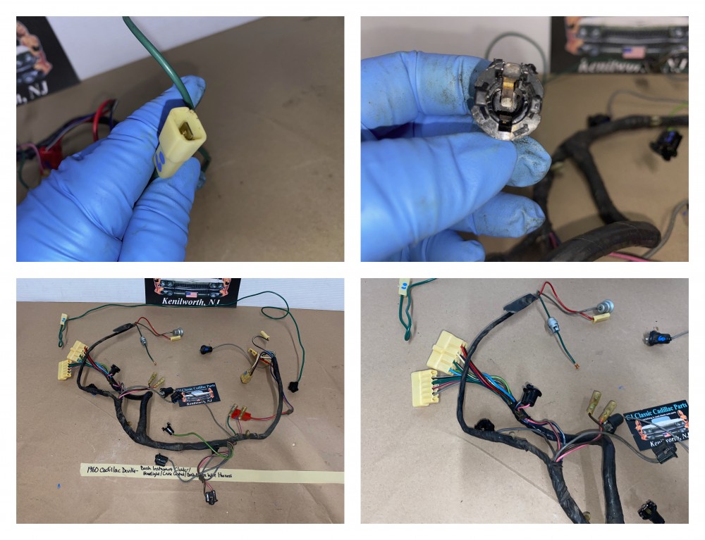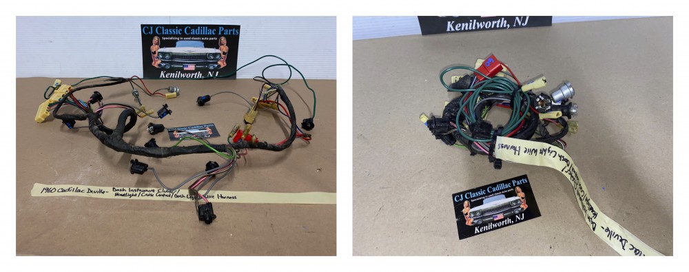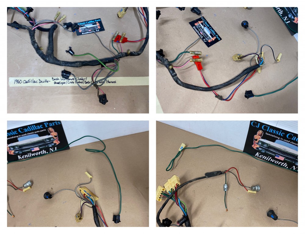 This OEM dash instrument cluster wire harness connectors is complete and intact, uncut for the dash instrument cluster, headlights, cruise control switch, dash lights. All connectors are intact, not broken, not heavily corroded and not melted. There is a little burn mark on the headlight switch connector, which happens to most of these, but it's not melted and fully functional. Please look at all pictures as they are part of the description. This was removed from a 1960 Cadillac, but may fit other vehicles listed in compatibility chart; please do your own research as we do not offer refunds if it does not fit your vehicle.
