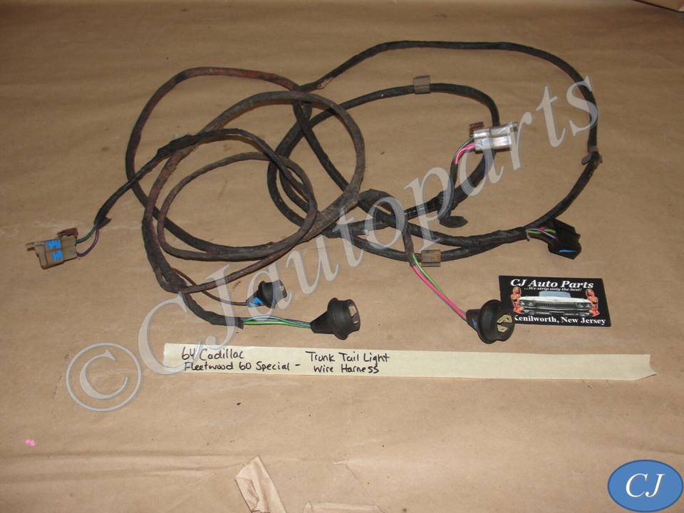 The OEM trunk tail light wire harness is in very good condition. Connectors are all very clean, not corroded. Please look at all pictures as they are part of the description. This was removed from a 1964 Cadillac Fleetwood 60 Special (look at all pics & compare to yours before purchasing as we do not take returns), but may fit vehicles listed in compatibility chart; please do your own research as we do not offer refunds if it does not fit your vehicle.