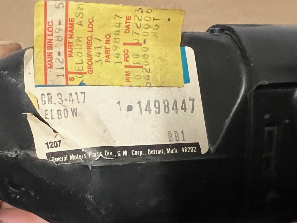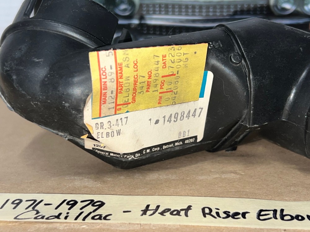 This heat riser elbow is New Olds Stock (NOS). Has a little dust/shelf wear fron sitting on the shelf, but has never been mounted. Still has the original GM label. Please do your own research as we do not accept returns/offer refunds if it does not fit your vehicle. There may be different options for the same car, so be sure to match this one up with yours before purchase.
