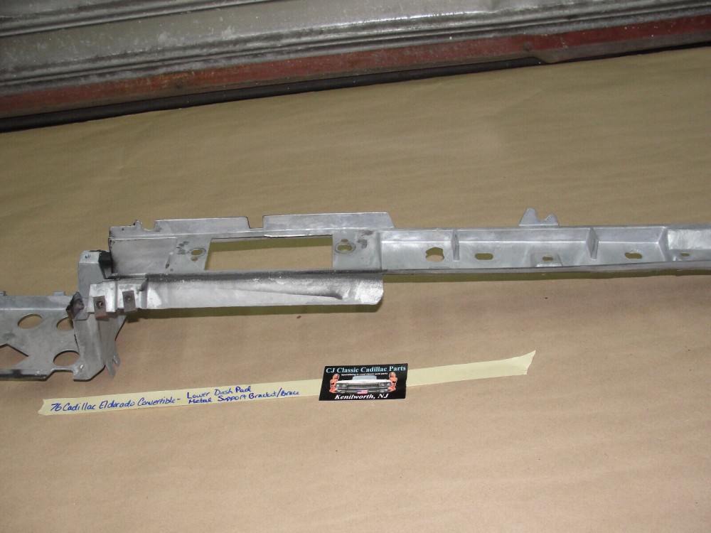 This OEM lower dash pad metal support backer is in excellent condition. This is the metal support that mounts behind the lower dash pad to support the weight of the cluster, radio, switches etc. Most times these are cut when people install an aftermarket radio and they will cut the metal opening to allow the aftermarket radio, which then makes it impossible to put the factory original radio back in without replacing this with an uncut support bracket. This is fully intact, has not been cut. Please view all pictures as they are a part of the description. This was removed from a 1976 Cadillac Eldorado Convertible, but may fit other vehicles listed in compatibility chart; fitment verified by Cadillac Master Parts List 10.230, please do your own research as we do not offer refunds if it does not fit your vehicle.
