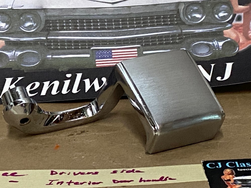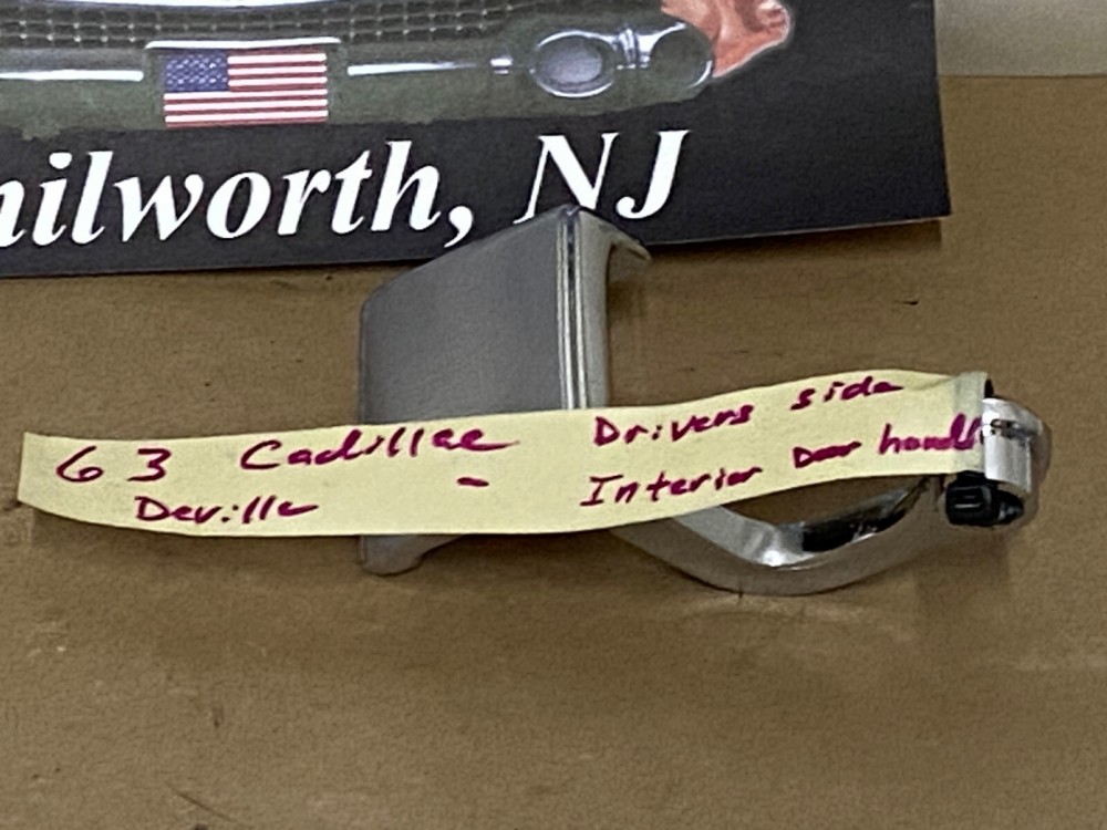 This OEM driver side interior door handle is in good condition. Can be used on left side front or rear (except 75 series - front only). Chrome has a nice reflective shine. The splines are in good average condition where it mounts to the door lever control mechanism. Has average light scratches and some pitting. Please look at all pics as they are part of the description. This was removed from a 1963 Cadillac, but may fit other vehicles listed in compatibility chart; fitment verified by Cadillac Master Parts List 31.2110/10.512 please do your own research as we do not offer refunds if it does not fit your vehicle.