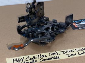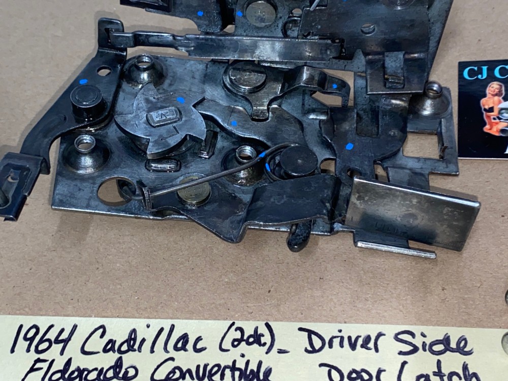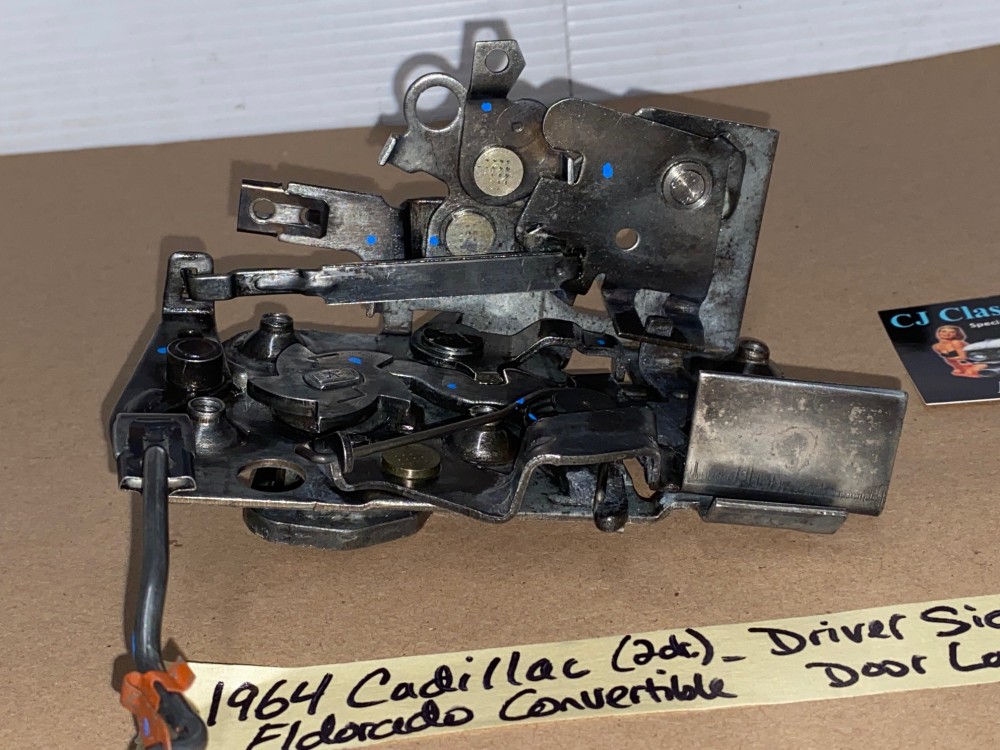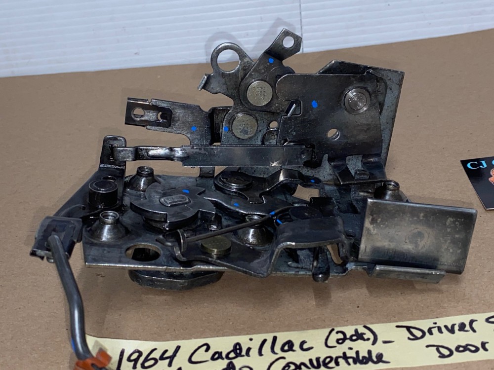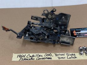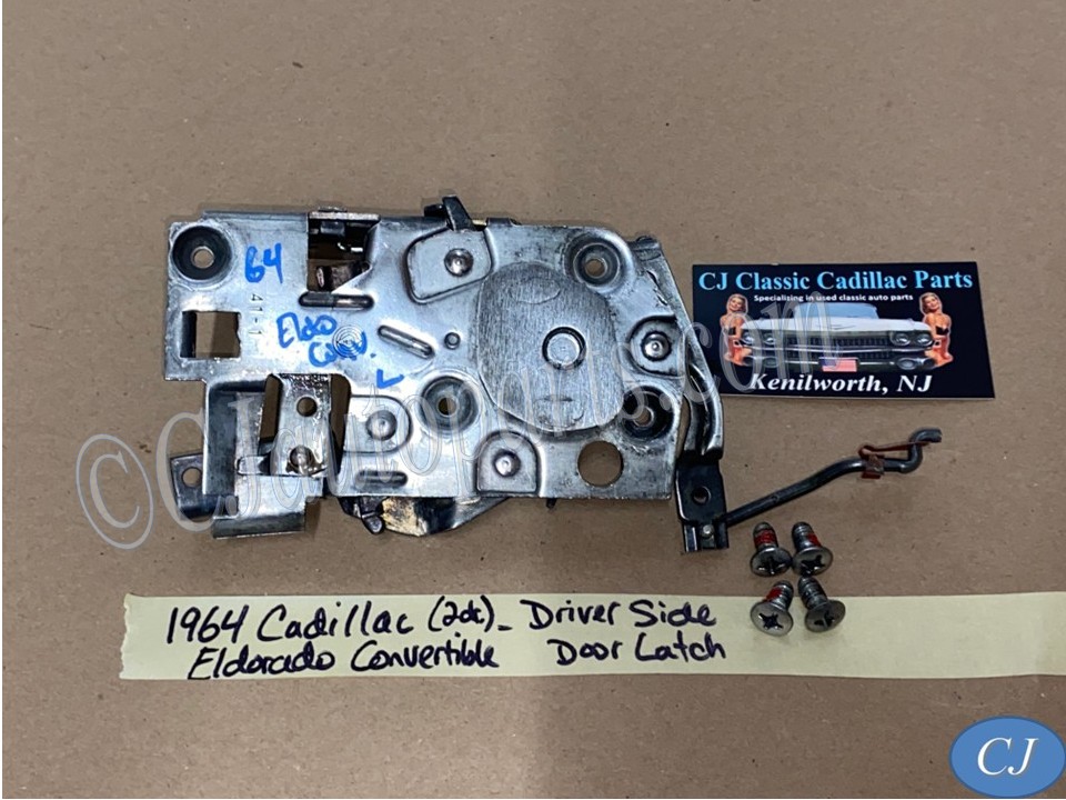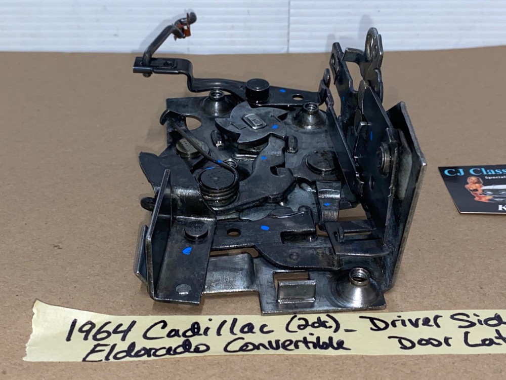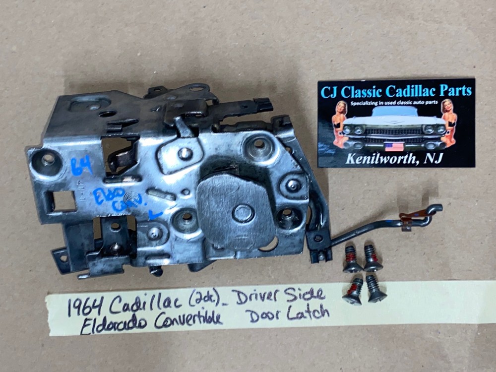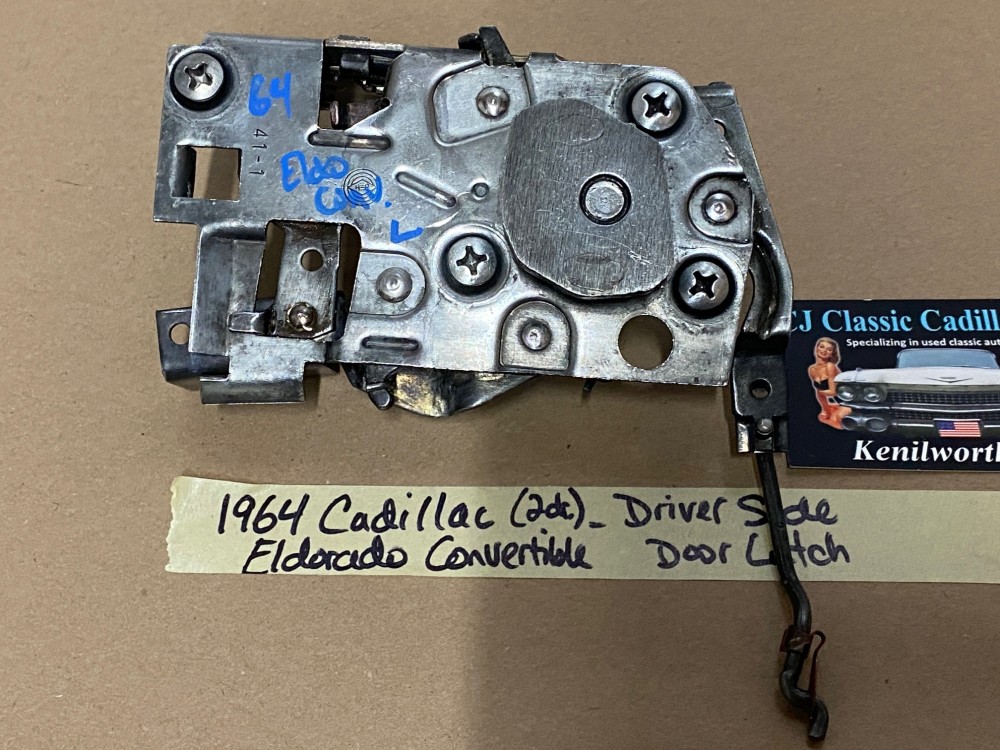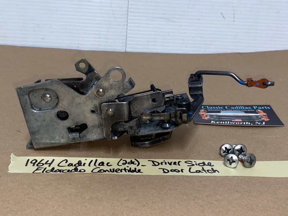 This OEM driver side front door lock latch is in excellent condition. Latch was cleaned and lubricated, overall very clean for its age. All levers move smoothly as they should and latch is fully functional. FITS 2 DOOR COUPE/CONVERTIBLE MODELS ONLY. This was removed from a 1964 Cadillac Eldorado 2 Door Convertible (look at all pics & compare to yours before purchasing as we do not take returns), but may fit vehicles listed in compatibility chart; Fitment is based on Cadillac Master Parts List 31.1600, please do your own research as we do not offer refunds if it does not fit your vehicle.