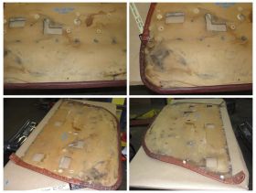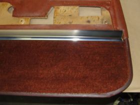 This OEM rear driver side door panel is in excellent to show quality condition. Vinyl is in beyond excellent condition, no tears, very clean. Chrome trim has a nice shine, very minor wear. The cardboard backer shows some previous water intrusion, but is still solid, just has a little water log on the bottom. Fits 4 door vehicles only. Please view all pictures as they are a part of the description. This was removed from a 1966 Cadillac Fleetwood Brougham, but may fit other vehicles listed in compatibility chart; please do your own research as we do not offer refunds if it does not fit your vehicle.