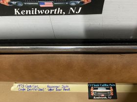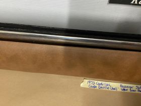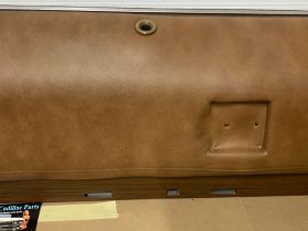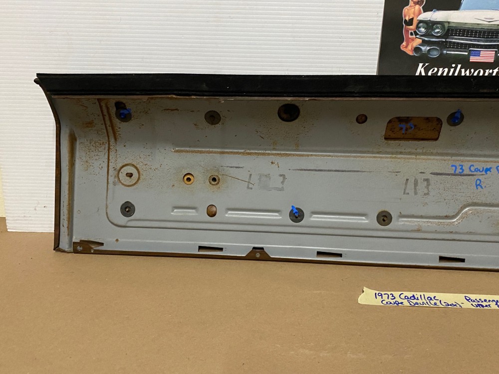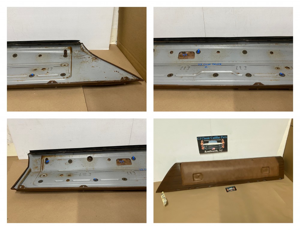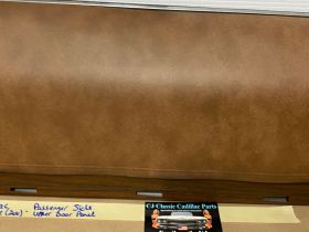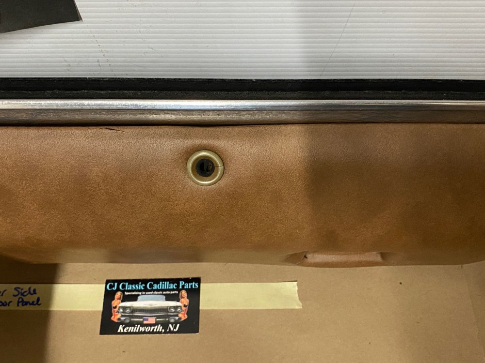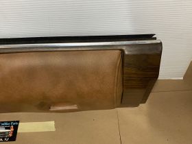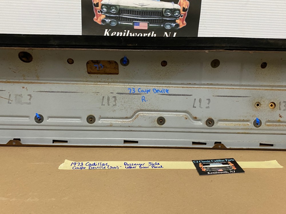 This OEM passenger side front upper door panel is in very good condition. The vinyl is still nice and pliable, not dry rotted or brittle. There are two small cracks, one is at the top edge and the other is near where the pull strap mounts, overall very minor. Woodgrain is still nice and vibrant, not all sun damaged like most get. The felt where the window rides is still in nice shape. Has a some light surface rust on the backside, but obviously not seen and does not affect the door panel itself. Fits 2 door only. Please look at all pictures as they are part of the description. This was removed from a 1973 Cadillac Coupe Deville, but may fit vehicles listed in compatibility chart; please do your own research as we do not offer refunds if it does not fit your vehicle.