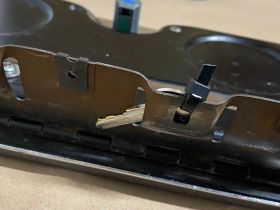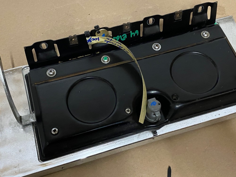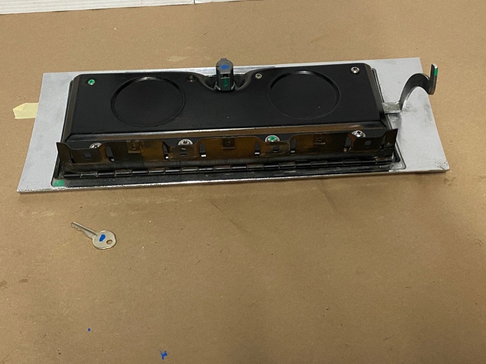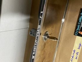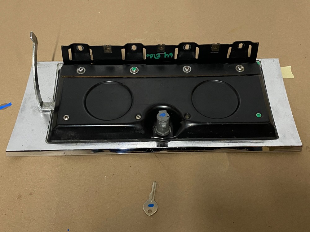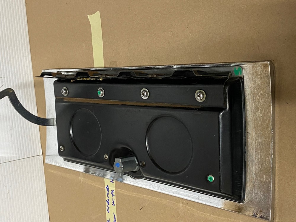 This OEM glove box door is in good condition. Chrome has a nice reflective shine, has some light pitting and average light scratches. Woodgrain is intact, but does have some fading/wear typical for its age. This comes with the lock and key, fully functional to lock and unlock glove box. Hinge operates as it should to open and close glove box door. Please look at all pictures, as they are part of the description. This was removed from a 1964 Cadillac Eldorado, but may fit other vehicles listed in compatibility chart; fitment is based on Cadillac Master Parts List (10.261) so please do your own research as we do not offer refunds if it does not fit your vehicle.