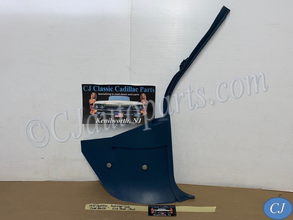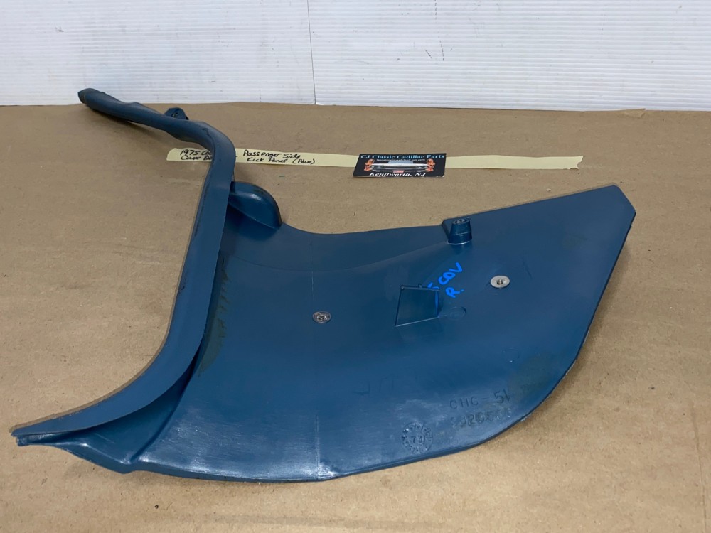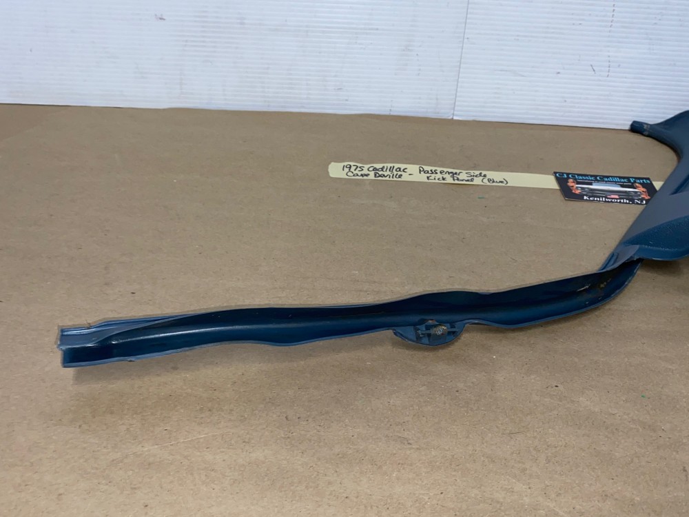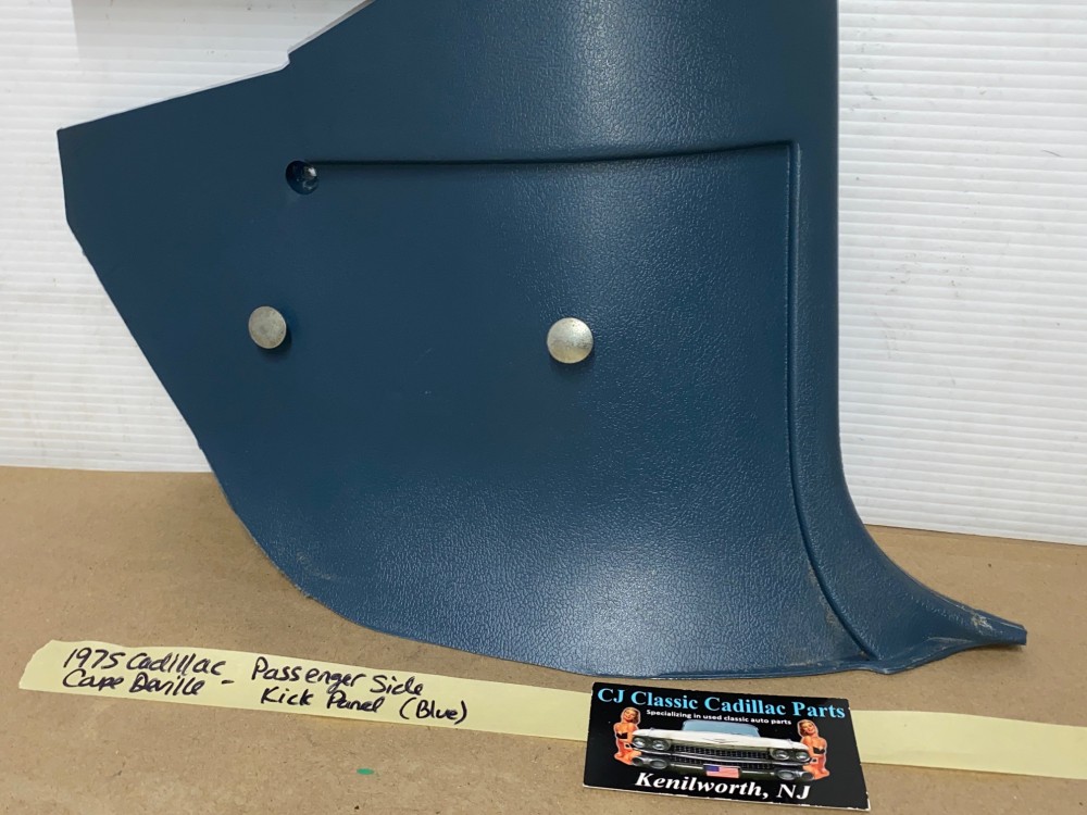 This OEM passenger side kick panel is in very good condition. Mounting holes are intact, no cracks, overall fairly clean. Overall average light wear typical of used part its age. Please look at all pictures & compare to yours, as the pictures are part of the description.This was removed from a 1975 Cadillac Coupe Deville, but may fit other vehicles listed in compatibility chart; please do your own research as we do not offer refunds if it does not fit your vehicle.