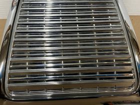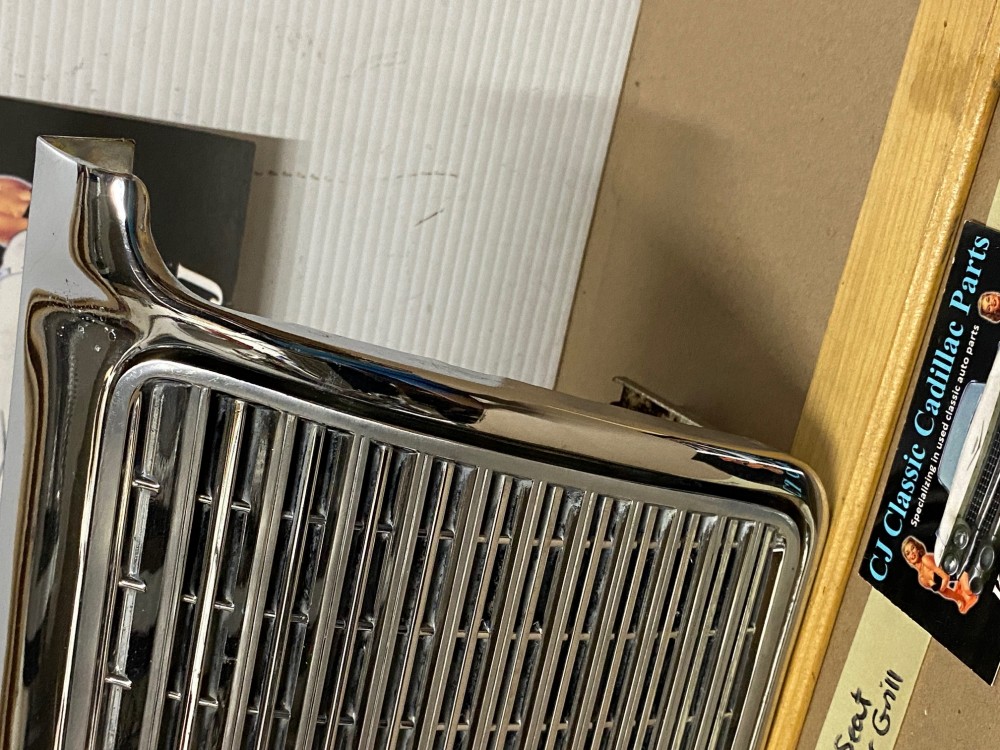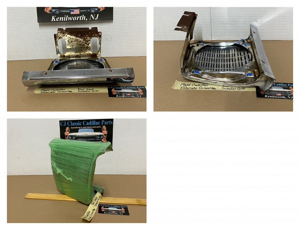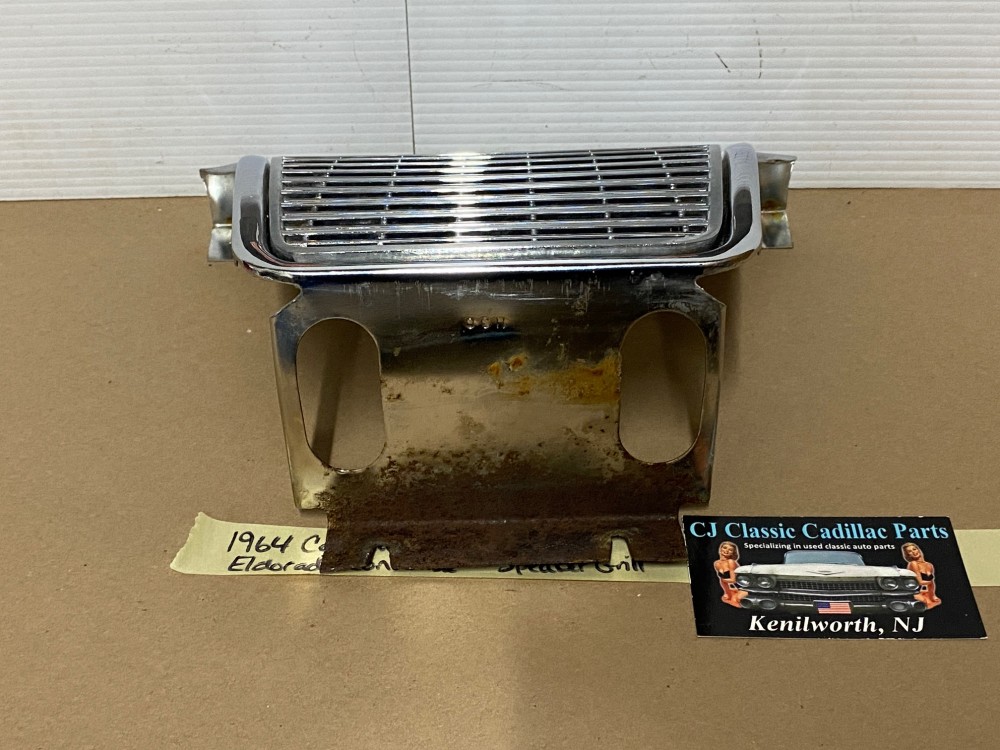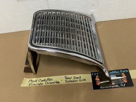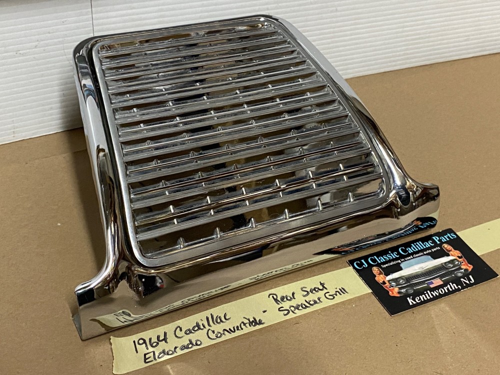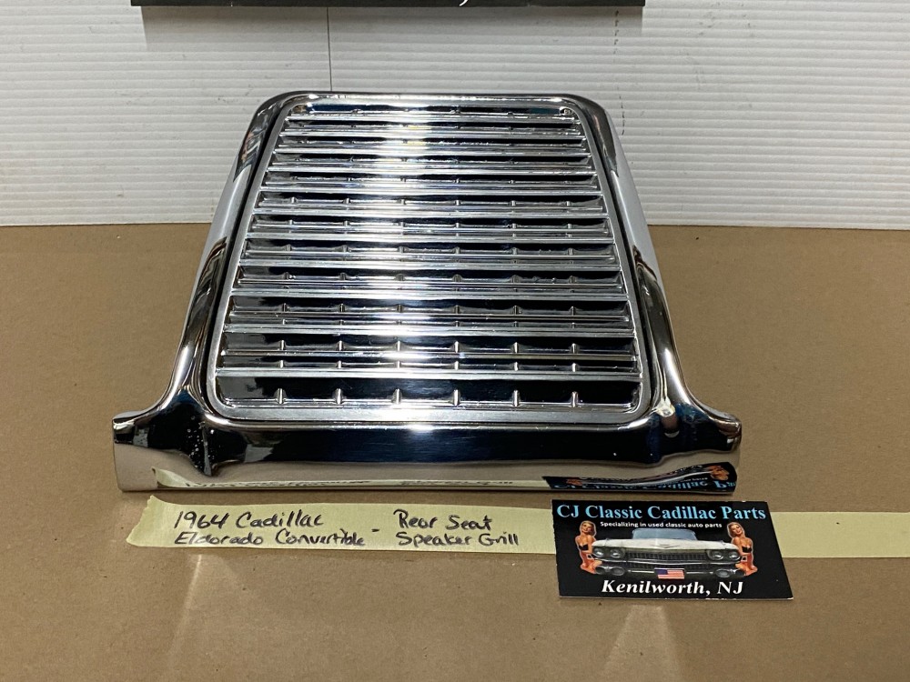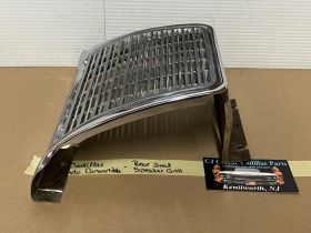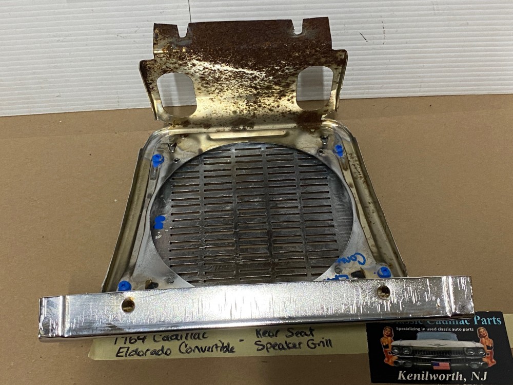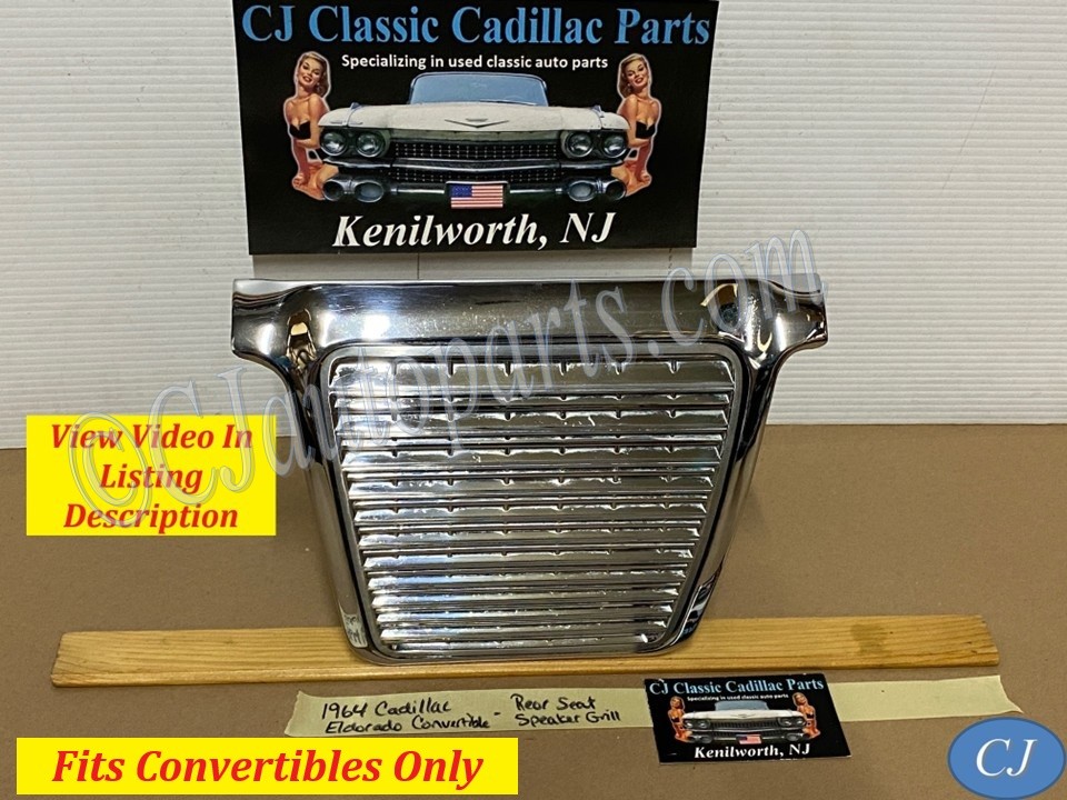 This OEM rear seat speaker grill trim is in very good to excellent condition. Chrome has a very nice high reflective shine. Very minimal pitting, which is a rare find for these original speaker grills. There is a small cluster of pits in the upper driver side corner, but overall it is very minor. Bracket mounting holes are intact. Bracket has inimal surface rust, no rot, again a very rare find. Please view the video (https://youtu.be/_ItFrjlsRTc ) and look at all pictures as they are part of the description. This was removed from a 1964 Cadillac Eldorado Convertible, but may fit other convertible vehicles listed in compatibility chart; fitment verified by Cadillac Master Parts List 55.0306 please do your own research as we do not offer refunds if it does not fit your vehicle.