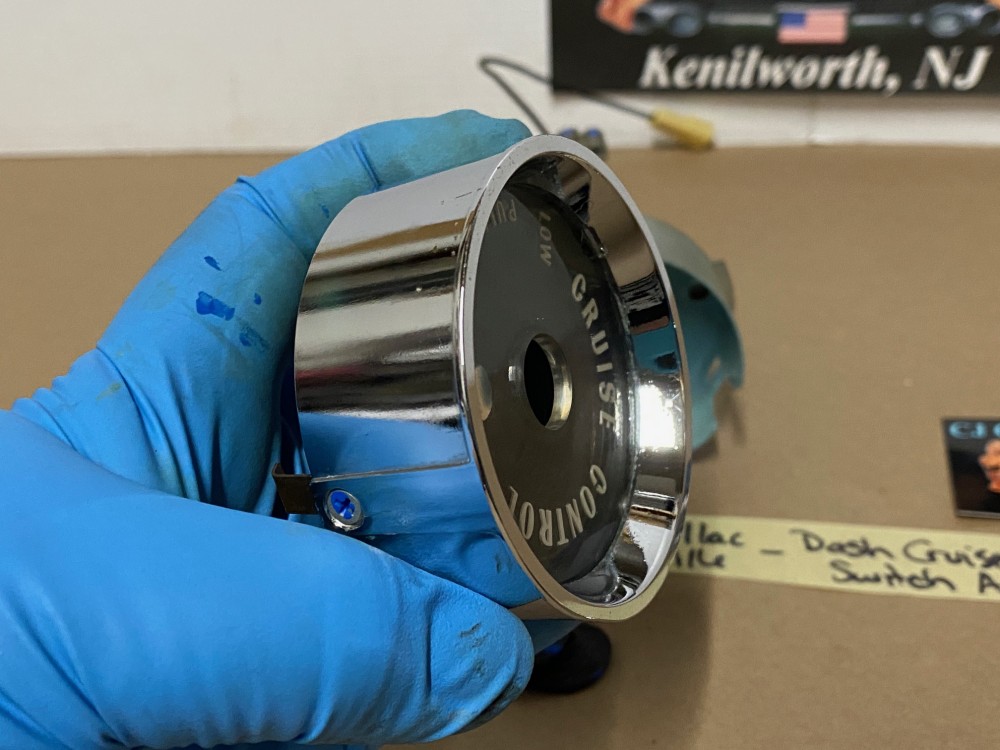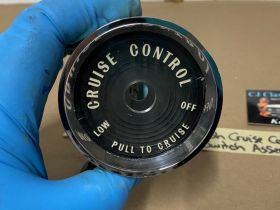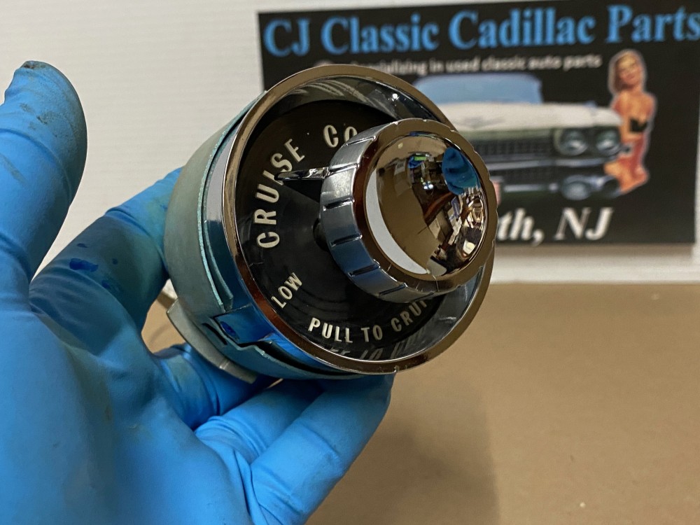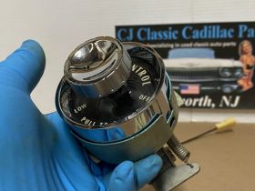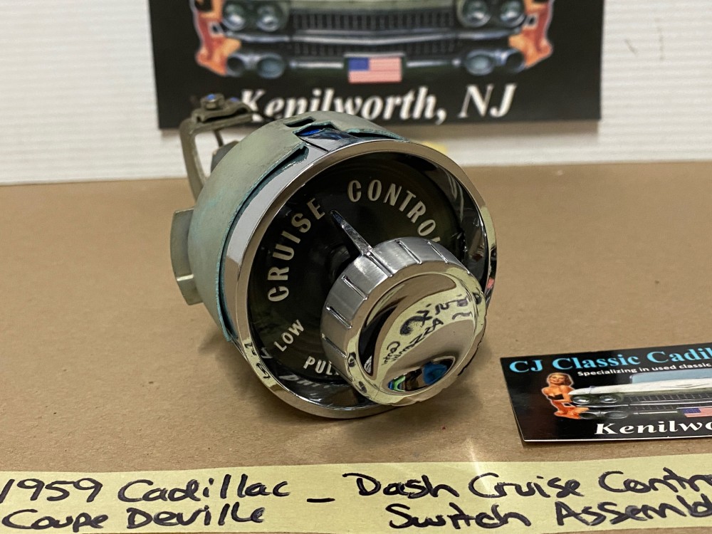 This OEM dash cruise control switch assembly is in excellent to near show quality condition. Chrome on the bezel has a nice reflective shine, no major pitting. Cruise Switch is extremely clean, everything moves as it should, although this has not been tested. Comes complete as an assembly, only need to reuse your mounting screws to mount to the dash. White lettering is still nice and vibrant, as is the black plate behind the plastic lens.Plastic lens is in good condition, has a couple of light scratched, but fully intact. Please view the video (https://youtu.be/Hq2WDHUoN5A ) and look at all pictures as they are a part of the description. This was removed from a 1959 Cadillac, but may fit other vehicles listed in compatibility chart; fitment verified by Cadillac Master Parts List 12.1495, please do your own research as we do not offer refunds if it does not fit your vehicle.