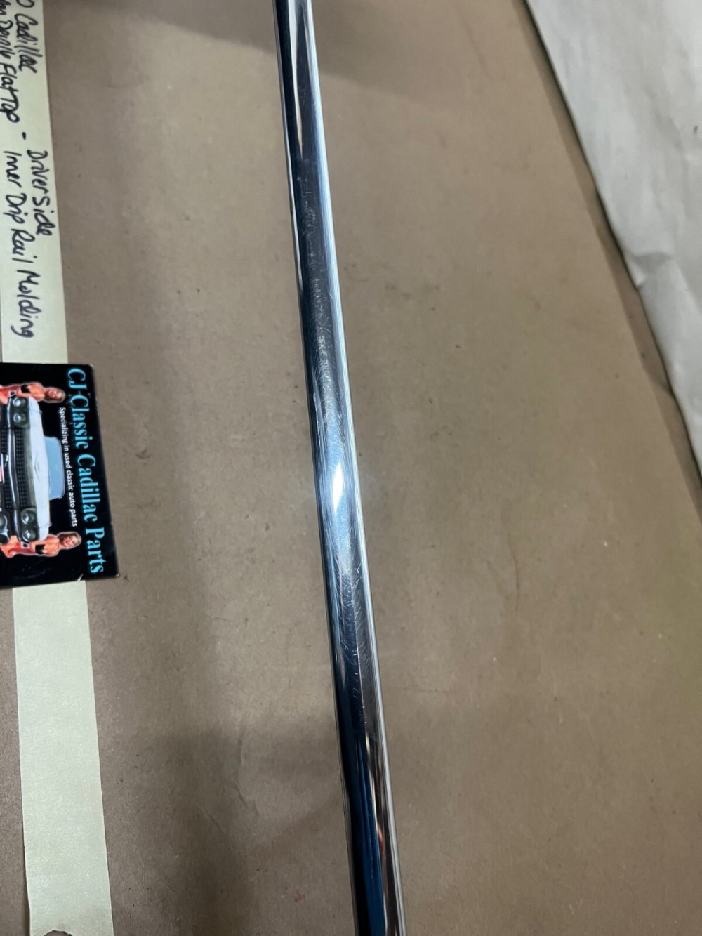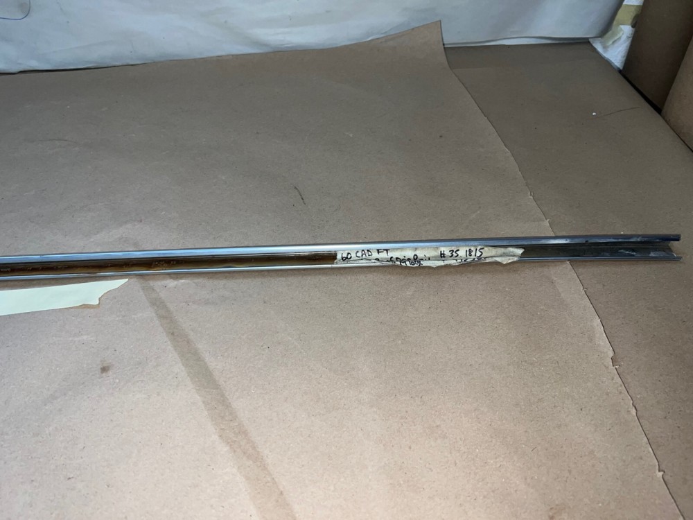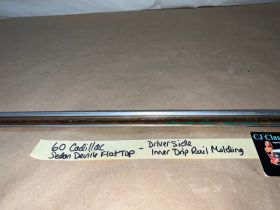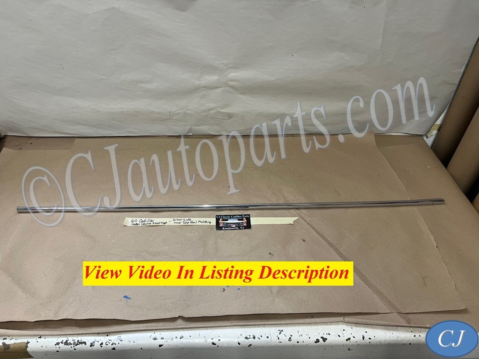 This OEM driver side roof drip rail molding is in good condition. Chrome has a decent shine, has average light scratches/wear typical of a used part its age. Overall nice and straight, which is hard to find as these moldings are difficult to remove without twisting. Please view the video (https://youtu.be/NBN5ja2ky5A ) and look at all pictures & compare to yours, as the pictures are part of the description.  This was removed from a 1960 Cadillac Deville, but may fit other vehicles listed in compatibility chart; fitment is verified by Cadillac Master Parts List 35.1815, but please do your own research as we do not offer refunds if it does not fit your vehicle.