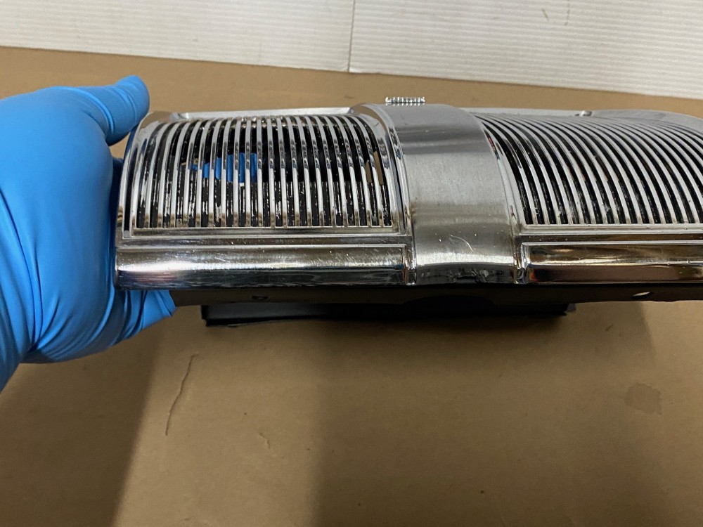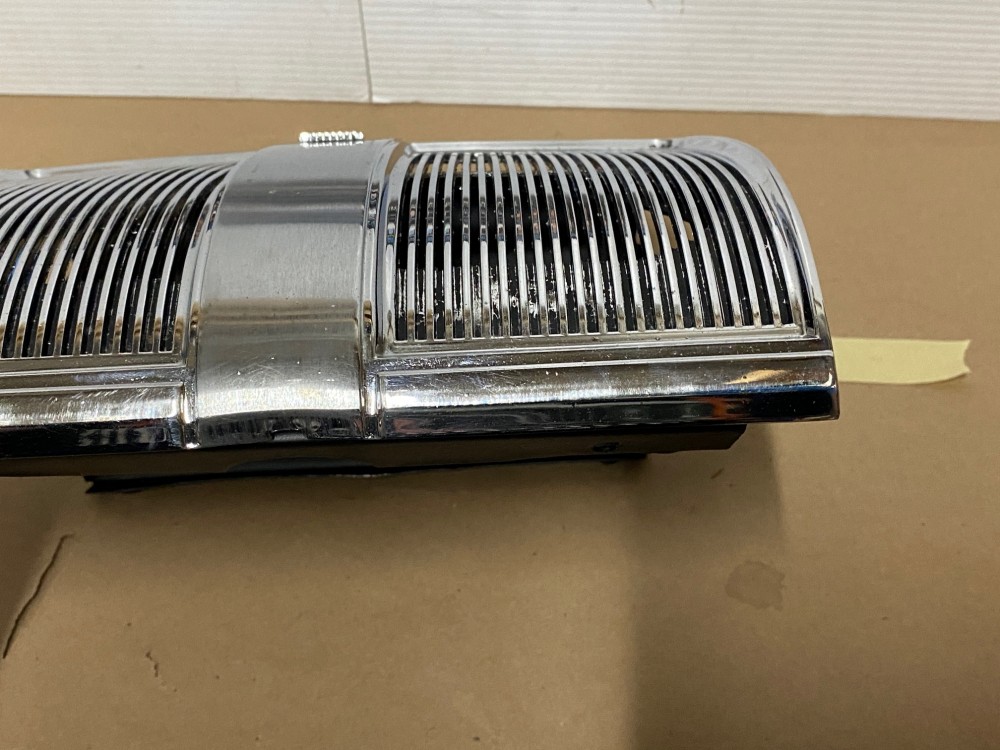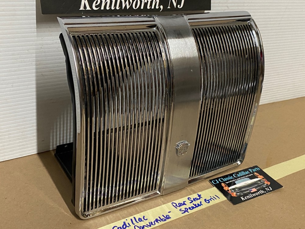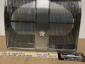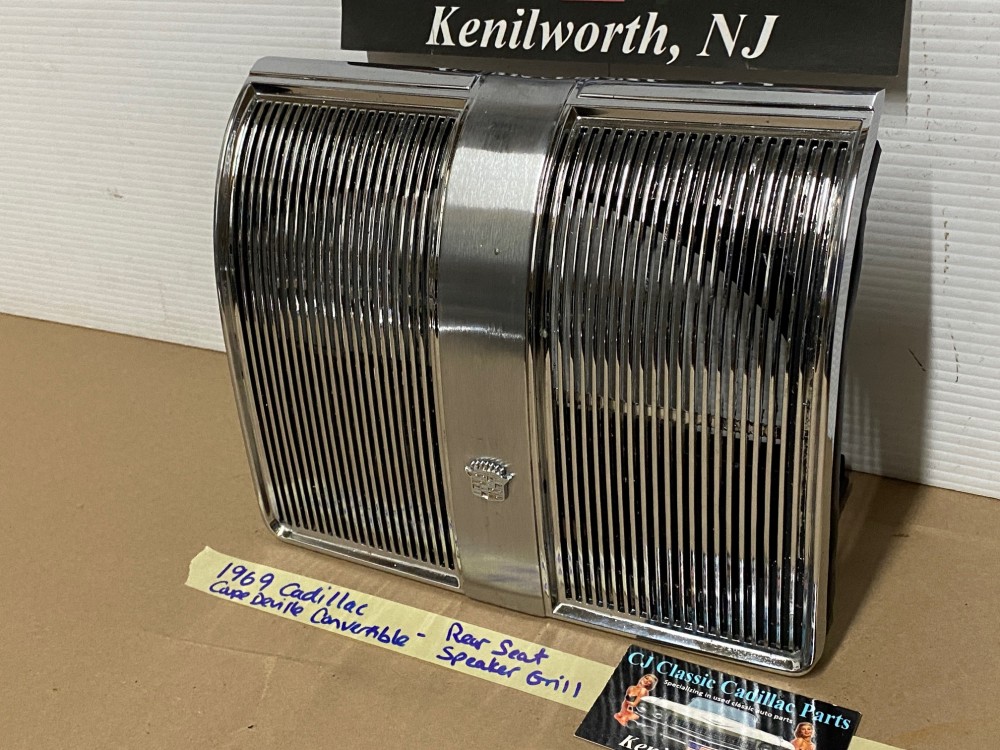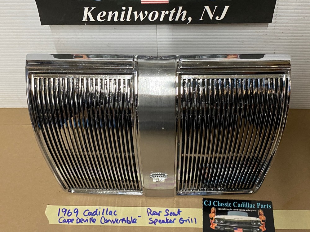 This OEM rear speaker grill is in verygood condition. **FITS CONVERTIBLES ONLY** Chrome has a nice reflective shine. Has minor blemishes and chrome has some pitting. Please look at all pictures as they are part of the description. This was removed from a 1969 Cadillac Deville CONVERTIBLE, but may fit other vehicles listed in compatibility chart; fitment verified by Cadillac Master Parts List 9.665; please do your own research as we do not offer refunds if it does not fit your vehicle.