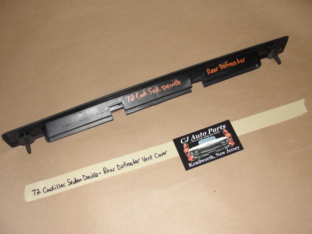 This factory original rear defroster grill is in good condition. All grill fins are intact and all mounting tabs are intact. Please look at all pictures as they are part of the description. This was removed from a 1972 Cadillac Sedan Deville, but may fit other vehicles in compatibility chart; please do your own research as we do not offer refunds if it does not fit your vehicle.