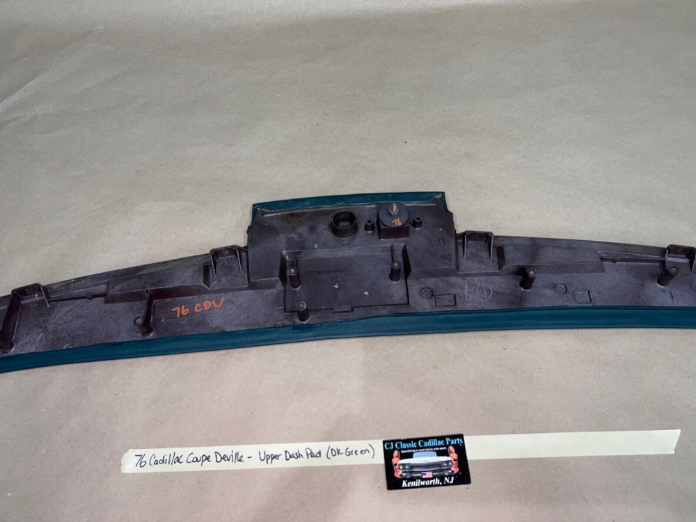 This OEM Dashpad is in show quality condition. This was removed from a show car that was in a front end collision, car was teal with dark green and white interior. Dash is fully intact, no cracks, no sun fade, color is nice and vibrant, and plastic/vinyl is not brittle. All mounting tabs/holes are intact. The gentleman that owned this car took very good care of it and it shows. A piece like this rarely comes up in this good of condition, so get it while it lasts. Please look at all pictures as they are part of the description. This was removed from a 1976 Cadillac Coupe Deville, but may fit other vehicles listed in compatibility chart; please do your own research as we do not offer refunds if it does not fit your vehicle.